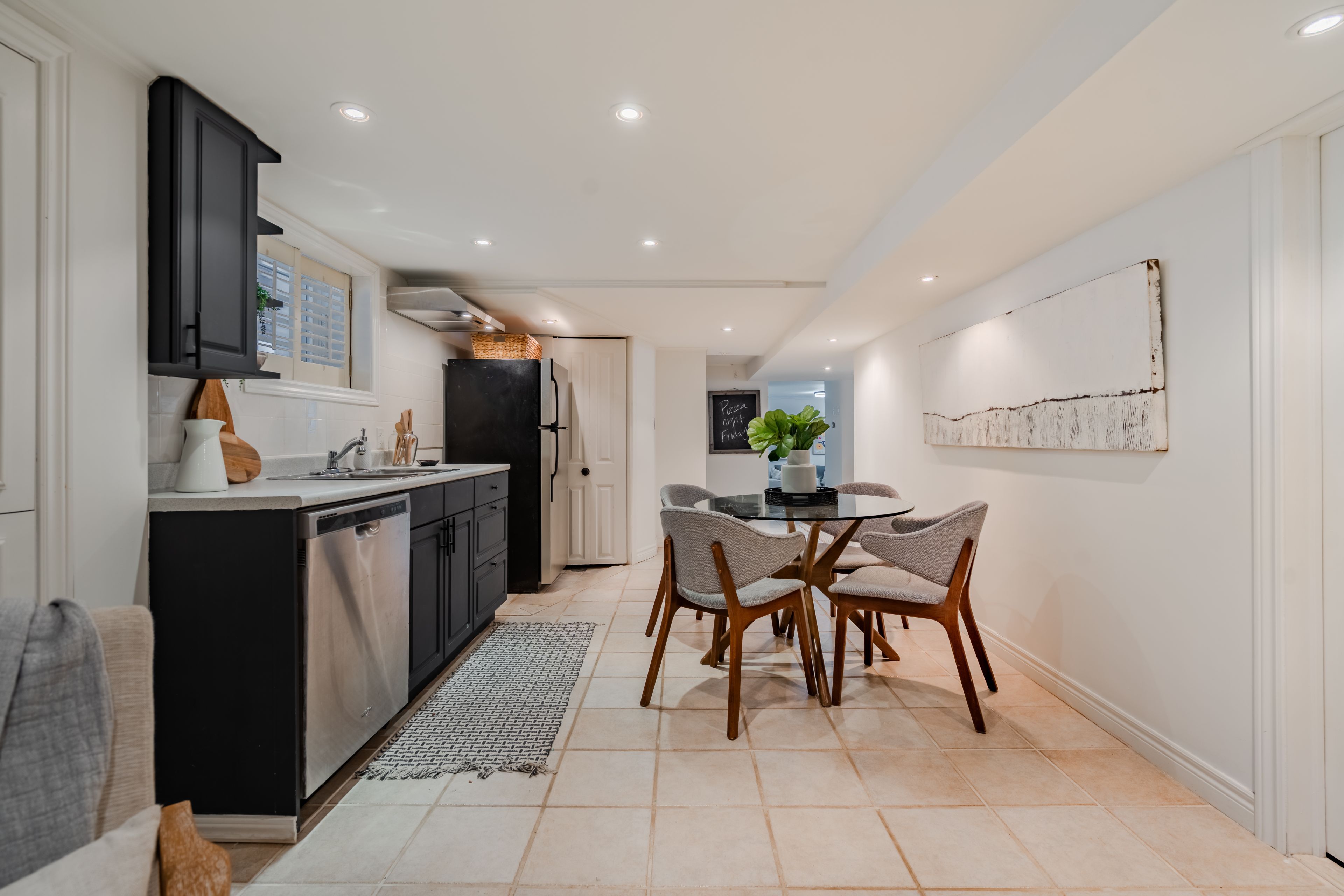 A rare offering in the ultra desirable courcelette ps and toronto hunt area - this 40' wide property delivers the feel of a muskoka retreat in the heart of the city. With renovations designed by peter higgins architects, the home blends warmth, craftsmanship, and thoughtful functionality throughout. The main level features radiant, in-floor heating and a custom kitchen with stainless steel appliances, including a six-burner jennair gas range and convection oven. Two custom stone fireplaces anchor the living spaces, creating a sense of permanence and calm. Upstairs, bedrooms are filled with natural light, and the second-floor balcony enjoys afternoon and evening sun with seasonal lake views. The backyard is exceptionally private for and was previously approved for a pool. Ideal for entertaining, outdoor dining, and movie nights under the stars. The finished basement is well suited for a rental or an in-law suite and offers tremendous versatility. A standout feature - the modern two car garage with custom epoxy flooring, electrical upgrades, and workshop set up is perfect for car collectors or hobbyists or for a potential garden suite. Private parking accommodates multiple vehicles. Mature trees, custom stone balcony posts, and a wide lot make this home truly exceptional. Steps to queen street east, close to the lake, transit, parks, and schools-this is refined living with space to breathe.