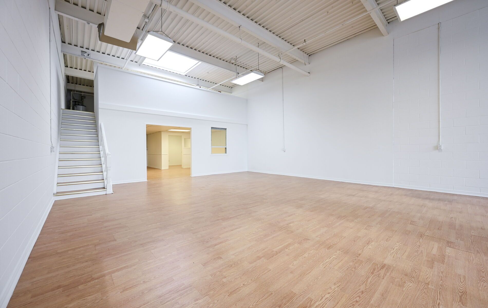 • Includes a 600sf mezzanine and large skylights for natural light.