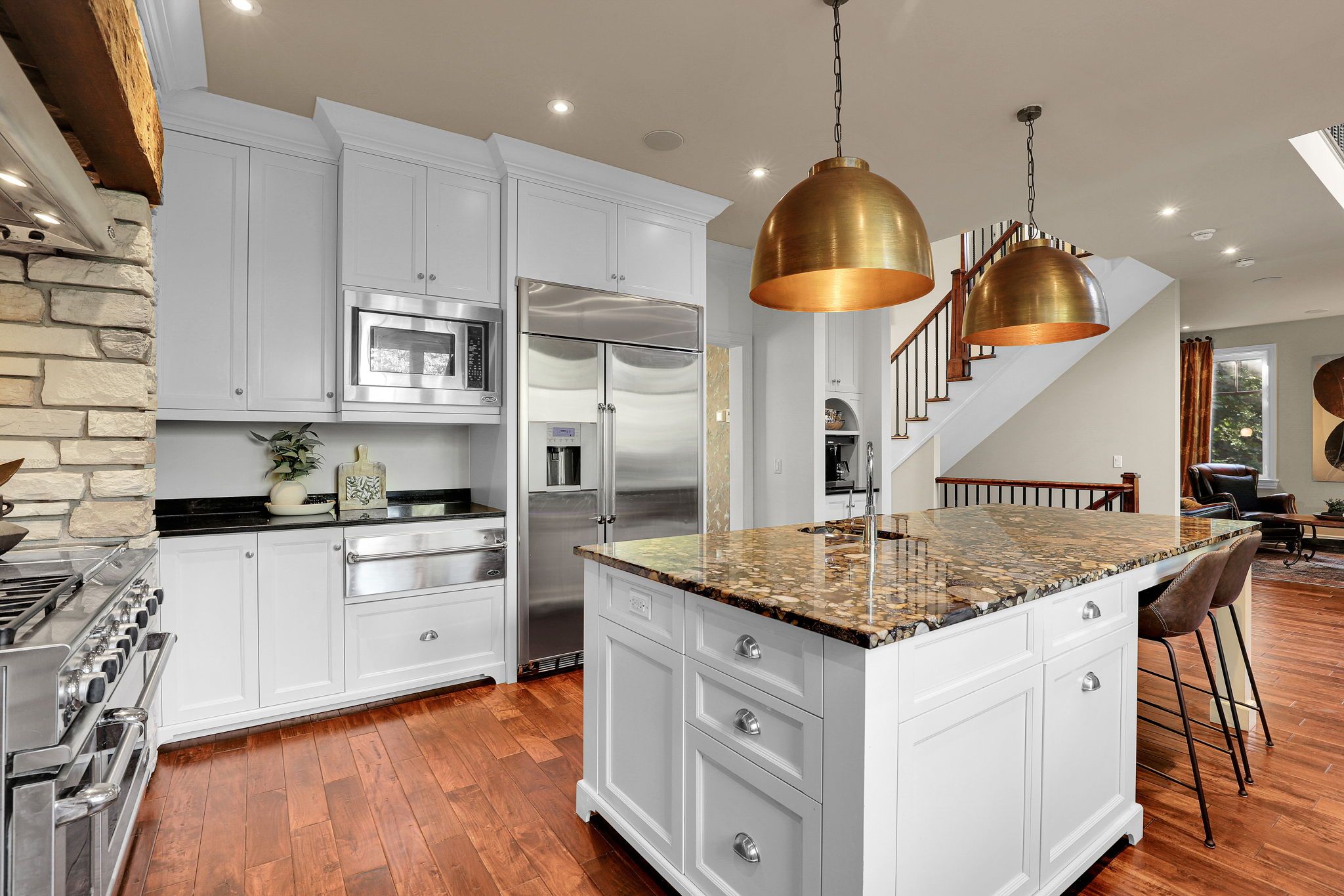 Magnificent double lot tucked on a quiet cul-de-sac with no rear neighbours and just steps to dow's lake and the canal, this custom 5-bed, 4-bath residence blends international craftsmanship w/ refined modern living. From hand-carved doors imported from honduras to rare black african walnut finishes and counters sourced from a brazilian riverbed, every detail reflects uncompromising quality. A dramatic two-storey marble-clad foyer opens to den/home office and formal dining room w/ intricate ceiling detail. The main floor is fully finished in hardwood, anchored by a white chef's kitchen w/ a massive brazilian stone island, professional gas range, steam tray, beverage fridge, and built-in fridge. The adjoining sun-filled family room features coffered ceilings, custom built-ins, a gas fireplace, radiant in-floor heating, and garden doors to multiple outdoor living areas. Seamless indoor-outdoor living includes a covered lounge with gas fireplace, dining patio, and lower terrace designed to accommodate a pool. A serene zen garden w/ hot tub, flagstone, irrigation, and wi-fi landscape lighting completes the private retreat. The main floor also offers a striking climate-controlled wine room w/ a dual-sided fireplace, plus a mudroom w/ dog's shower, cubbies, and two-piece bath. Upstairs are four spacious bedrooms, each w/ double closets and coffered ceilings, a laundry room, and 4-piece bath. The primary suite impresses w/ an oversized bedroom, spa-style ensuite with double shower & vanities, custom walk-in closet, and bonus flex room ideal for a nursery, yoga studio, or lounge. The radiant-heated lower level offers a large recreation room, glass-enclosed gym, 5th bedroom, & full bath. An oversized two-car garage, stone and hardie board exterior, and meticulous maintenance ensure peace of mind. With plans in place for a pool, this double-lot estate is both turnkey and future-ready... A rare offering of luxury, privacy, and lifestyle in an exclusive setting.