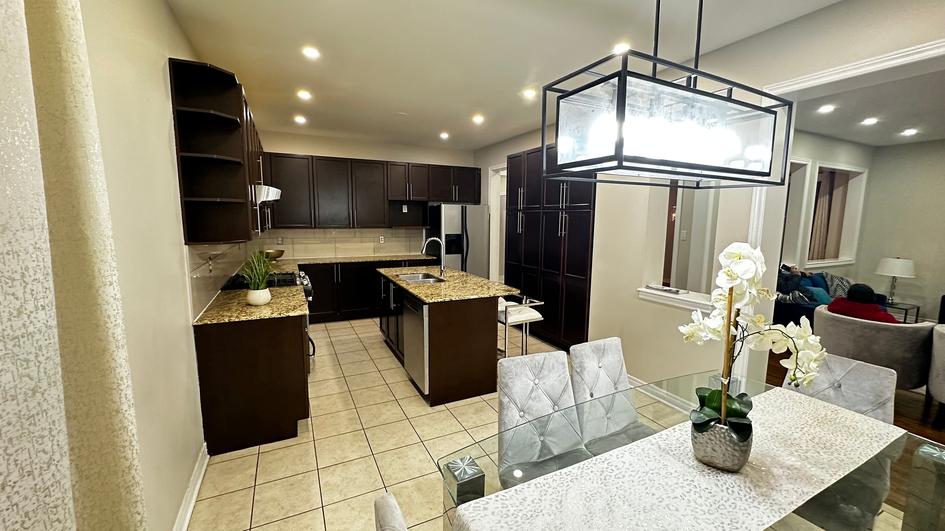 Step into elegance with an open-to-above foyer that creates a grand first impression. This spacious detached home offers approximately 3,020 sq ft above grade. The main floor showcases formal living, dining, and family rooms with 9-ft ceilings, 8-ft doors, an upgraded oak staircase, and a cozy fireplace. The stunning, oversized kitchen features granite countertops, stainless steel appliances, and a walkout from the breakfast area to a built-in deck-perfect for entertaining. Upstairs, enjoy a versatile office/den space and 4 spacious bedrooms, all with access to washrooms (3 full baths on the second level). The primary suite impresses with a coffered ceiling, large walk-in closet, and luxurious 5-piece ensuite. Additional highlights include a 2-car garage + 2-car driveway and abundant natural light. Walking distance to schools, grocery stores, amenities & transit. Lease terms: tenant pays 70% utilities . No pets. No smoking.