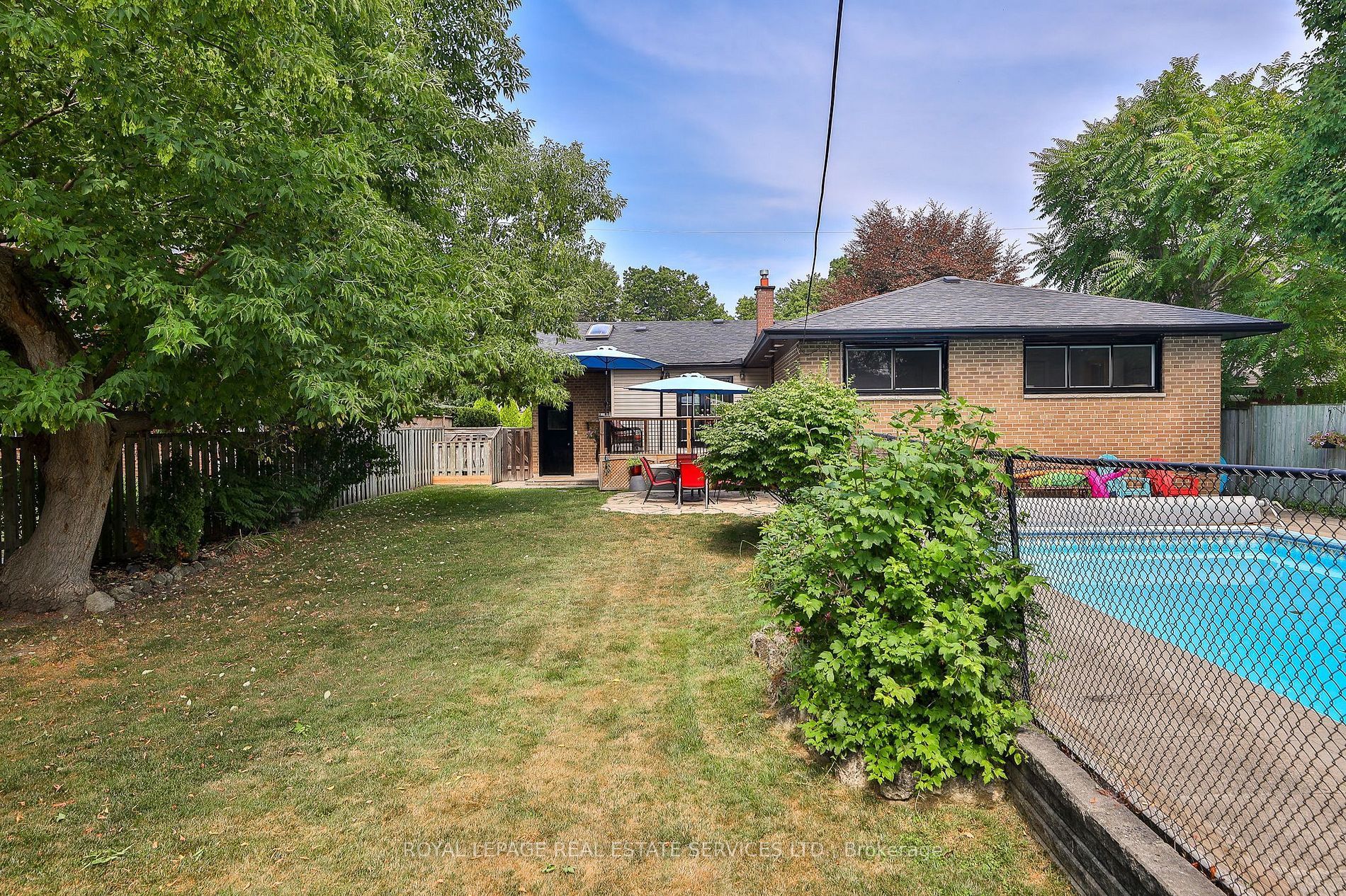 • Large yard with a pool, mature trees, and fenced area for kids.
