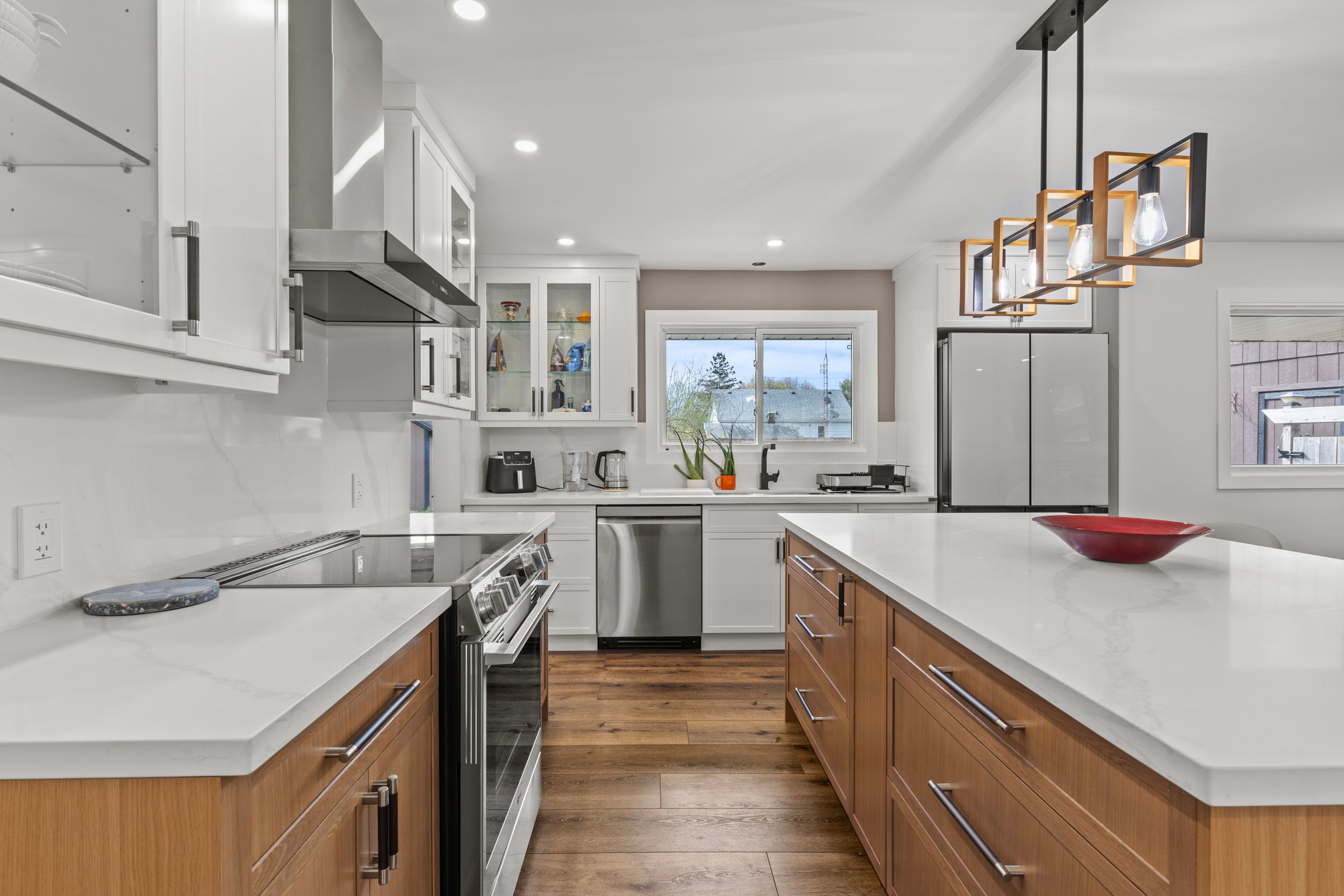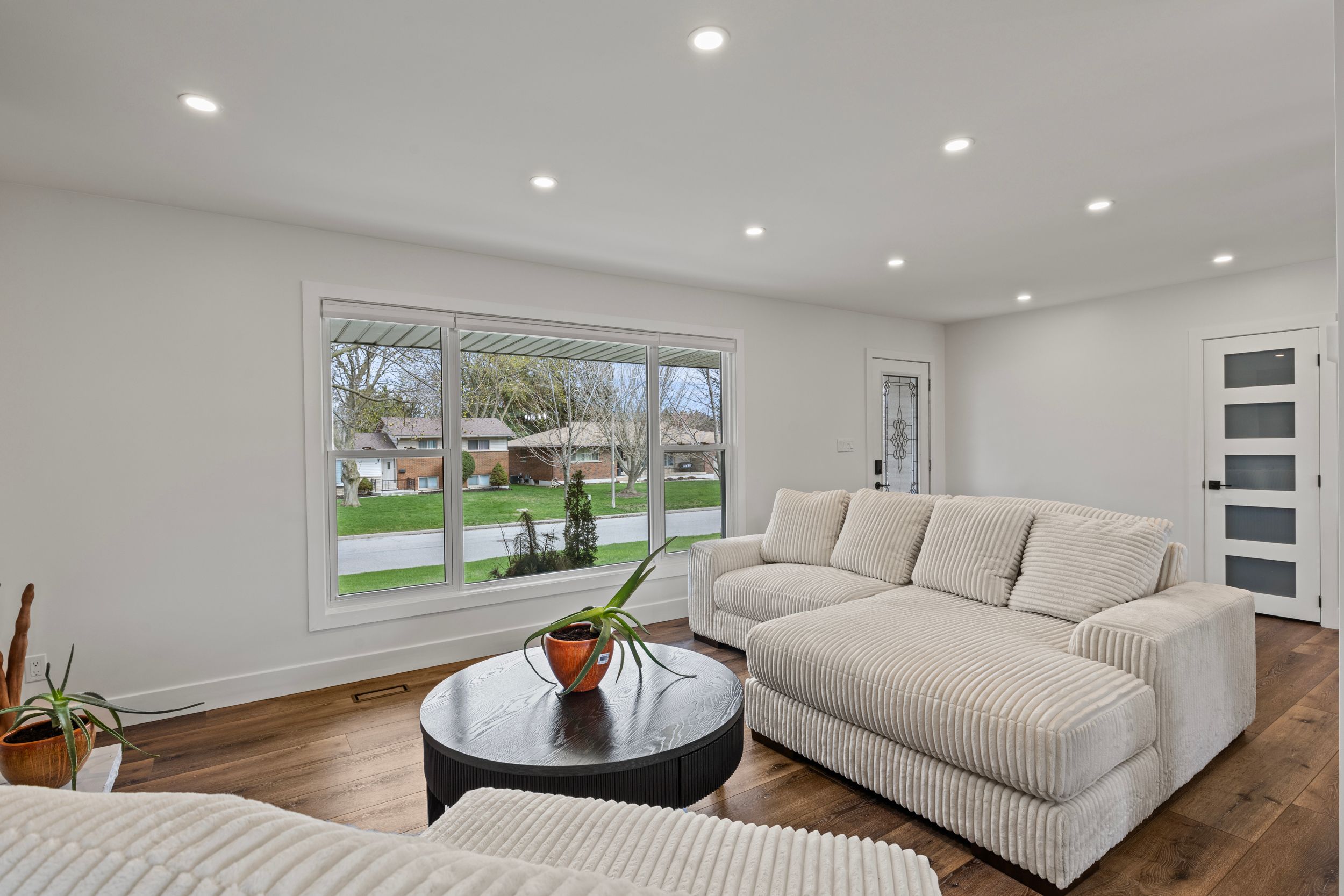 Welcome to brantford's most desirable neighbourhood with this 3+1 bedroom, 2 bathroom bungalow. Completely turnkey ready with the sleek & stylish open concept kitchen/dining/living area completed with stainless steel appliances (included), quartz counters, fresh vinyl flooring, and new pot lighting throughout. The main floor welcomes three large bedrooms, and a fully updated bathroom with a brand new jacuzzi bathtub and heated flooring. The lower level provides the perfect space for an entertainment room additionally, there is another full bathroom, the laundry room, and bedroom. Make your way outside onto the spacious and private rear deck, overlooking the large backyard. The private paved driveway can hold numerous vehicles and there is plenty of street parking out front. 45 driftwood drive is an immaculate turn-key property, with the best neighbours, and the perfect place to call home.