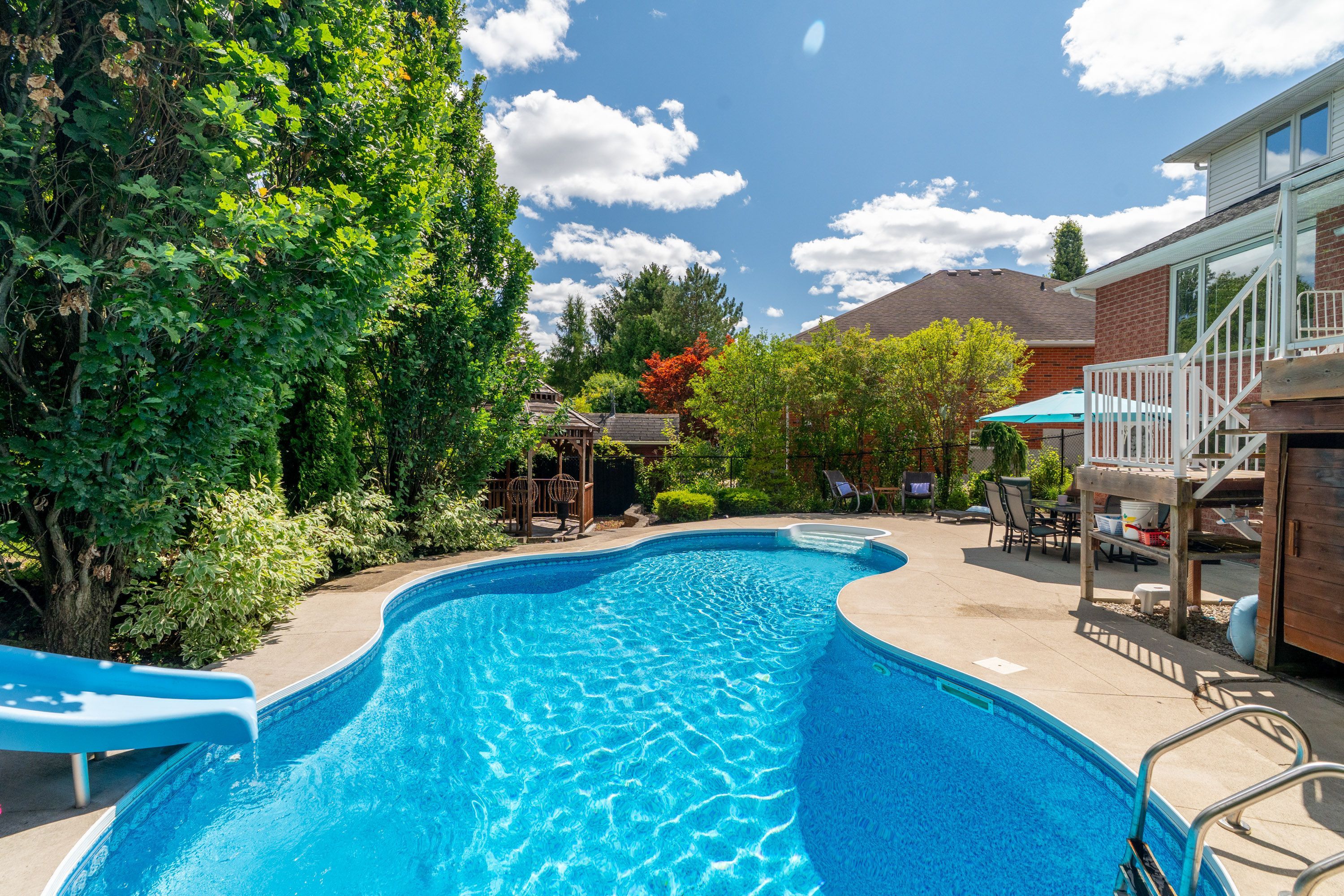 • Beautifully treed lot with a kidney-shaped in-ground pool for summer fun.