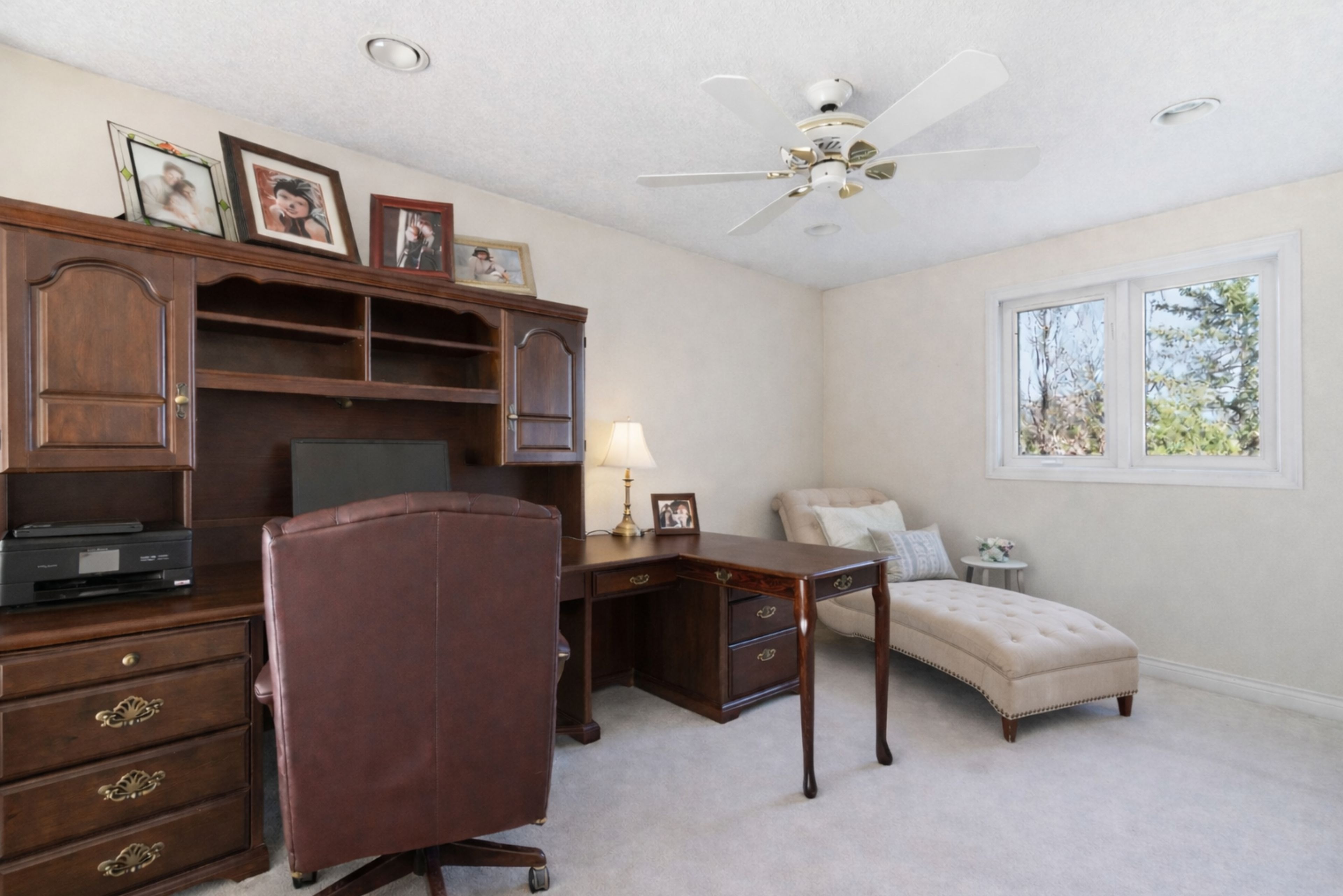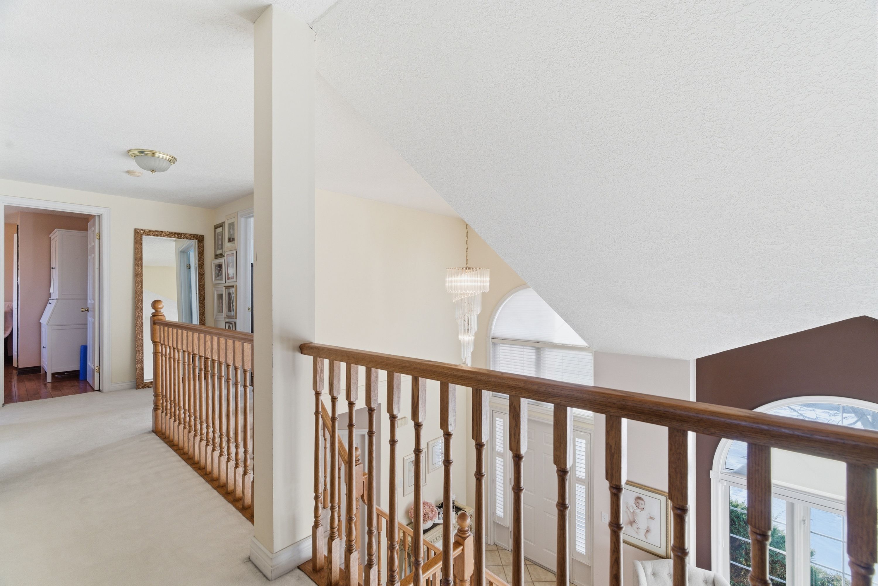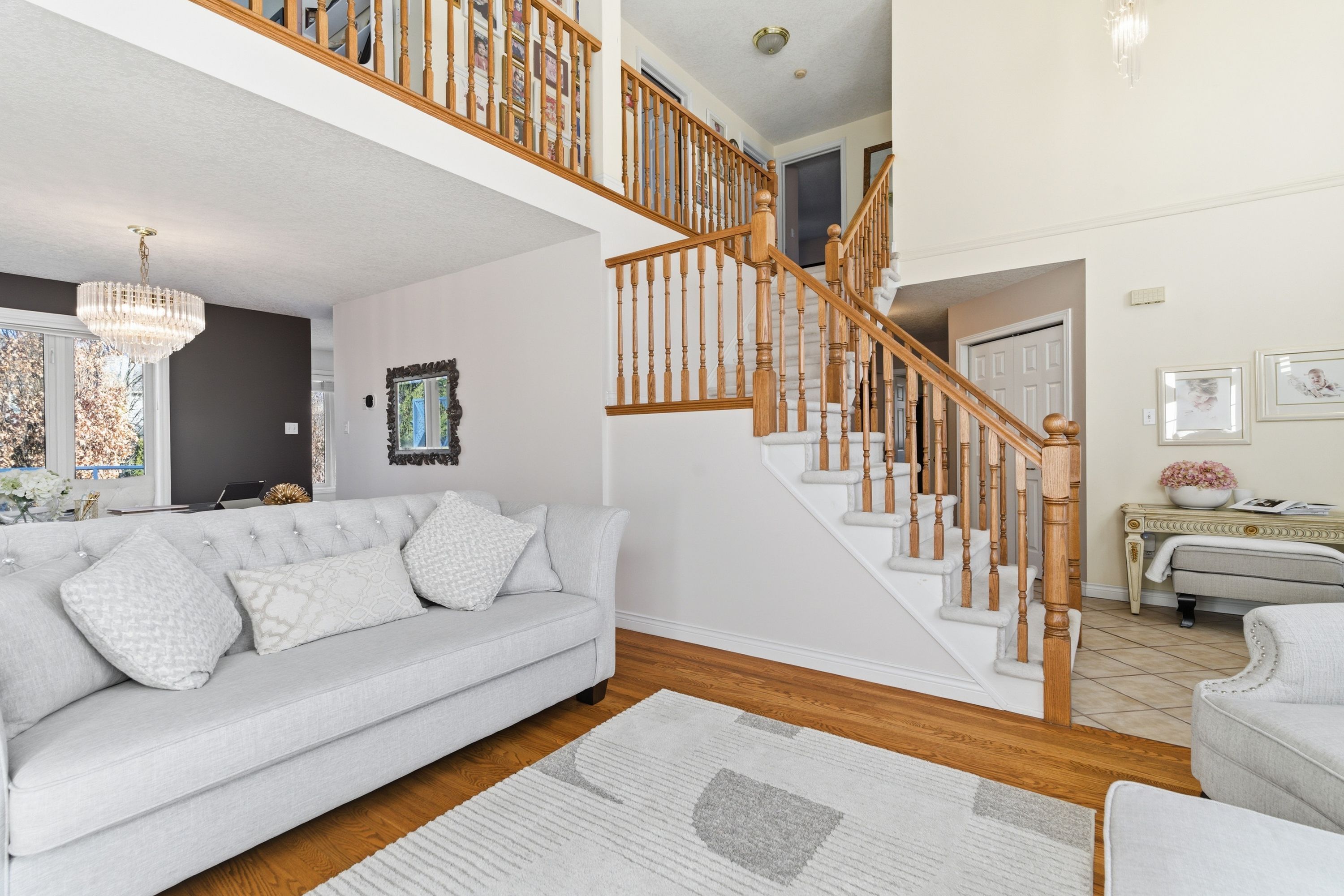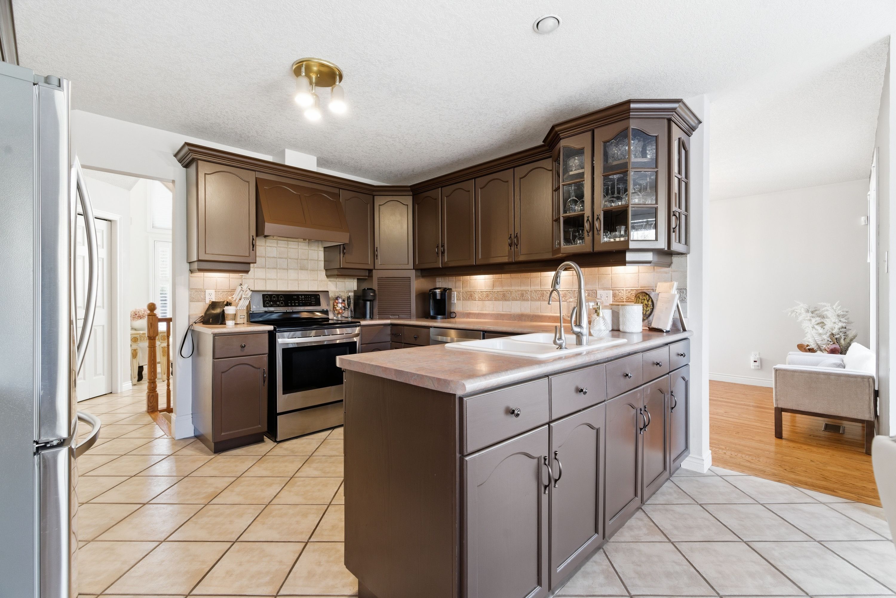 Tucked away at the far end of fieldstone rd, this elegant family home offers a rare opportunity to own on one of kortright east's most sought-after streets in south end guelph. Surrounded by executive homes and nearby greenspace, the property sits on a beautifully treed lot featuring a classic kidney-shaped in-ground pool, creating a private backyard retreat for summer entertaining and family gatherings. Built in 1995, the home reflects genuine pride of ownership while offering an excellent opportunity for a new family to make it their own. The layout also offers flexibility, with an upper loft that could be enclosed to create a fourth bedroom and a walk-out lower level with strong potential for an in-law or multi-generational living space. Inside, the main level offers a warm and functional layout. The foyer features cathedral ceilings and opens to a bright formal living area. The generous eat-in kitchen provides access to the upper deck overlooking the backyard. The adjacent formal dining room is currently used as a secondary home office, offering flexibility depending on your needs. A spacious family room with fireplace anchors the main floor, while a mudroom with built-in cabinetry sits just off the double car garage, perfect for everyday convenience. Upstairs you will find a primary suite with walk-in closet and 4-piece ensuite. Two additional bedrooms share another full bathroom, while the upper loft overlooks the living room and could easily be enclosed to create a fourth bedroom, studio, or playroom. The walk-out basement offers a recreation room with bar, full bathroom/laundry, and multiple storage areas, with direct access to the backyard and pool and excellent potential for an in-law or multi-generational suite. Homes on this street rarely become available, and with surrounding executive homes, mature landscape, and a strong sense of neighbourhood pride, it's easy to see why families stay here for decades.