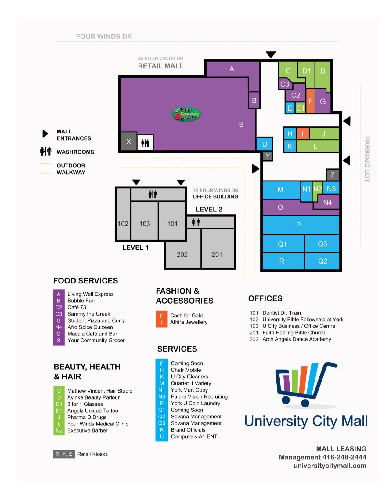 This open and clean unit is located in university city mall, over 60,000 sq. Ft community mall, steps to york university campus at keele and finch, new subway station and newly opened lrt nearby. Join 30 other tenants in this small community mall with busy grocery store anchor tenant and 15 eat in and take out restaurants, with no nearby competition. High density residential area numerous high rise condominiums and high rise apartment buildings are just steps away. New residential developments have recently been built nearby, and additional developments are planned for the area. Many uses allowed. Church, school, gym, office, restaurant or any other retail use. Vacant clean space with 2 washrooms. Seperate heat and air conditioning system. Can be converted to a restaurant for eat in or take out, outdoor patio adjacent to unit is a possibility for the right operator. Very high-density area, steps to 2 high schools and to york university with a huge student and faculty population. 3 new student housing projects recently completed and more planned, short walking distance to everything. Many different types of used and business are viable for this great open concept space, just use your imagination! Landlord willing to work with all viable tenants. Many retail & offices uses allowed. Other spaces available rental rates starting at $400 per month for office uses. Prime retail space starting at $1000 to $6500 per month. Takeout food, clothing, electronics, retail. Tutoring medical, etc. Gross lease includes base rent, realty taxes, maintenance and insurance costs.