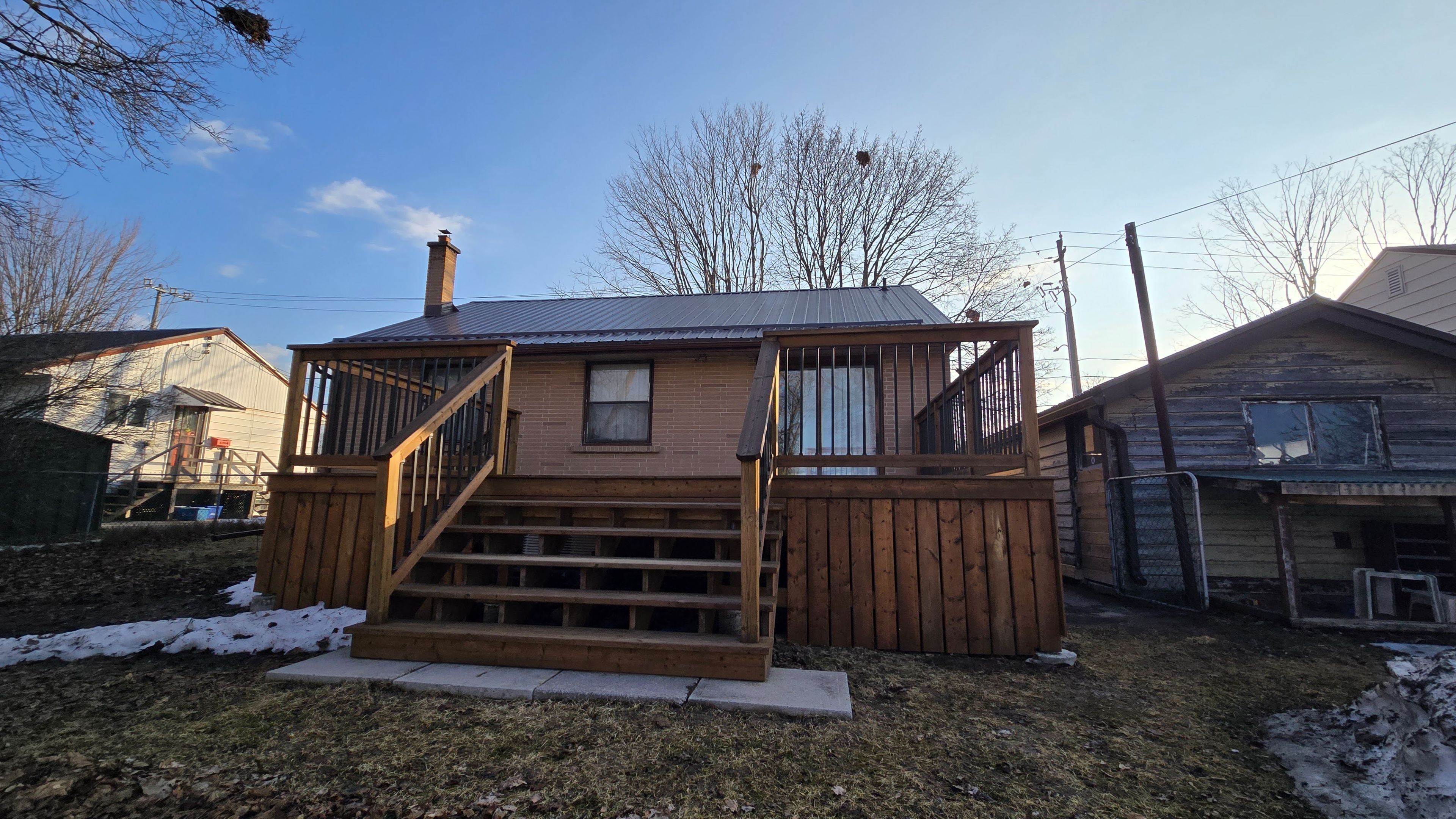 Charming all-brick 3-bedroom, 1-bath bungalow ideal for commuters, first-time buyers, or investors. Welcoming covered front porch leads into a clean, functional main level with easy flow and abundant natural light. Features a galley style eat in kitchen, large family room, spacious rear deck with walkout-perfect for entertaining. Extra-wide, private rear yard backs onto greenspace, is fully fenced for pets, and sits on a nice lot with a single detached garage. Recent steel roof adds long-term value and low maintenance. Full unfinished basement offers excellent potential to finish to your taste - perfect for an in-law suite. Convenient location with quick access to highway 115 for easy commuting, close to schools, shopping, and parks. Classic curb appeal, strong renovation upside, and solid investment potential.
