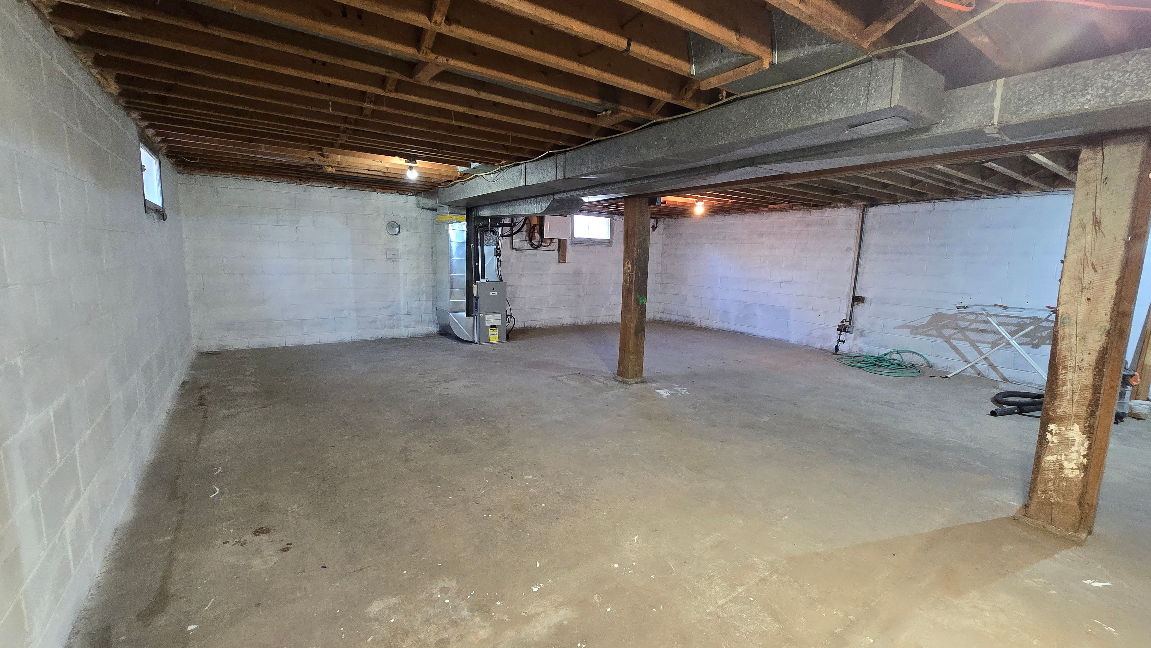 • Unfinished basement offers potential for customization and extra space.