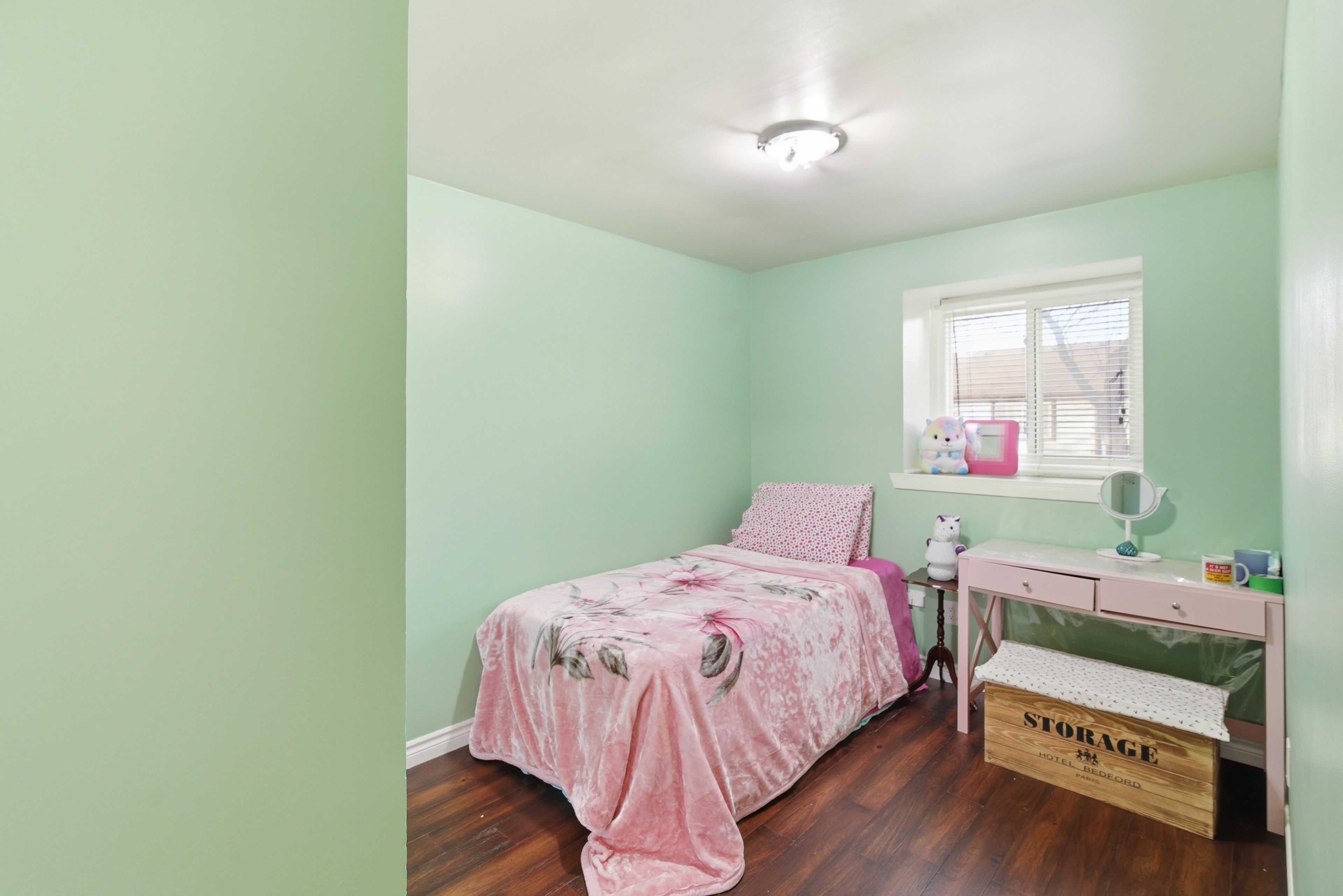• Bright primary bedroom with double door entry and room for a king-size bed.