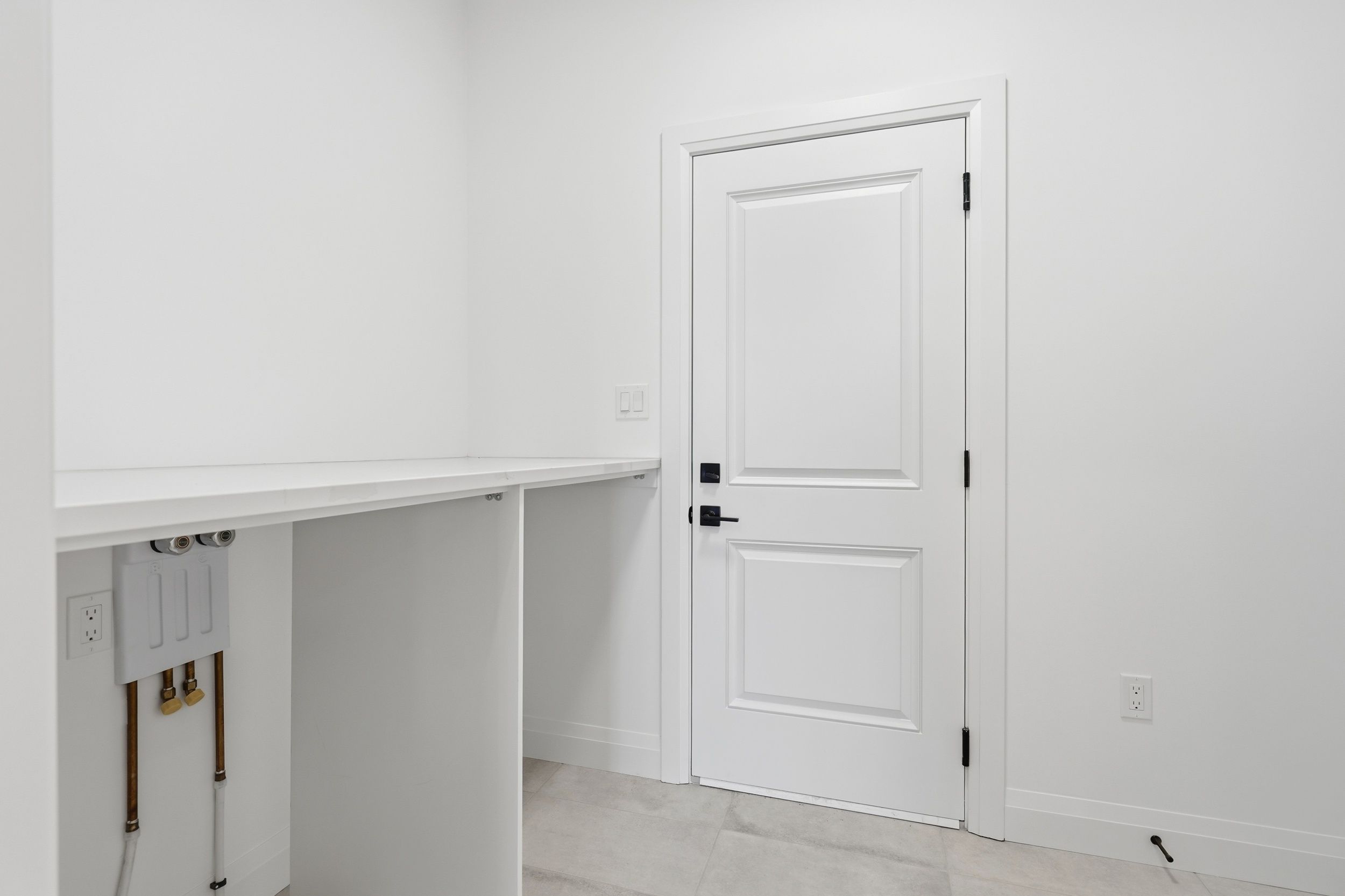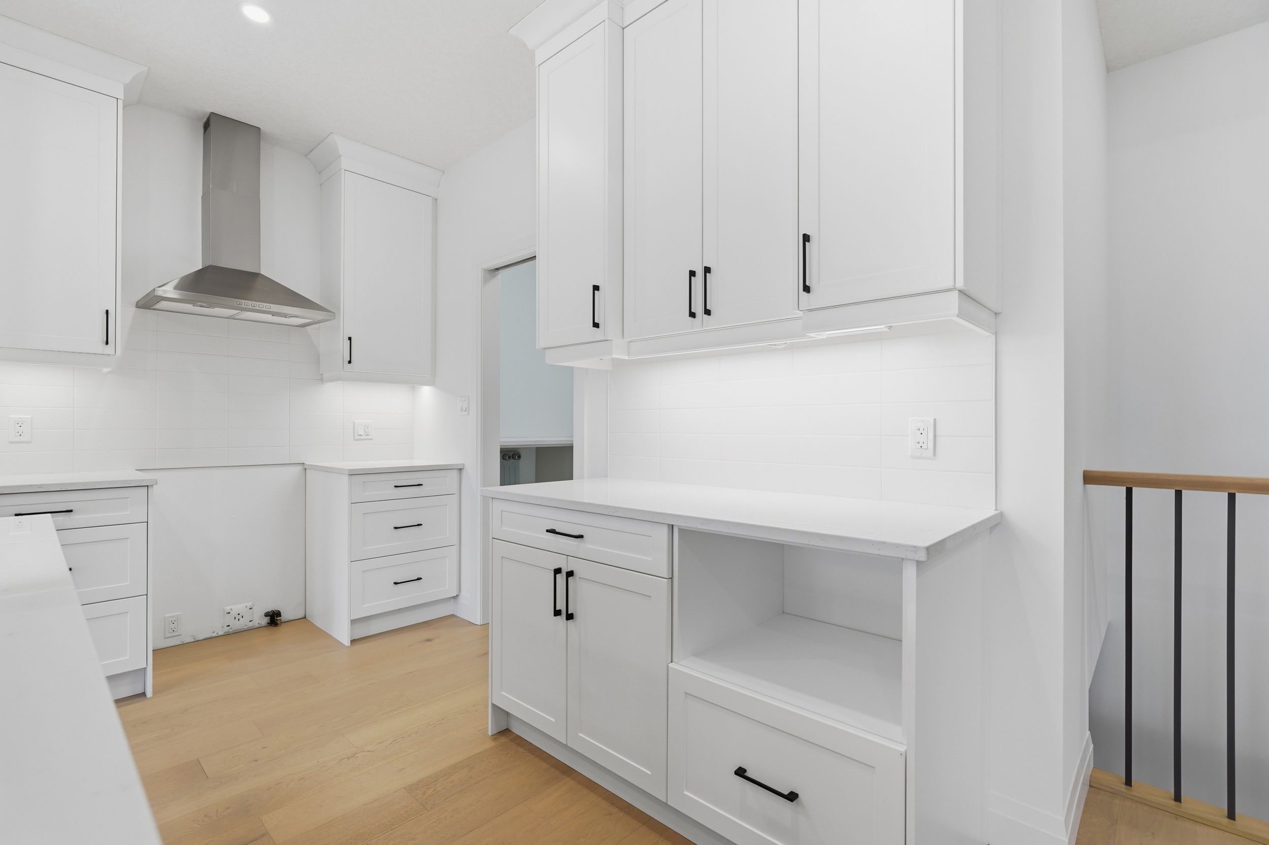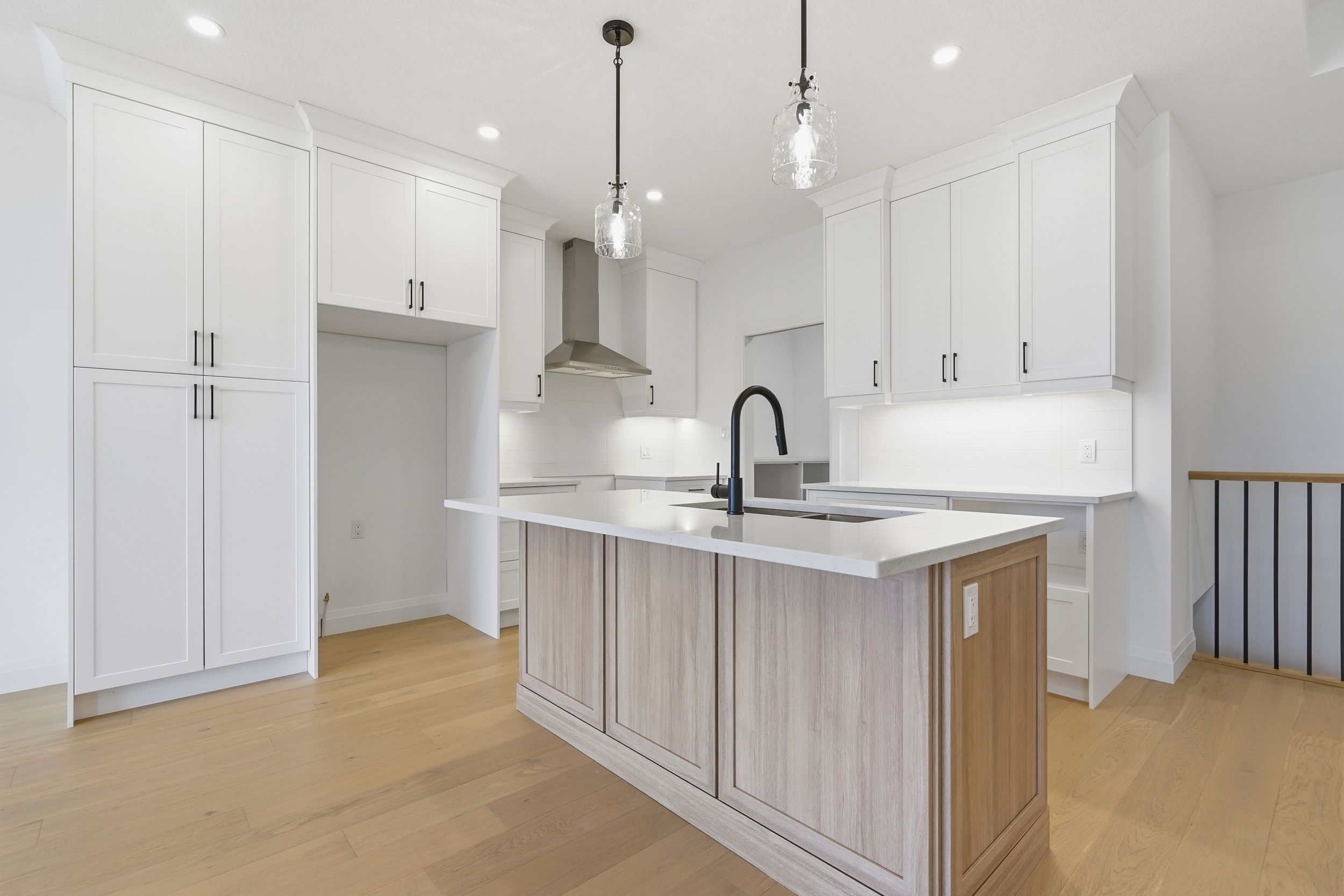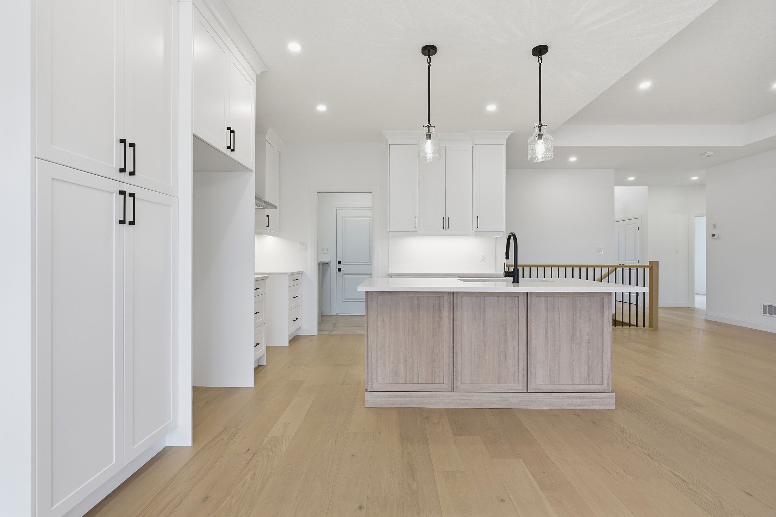 • Custom kitchen with quartz countertops and convenient access to laundry.