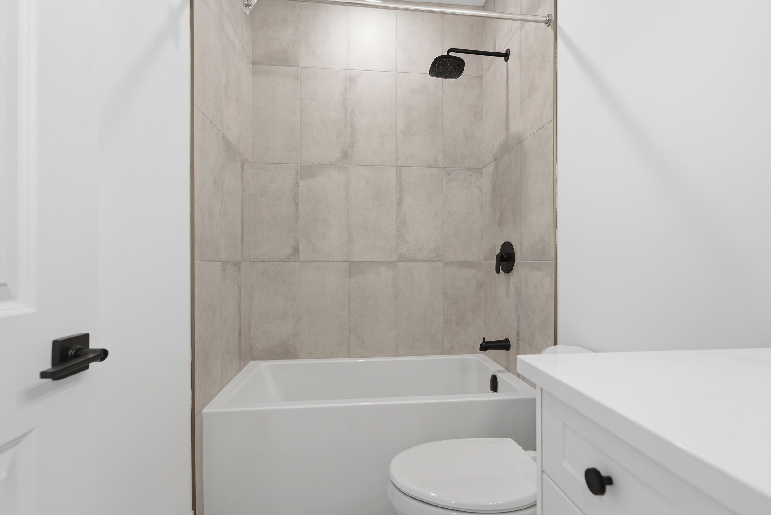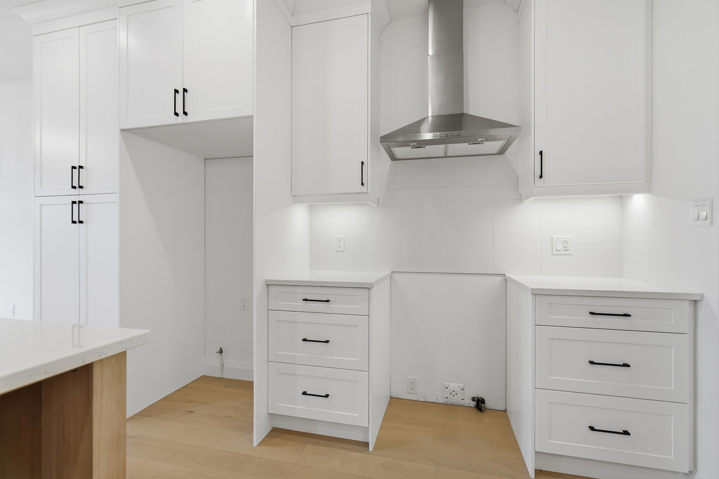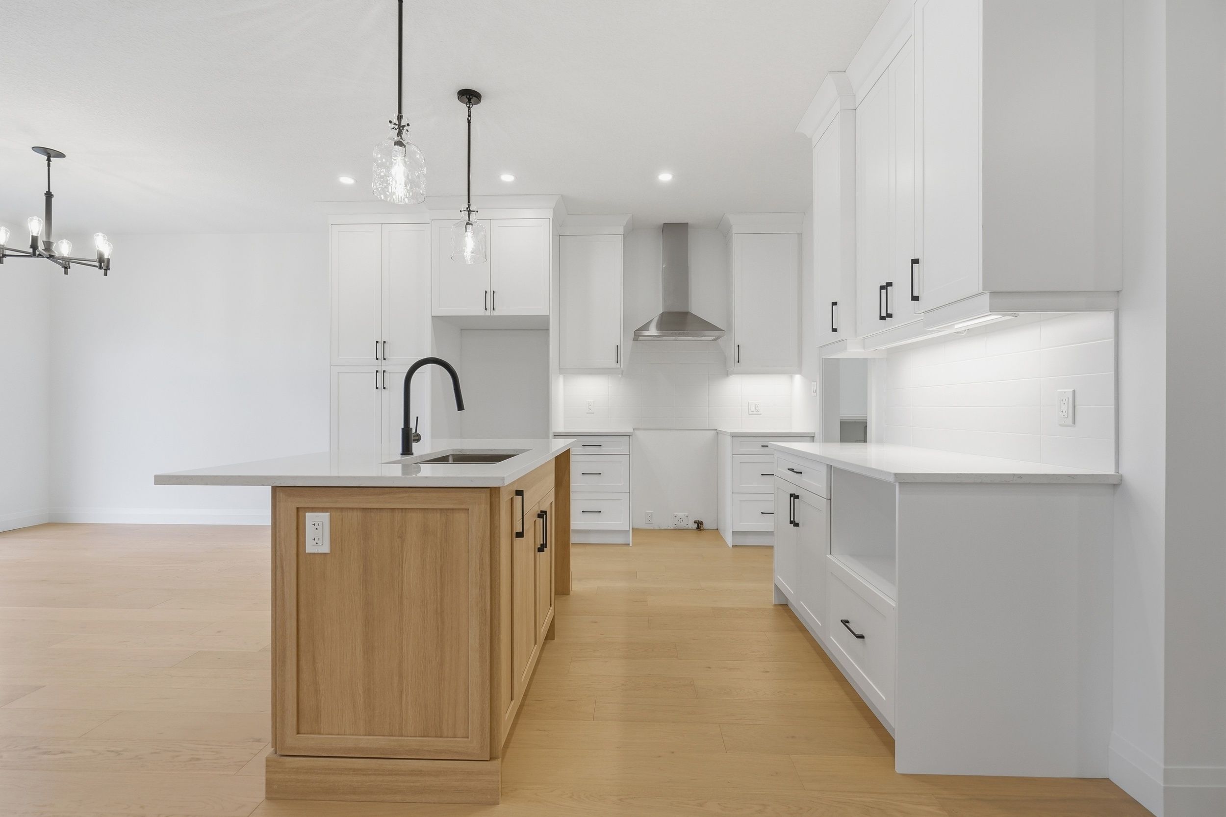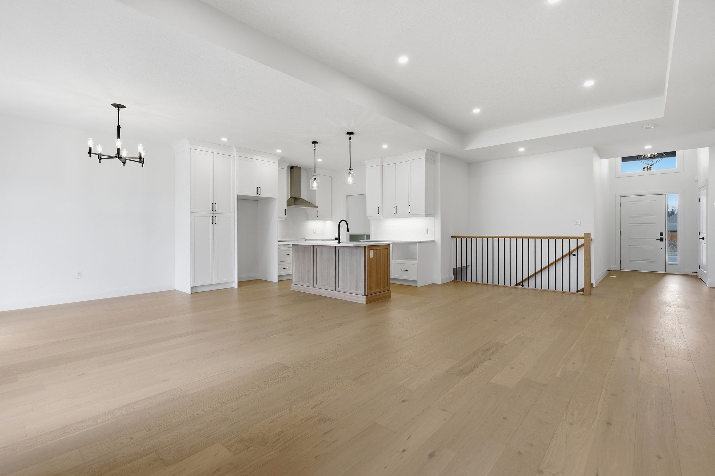 • Custom kitchen with quartz countertops and convenient access to laundry.