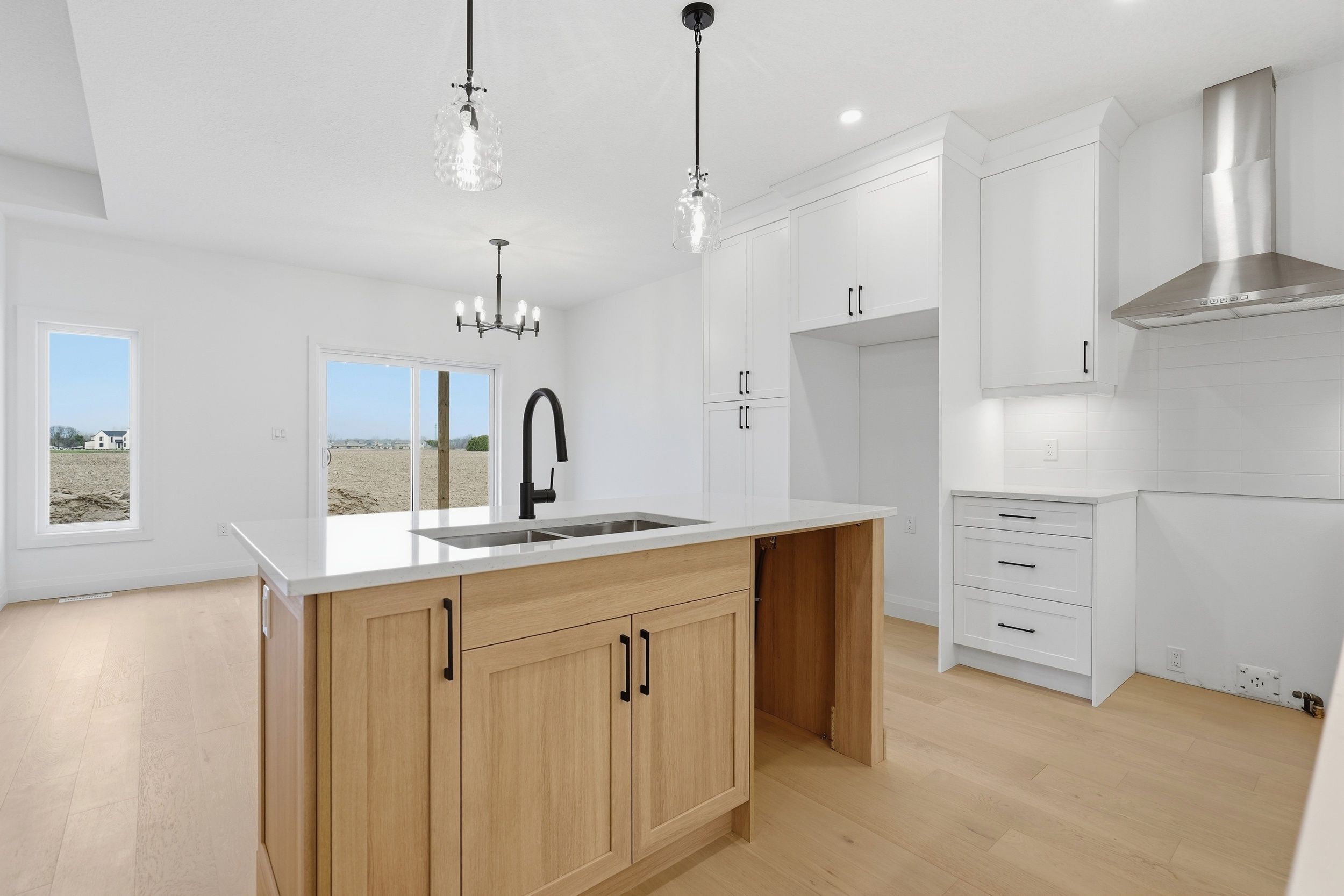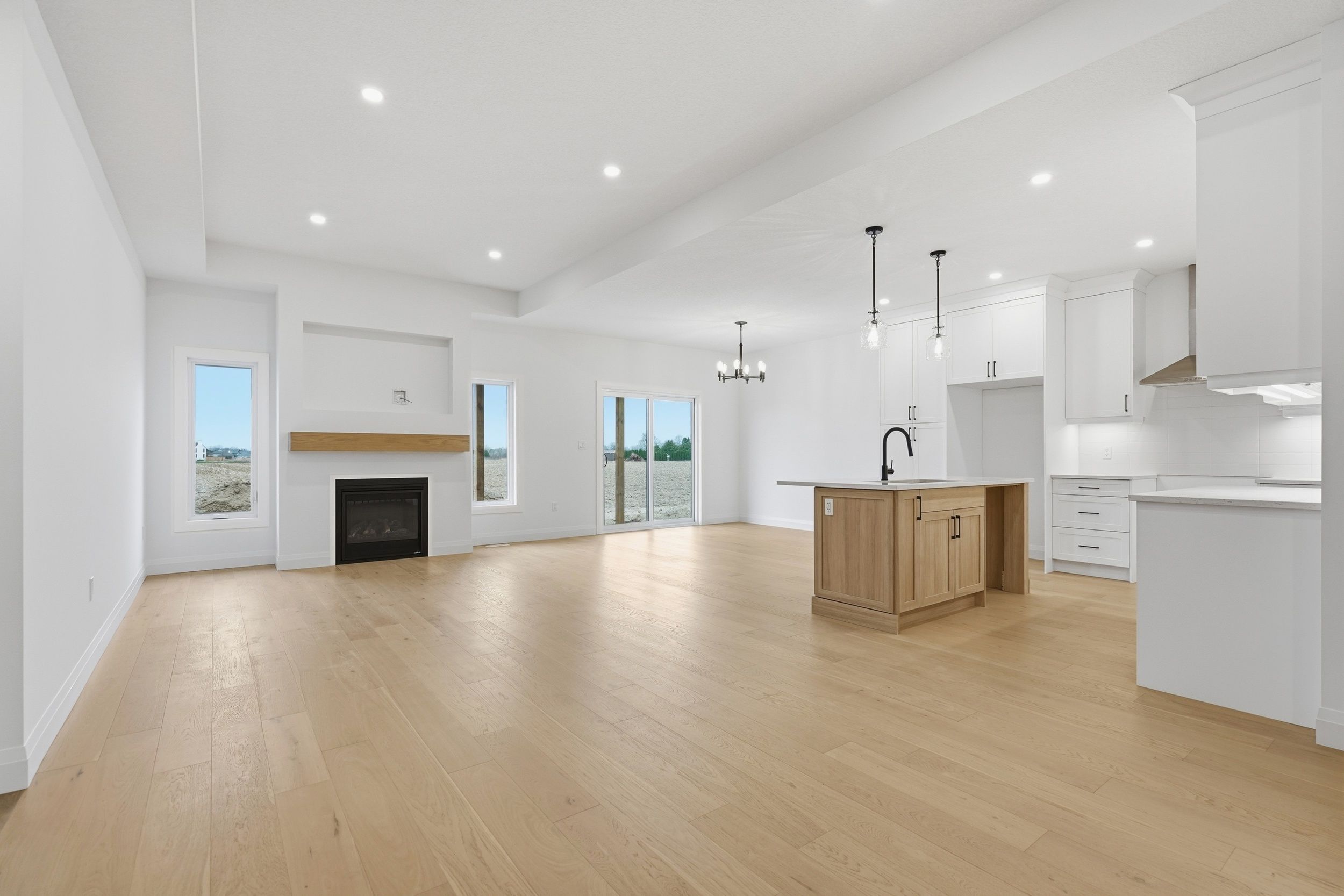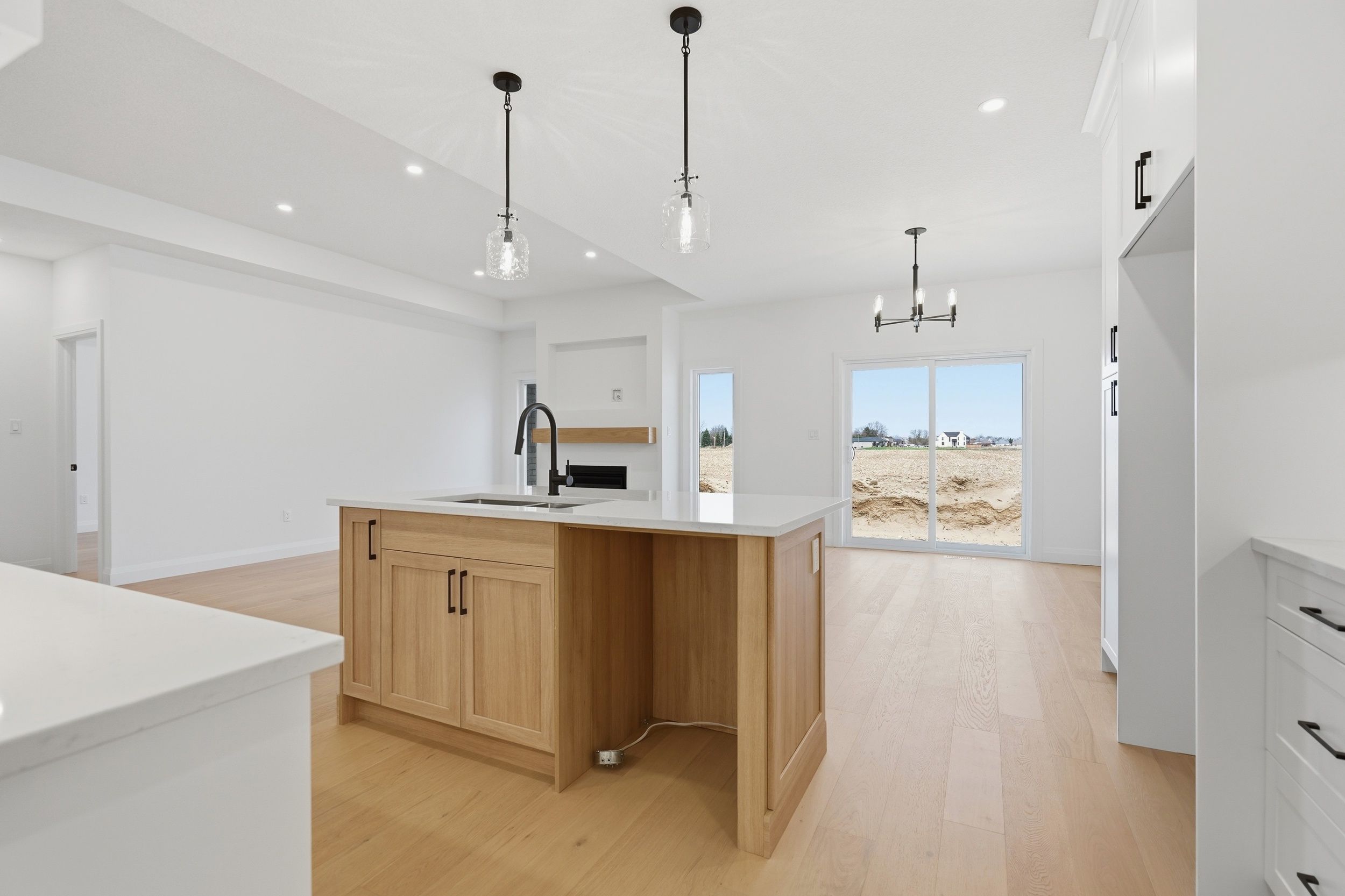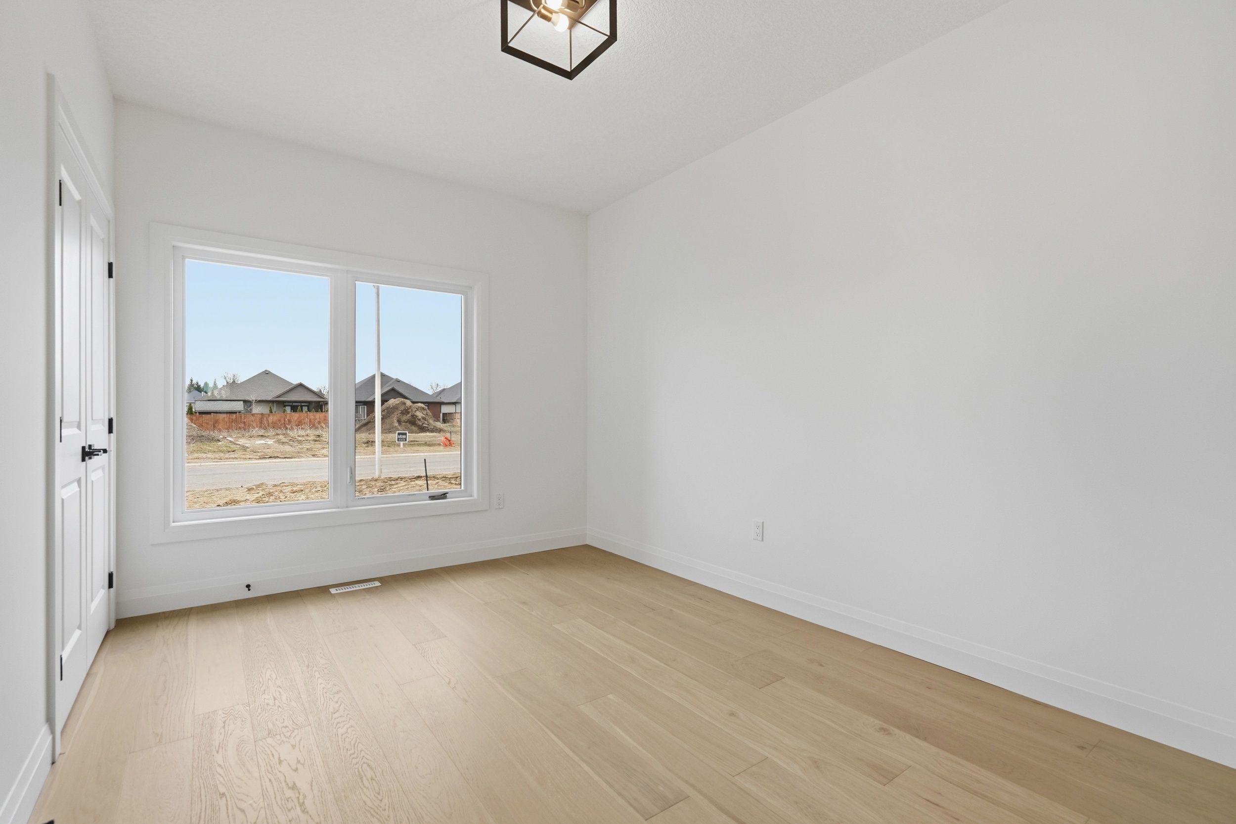 Welcome to 45 hardy drive, platynum constructions stunning builders model home located in the highly sought-after final phase of southgrove meadows community in strathroy, just steps from caradoc sands golf club. This beautifully crafted home offers 2 bed, 2 bath, and an impressive array of upscale finishes that set it apart from standard builds. From the moment you arrive, the exceptional curb appeal stands out, featuring a timeless all-brick exterior with a stone skirt and inviting covered porches at both the front and rear. Inside, a grand foyer with 12-foot ceilings welcomes you into a bright, open-concept living space filled with natural light and finished with rich hardwood flooring throughout. The great room is a true focal point, showcasing an oversized tray ceiling and a modern gas fireplace, perfectly balancing warmth and contemporary style. The custom kitchen is equally impressive, complete with crisp white cabinetry, stunning quartz countertops, black hardware, and a functional layout that includes convenient access to the main floor laundry and mudroom. The adjoining dining area opens onto a covered deck with a gas line for bbqs, overlooking farm land-ideal for entertaining or relaxing outdoors. The primary suite is a private retreat, highlighted by a tray ceiling, spacious walk-in closet, and a spa-inspired ensuite featuring a walk-in tile shower. A second bedroom and full bathroom complete the main level. The lower level is unfinished to add your personal touches. Perfectly located close to shopping, dining, schools, and with easy access to highway 402, this home offers the ideal combination of luxury, comfort, and convenience in one of strathroy's most desirable communities.