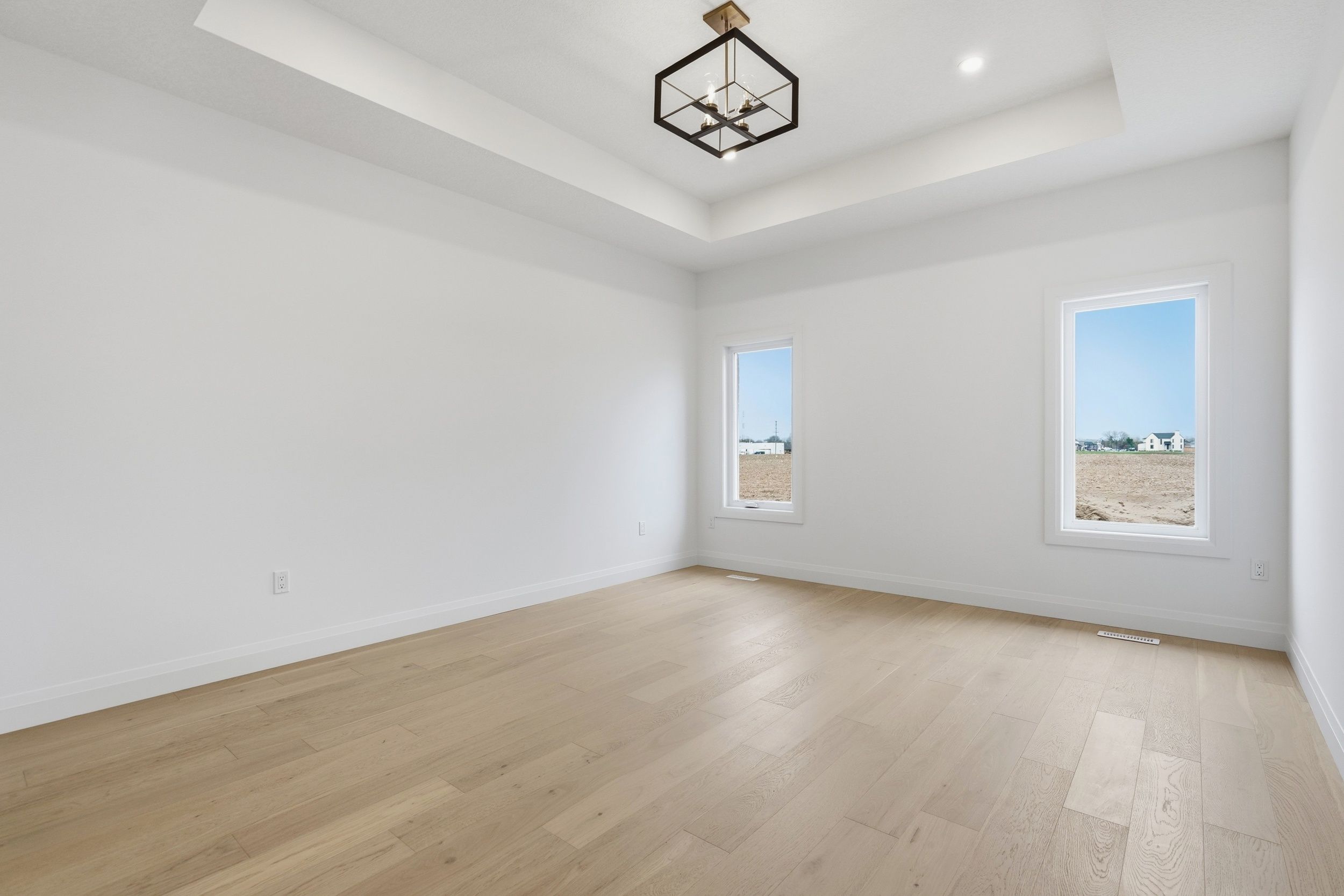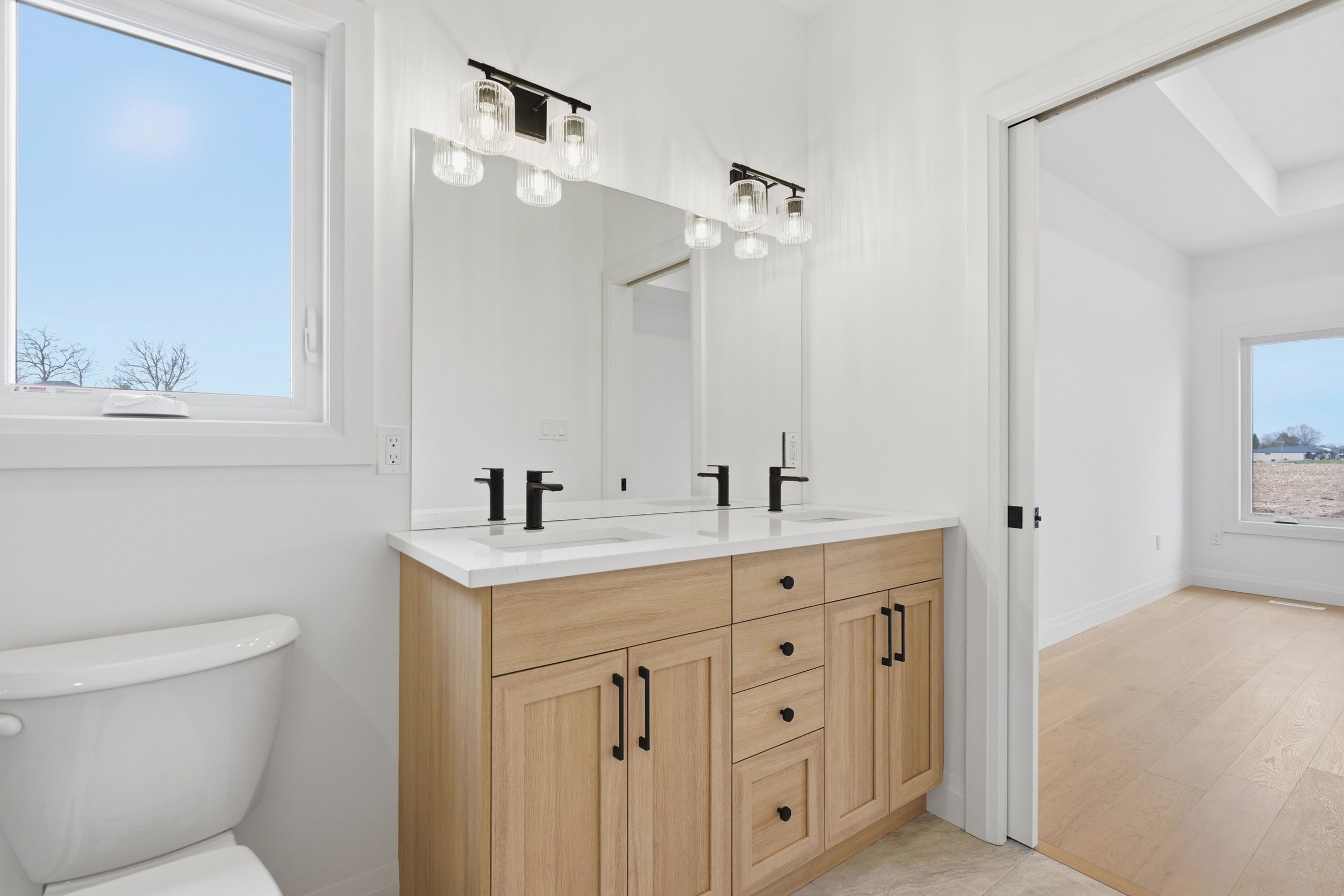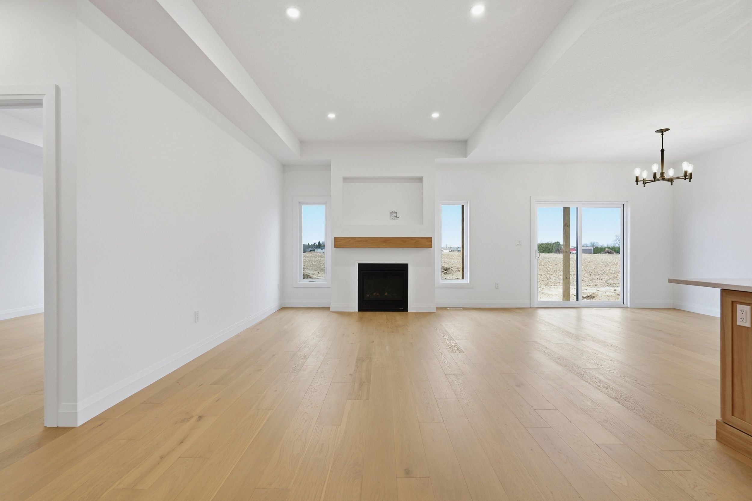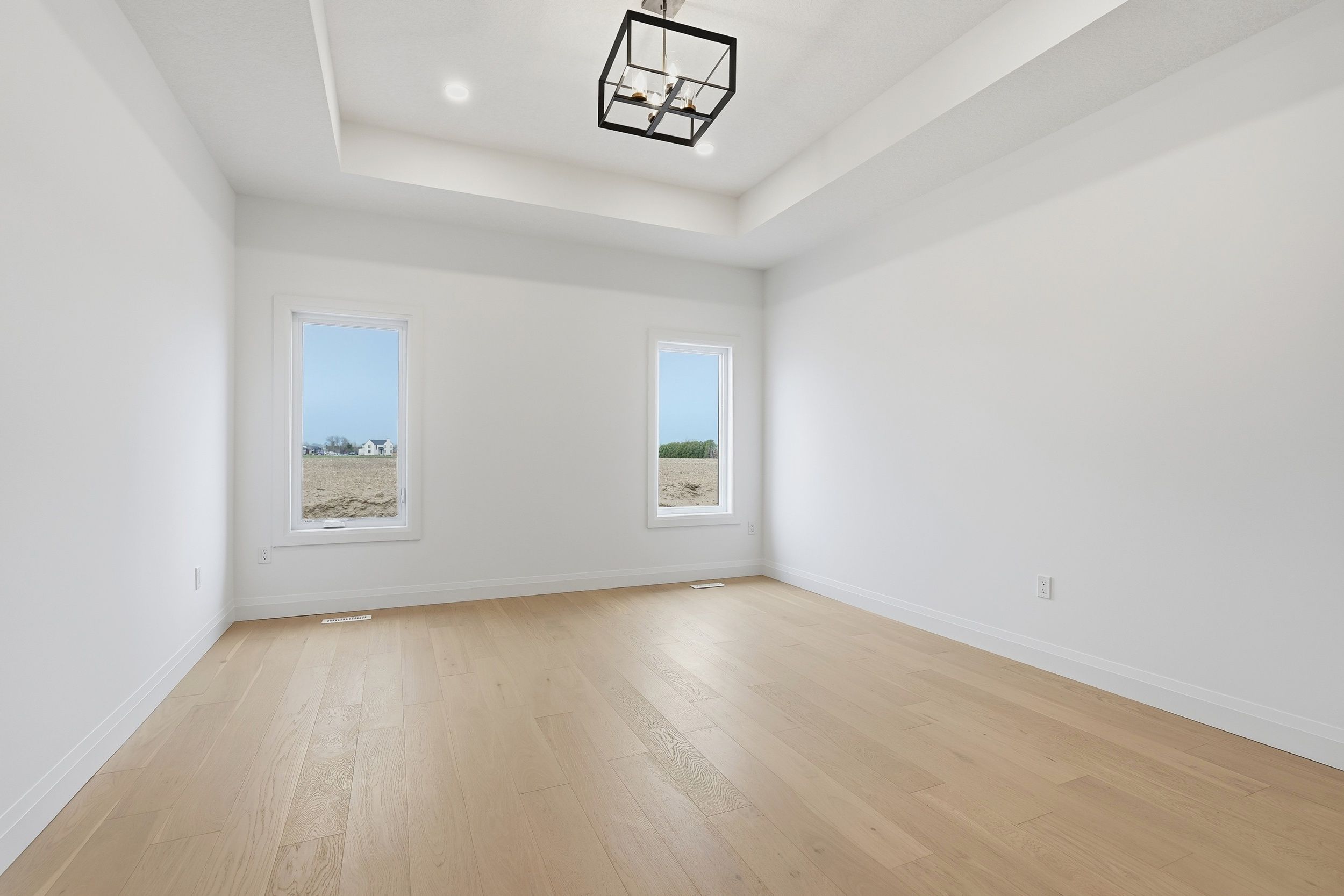 Welcome to 45 hardy drive, platynum constructions stunning builders model home located in the highly sought-after final phase of southgrove meadows community in strathroy, just steps from caradoc sands golf club. This beautifully crafted home offers 2 bed, 2 bath, and an impressive array of upscale finishes that set it apart from standard builds. From the moment you arrive, the exceptional curb appeal stands out, featuring a timeless all-brick exterior with a stone skirt and inviting covered porches at both the front and rear. Inside, a grand foyer with 12-foot ceilings welcomes you into a bright, open-concept living space filled with natural light and finished with rich hardwood flooring throughout. The great room is a true focal point, showcasing an oversized tray ceiling and a modern gas fireplace, perfectly balancing warmth and contemporary style. The custom kitchen is equally impressive, complete with crisp white cabinetry, stunning quartz countertops, black hardware, and a functional layout that includes convenient access to the main floor laundry and mudroom. The adjoining dining area opens onto a covered deck with a gas line for bbqs, overlooking farm land-ideal for entertaining or relaxing outdoors. The primary suite is a private retreat, highlighted by a tray ceiling, spacious walk-in closet, and a spa-inspired ensuite featuring a walk-in tile shower. A second bedroom and full bathroom complete the main level. The lower level is unfinished to add your personal touches. Perfectly located close to shopping, dining, schools, and with easy access to highway 402, this home offers the ideal combination of luxury, comfort, and convenience in one of strathroy's most desirable communities.