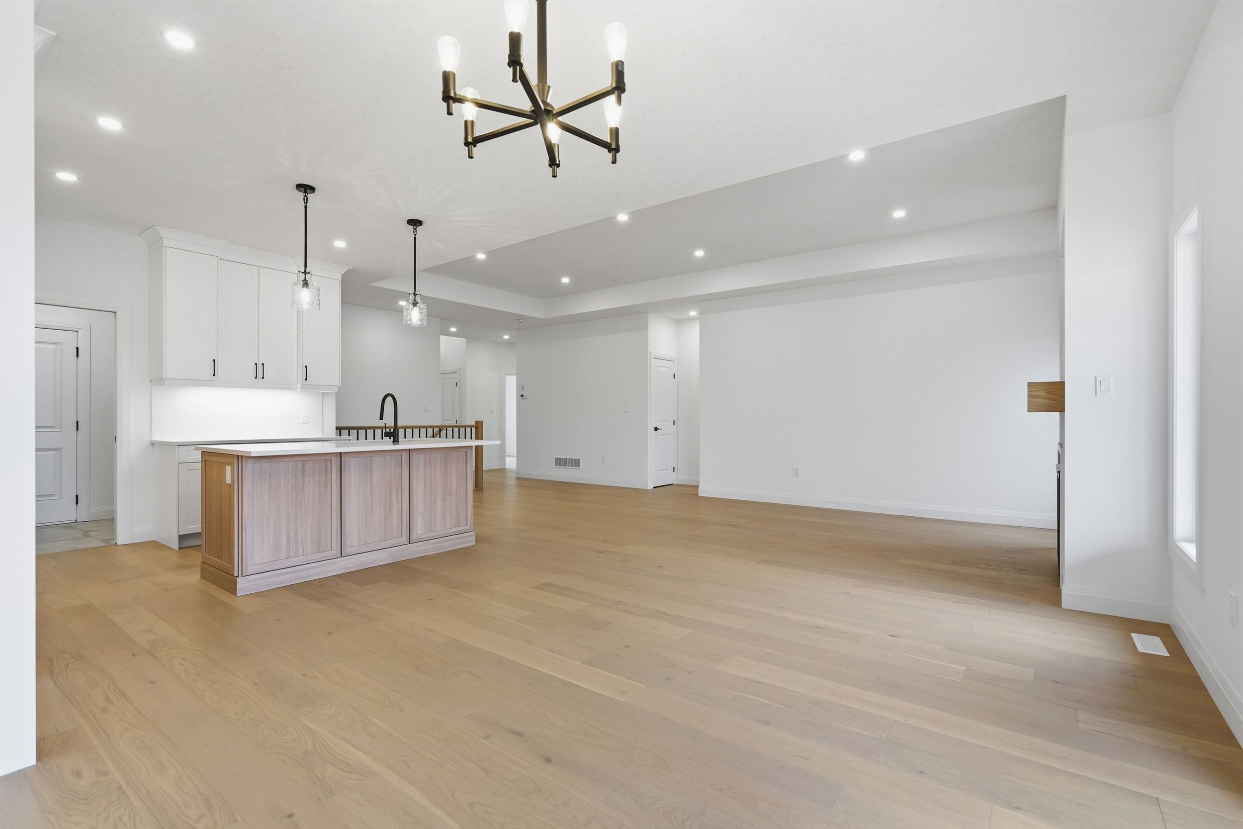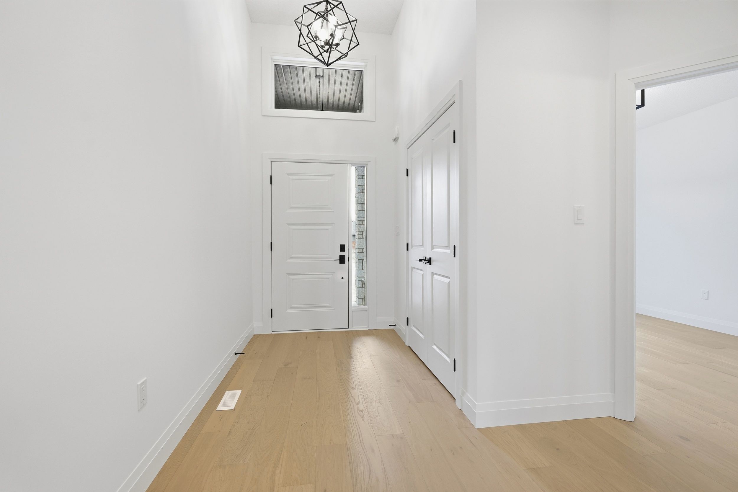• Bright, open-concept living space with 12-foot ceilings and hardwood flooring.