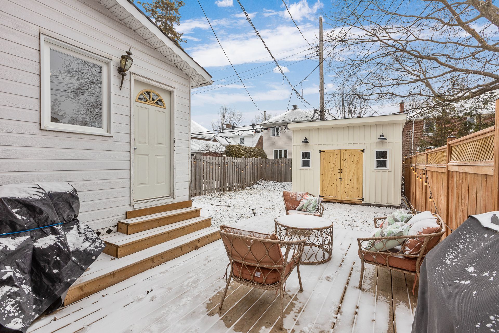 This lovely semi-detached residence offers achievable luxury living in one of ottawa's finest neighbourhoods! An inviting open-concept main floor where living and dining areas flow together, enhanced by a fully renovated kitchen completed in 2021 with quartz countertop, cast iron sink, new appliances and cabinets! A 4-season sunroom/office extends the main living space, delivering versatile, year-round use. The fully finished lower level includes a full bathroom, plenty of storage and a large rec room. The fenced rear yard provides private outdoor enjoyment, while a 10' x 14' shed (built in 2025) offers fresh potential as flex space-perfect for an artist studio or home office. This thoughtful combination of modern upgrades and highly functional layout presents a rare offering in this market! Pristine! Offers tuesday april 14th at 5 pm. ***open houses thursday april 9th 10:00-12:00 and sunday april 12th 2:00-4:00***