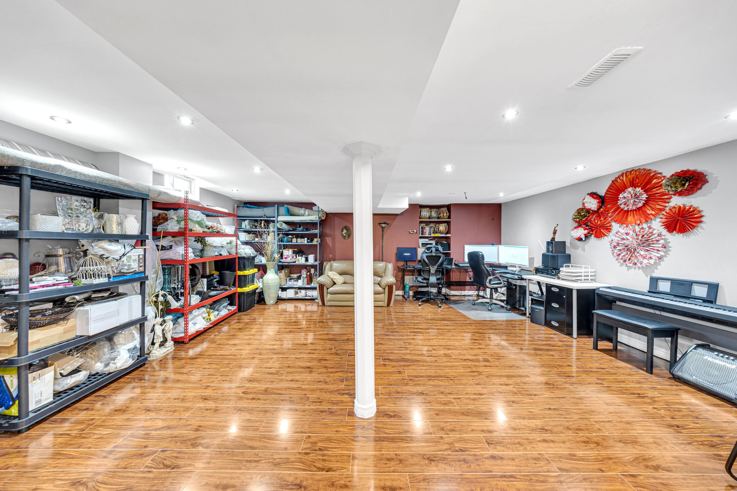 • Finished basement with recreation area, office, and full kitchen.