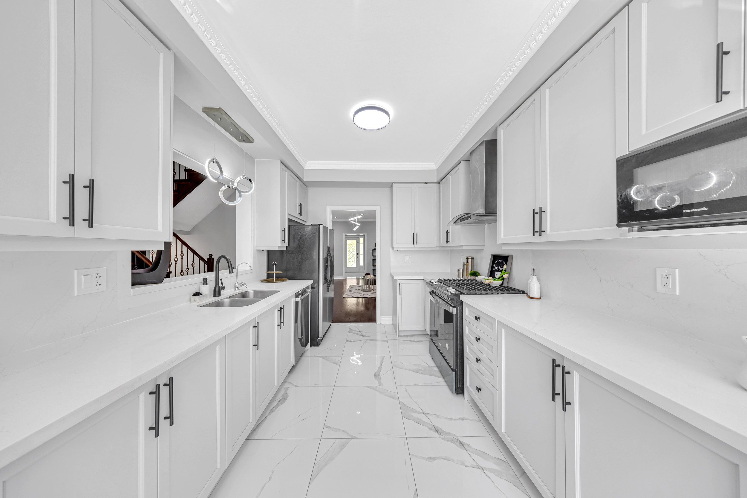 • Upgraded kitchen with quartz countertops and new stainless steel appliances.