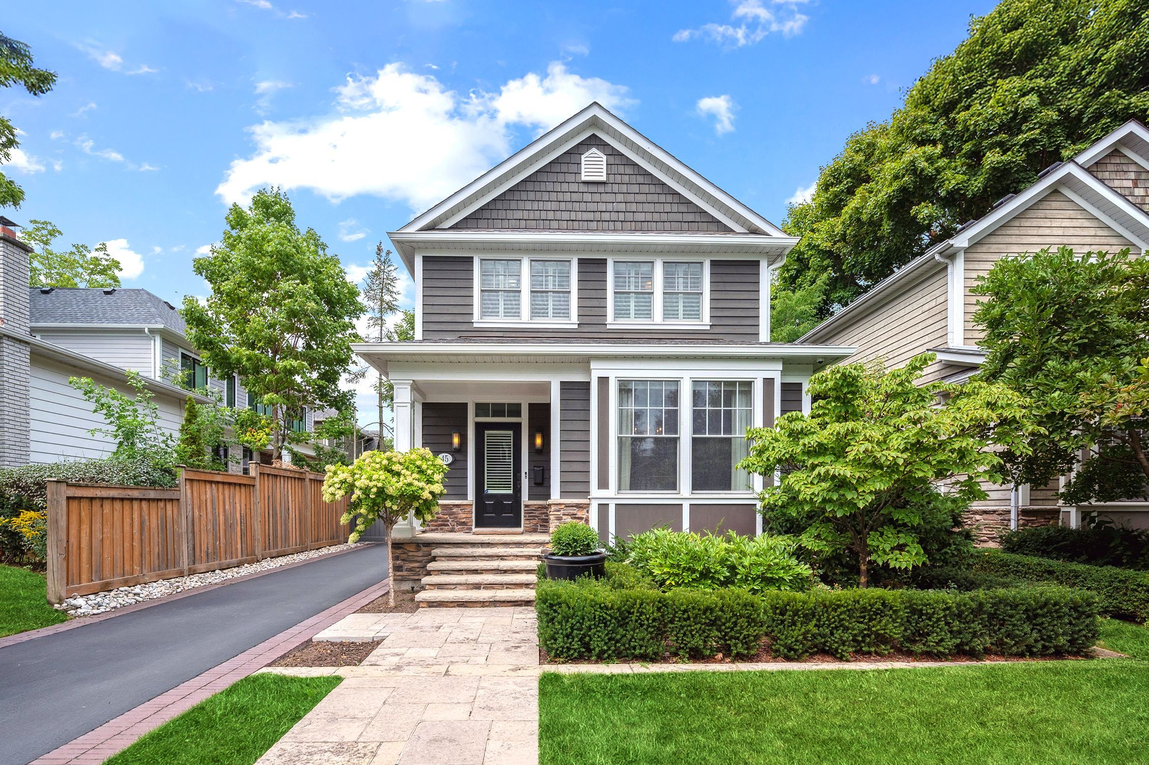 Nestled in the heart of downtown oakville, this exceptional custom-built cochren home offers an enviable lifestyle just steps from boutiques, fine dining, the marina, cafés, and performing arts venues. With every amenity within walking distance, it perfectly captures the charm and sophistication of downtown oakville living. Built in 2006 with meticulous attention to detail, the residence showcases timeless finishes and refined craftsmanship throughout. Its exterior reflects the classic architectural character of the neighbourhood, blending seamlessly with its historic surroundings. A covered front porch welcomes you into a warm interior featuring rich hardwood floors and a thoughtful layout. The semi open-concept dining room is ideal for both intimate dinners and elegant entertaining. At the heart of the home, the gourmet kitchen flows into the family room with a cozy fireplace and custom built-ins. Cambria countertops, a centre island with seating for four, premium appliances, and a walk-in pantry combine beauty and function. French doors open to a private rear patio, perfect for summer evenings. A side entrance provides access to the driveway, ample parking, and a garage with extra storage. Upstairs offers three spacious bedrooms and two bathrooms, including a serene principal suite with a walk-in closet and spa-inspired ensuite. The finished lower level adds a fourth bedroom, full bath, and versatile recreation space-ideal for guests, extended family, or a home office.