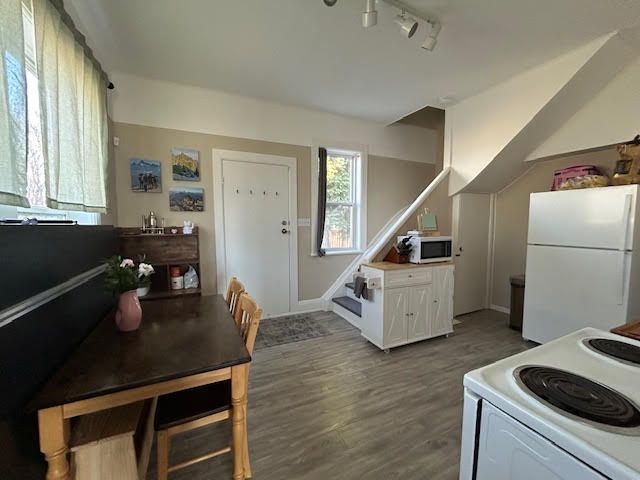 • Sun-filled kitchen with walk-out to a private deck and backyard.