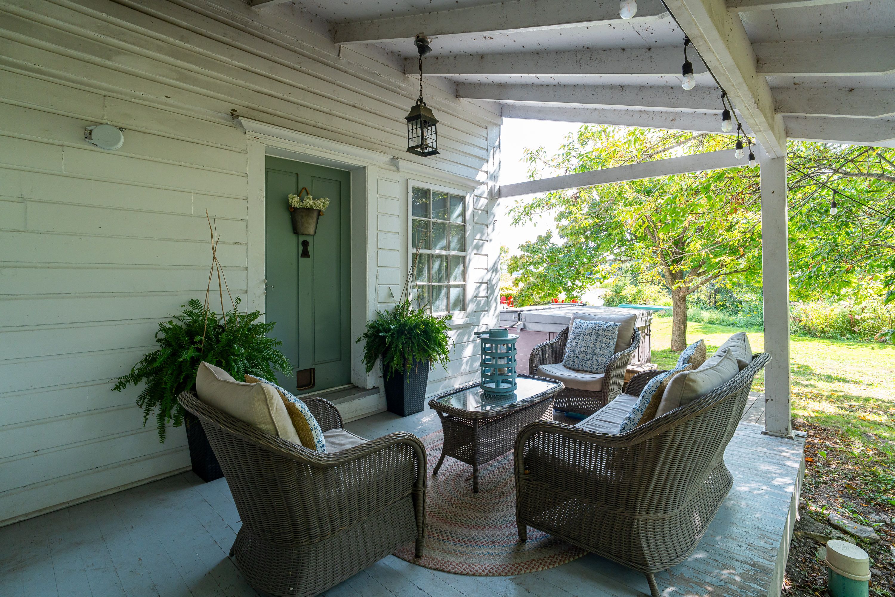 • Expansive outdoor space with dock, hot tub, and gardens for relaxation.