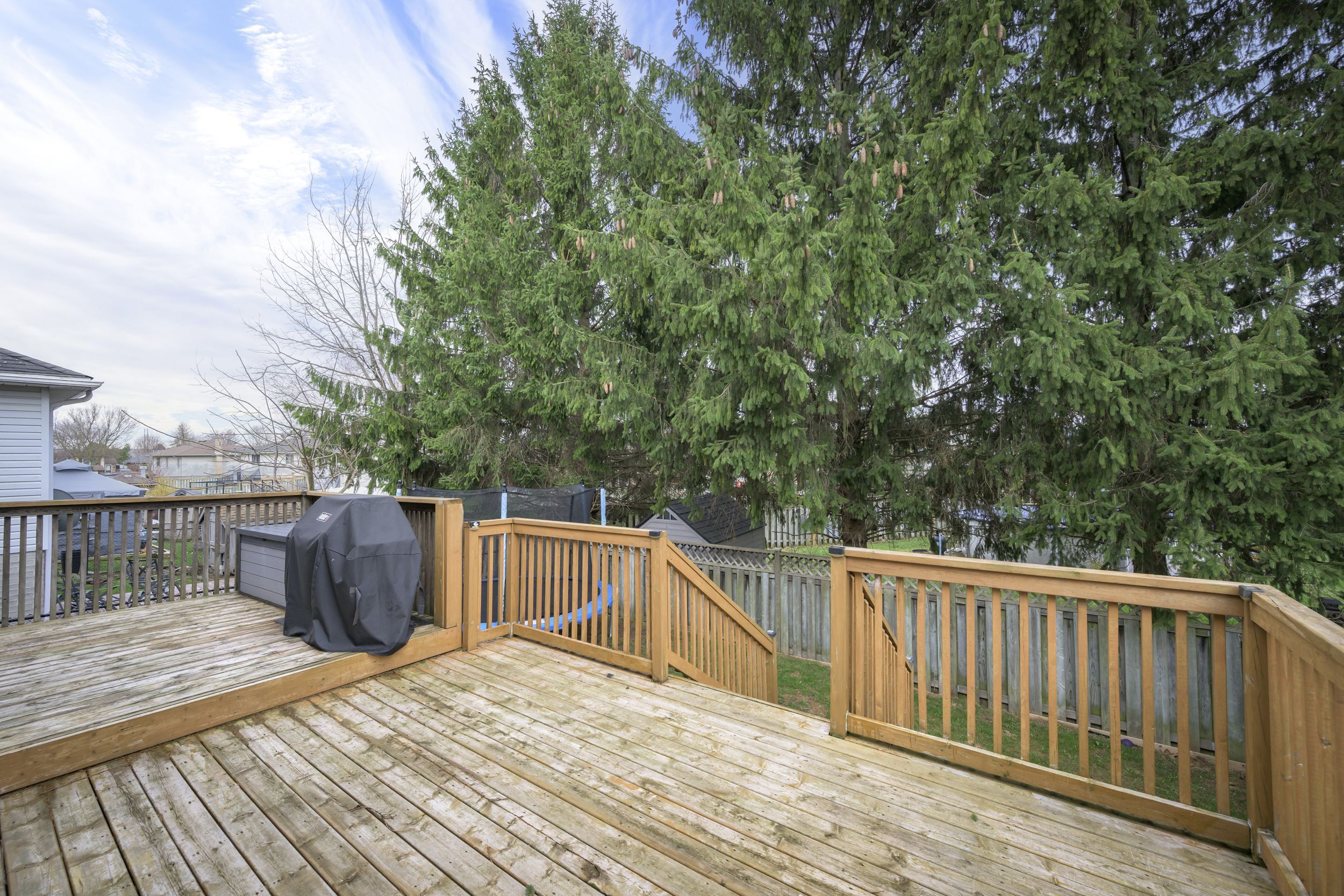 Welcome to this stunning, move in ready 3+1 bedroom raised ranch! The bright, open concept main floor boasts cathedral ceilings, pot lights throughout, and a two storey foyer that floods both levels with natural light. Spacious kitchen with quartz countertop and backsplash, ample countertop and cupboard space, soft closing hardware, stainless steel appliances, and a breakfast bar for 4 people! The primary bedroom offers a walk-in closet and access to a huge two-tiered deck and fully fenced yard. Two additional bedrooms and a 5 piece bath complete the main level. The fully finished lower level expands your living space with a large family room, 4th bedroom, 3 piece bath, and a versatile rec room. Extensively renovated throughout in 2020-including windows, insulation, furnace & ac, electrical, plumbing, trim, siding and more - practically a new home! No carpet here! Tall 1. 5 car garage for extra storage and a concrete driveway that fits 3 cars. Located on a quiet street close to so many amenities including a playground, forest view park, schools, and quick access to shopping and hwy 401.