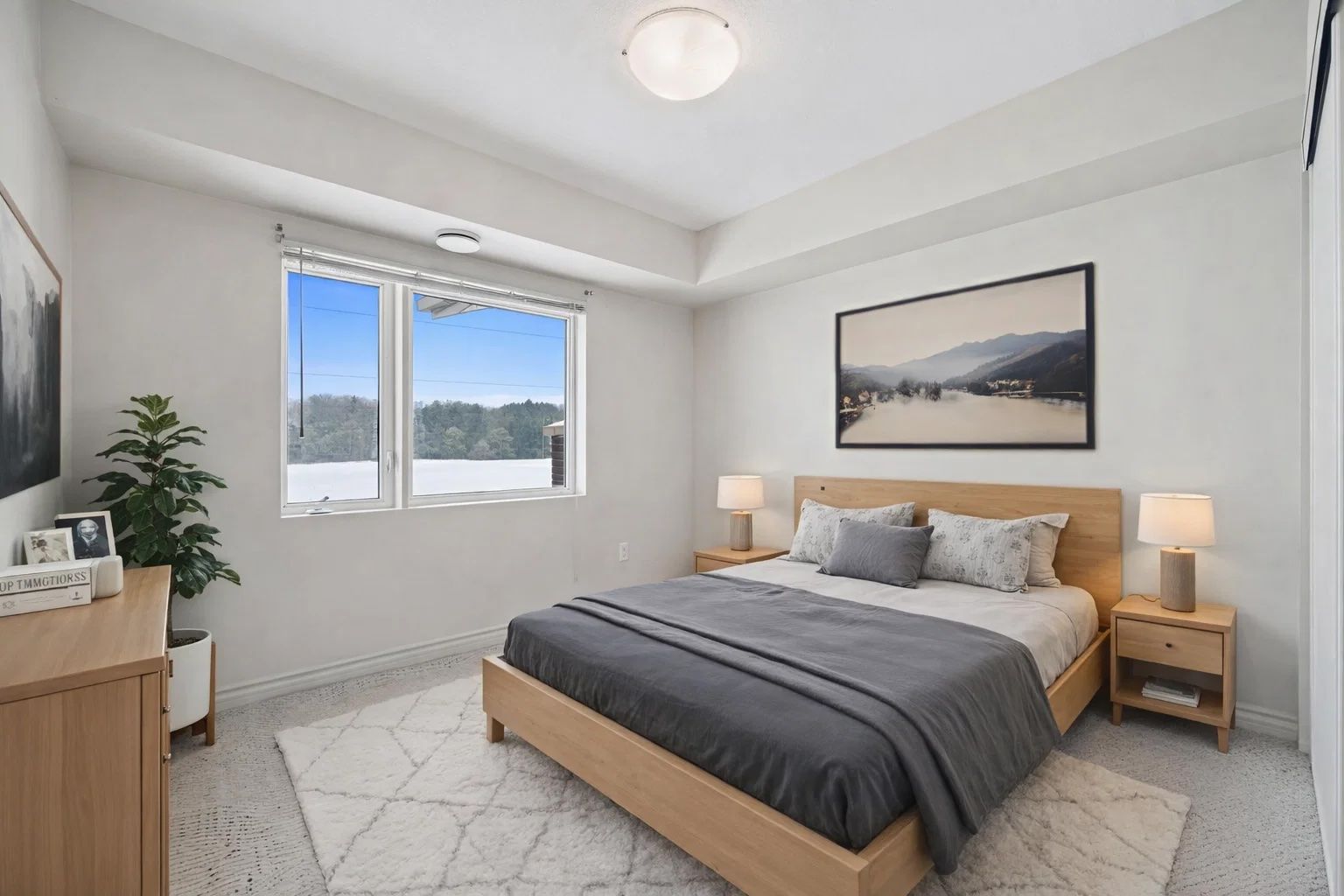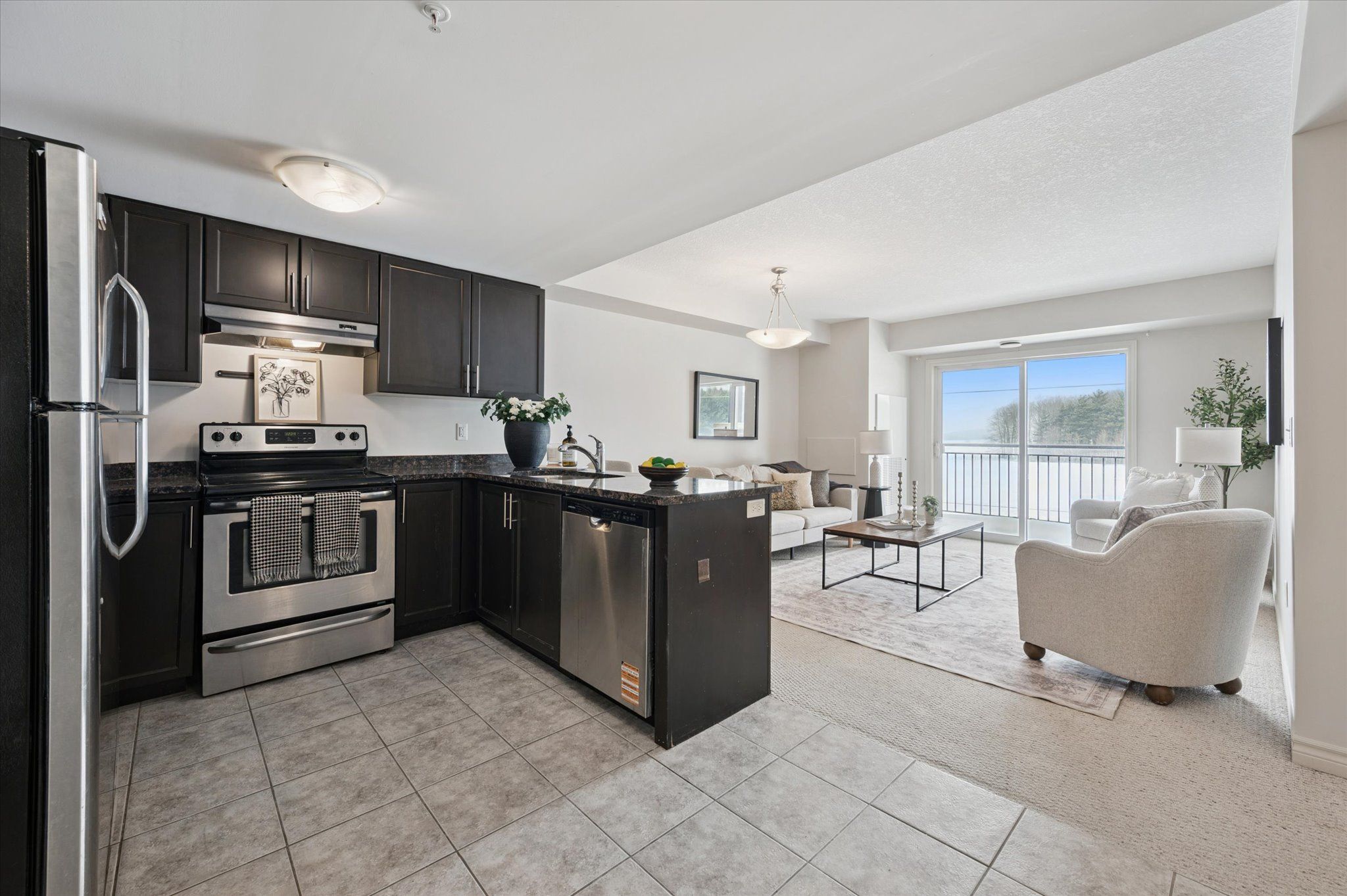 Top floor 2-bedroom condo overlooking peaceful green space in guelph's desirable south end! This bright, open-concept home is flooded with natural light from large windows throughout. The modern kitchen features granite countertops, stainless steel appliances including a brand new dishwasher, and ample storage. Step onto your private balcony for morning coffee or evening relaxation. Two generously sized bedrooms offer comfort and flexibility. In-suite laundry features a premium samsung stacked washer/dryer, while the stylish 4-piece bath showcases granite finishes. One parking spot included. Minutes to grocery stores, restaurants, schools, public transit, and the university of guelph with easy 401 access. Surrounded by parks and maintained trails. Perfect for professionals, downsizers, or students seeking convenience and quality!
