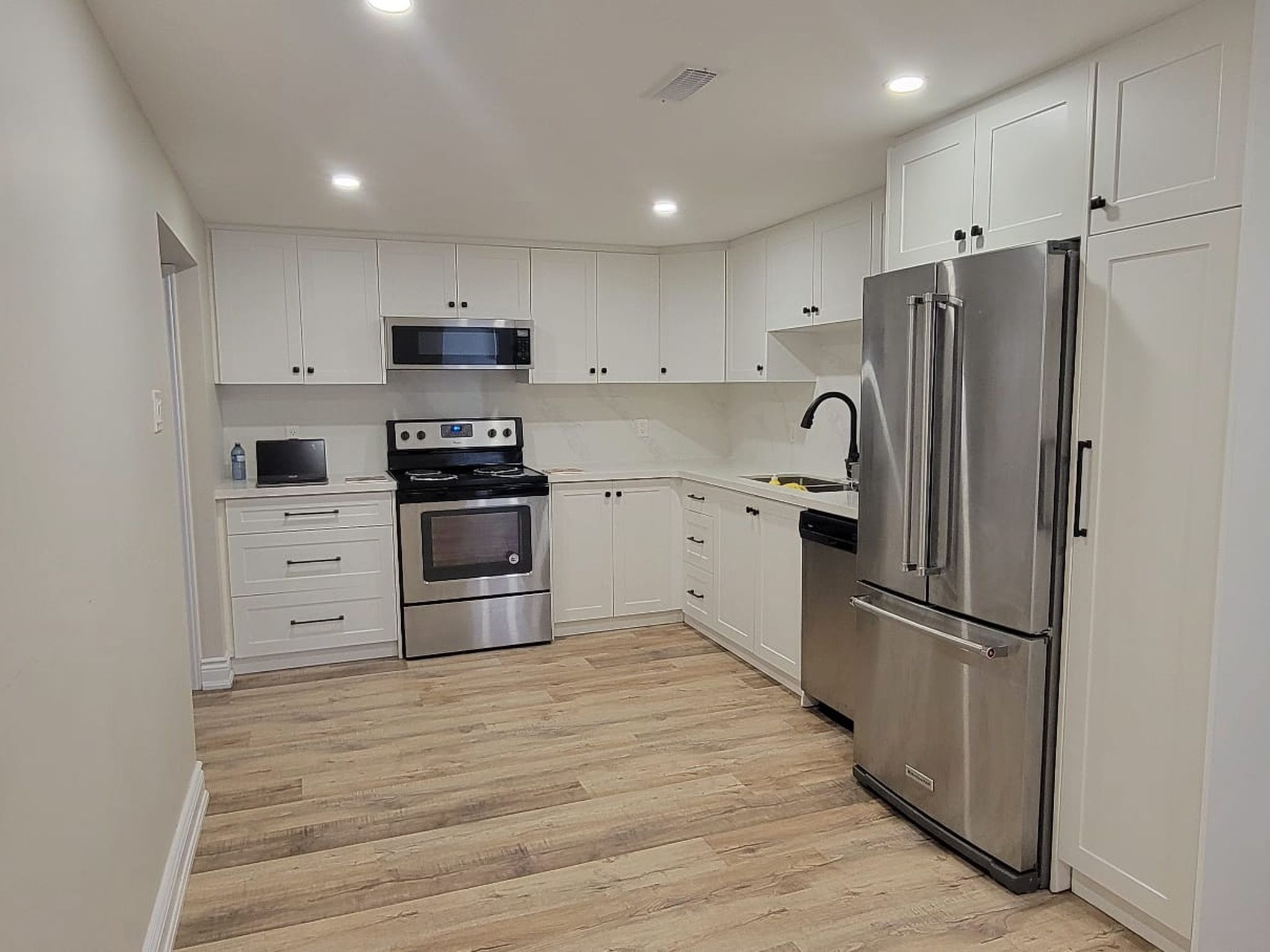Bright and well-maintained 2-bedroom + den lower-level apartment in a quiet neighborhood. Located in a raised bungalow with above-grade windows allowing for good natural light. The unit offers a well-proportioned layout, including a comfortable living area, a separate den suitable for a home office, and a full kitchen with generous cabinet space, built-in dishwasher, and microwave. Includes ensuite laundry and two tandem driveway parking spaces. Convenient access to upper canada mall, go station, yonge & davis street amenities, transit, and major retail stores. Tenant to pay 30% of all utilities for up to two occupants; 50% for more than two occupants. No smoking. No pets.