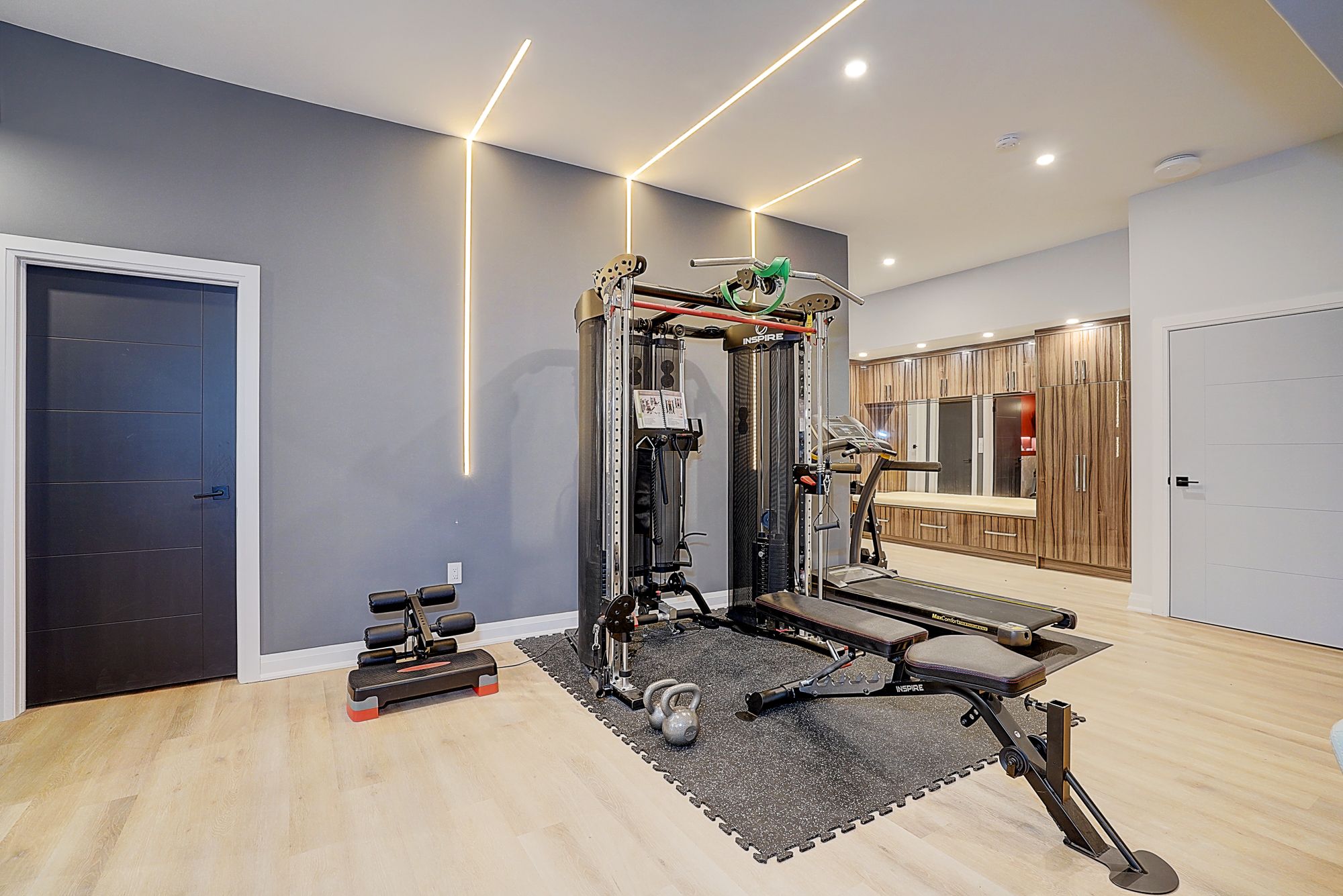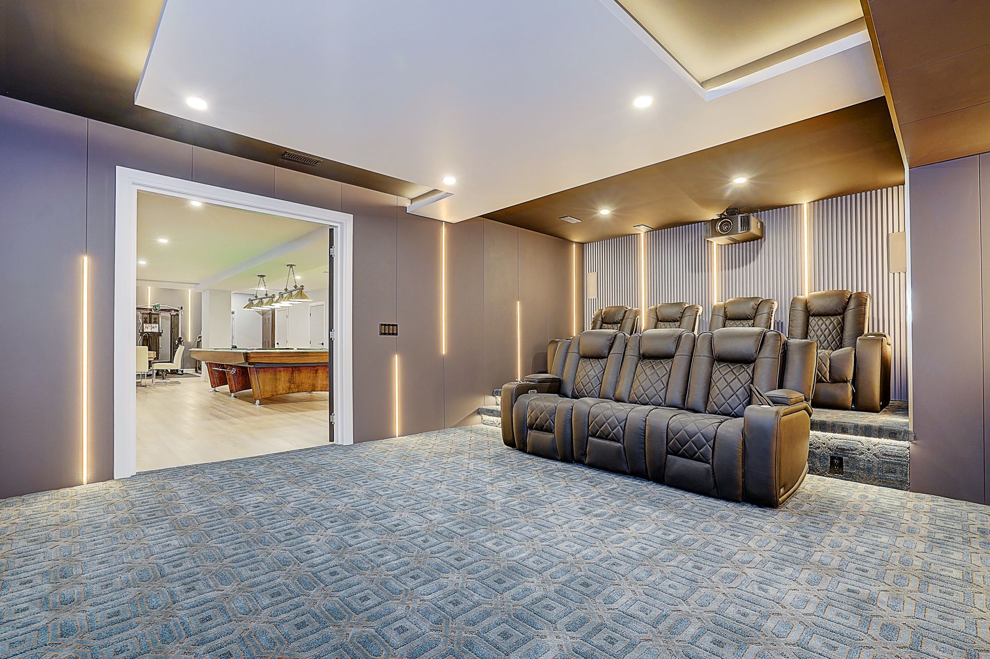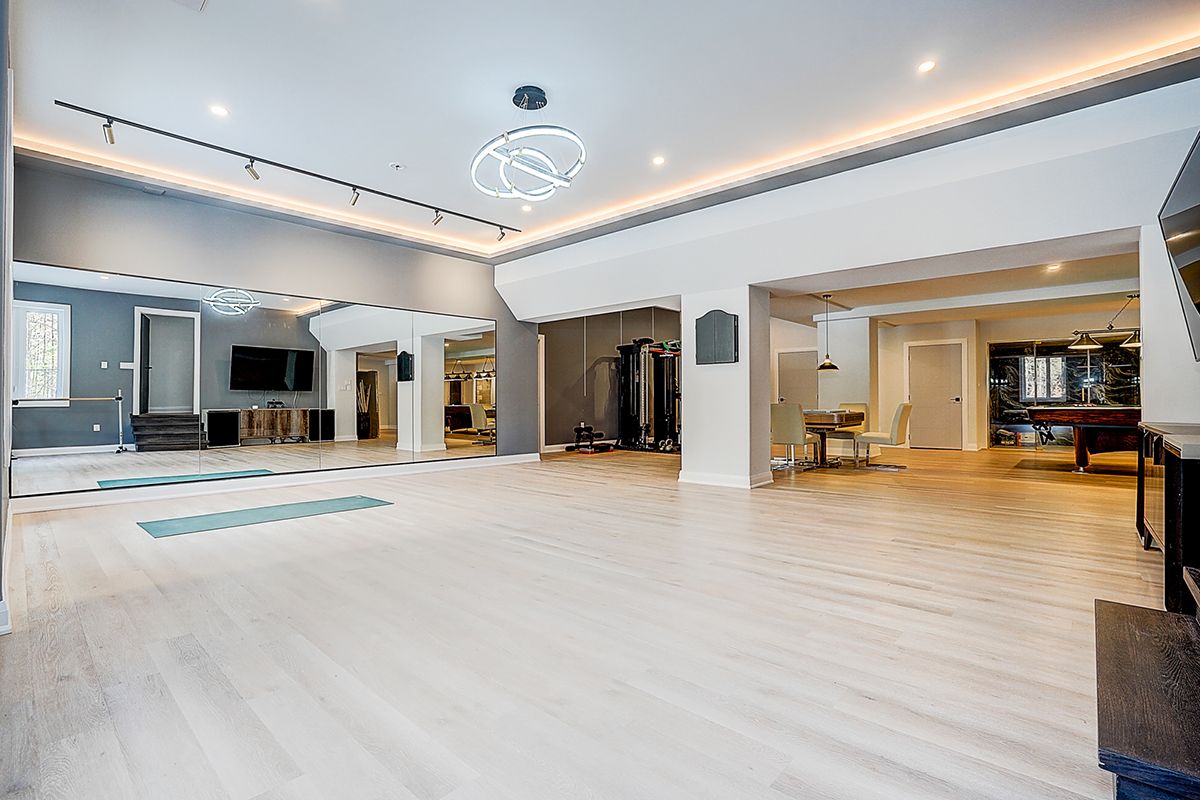 • Fully developed lower level with a dance studio, gym, and home theater.