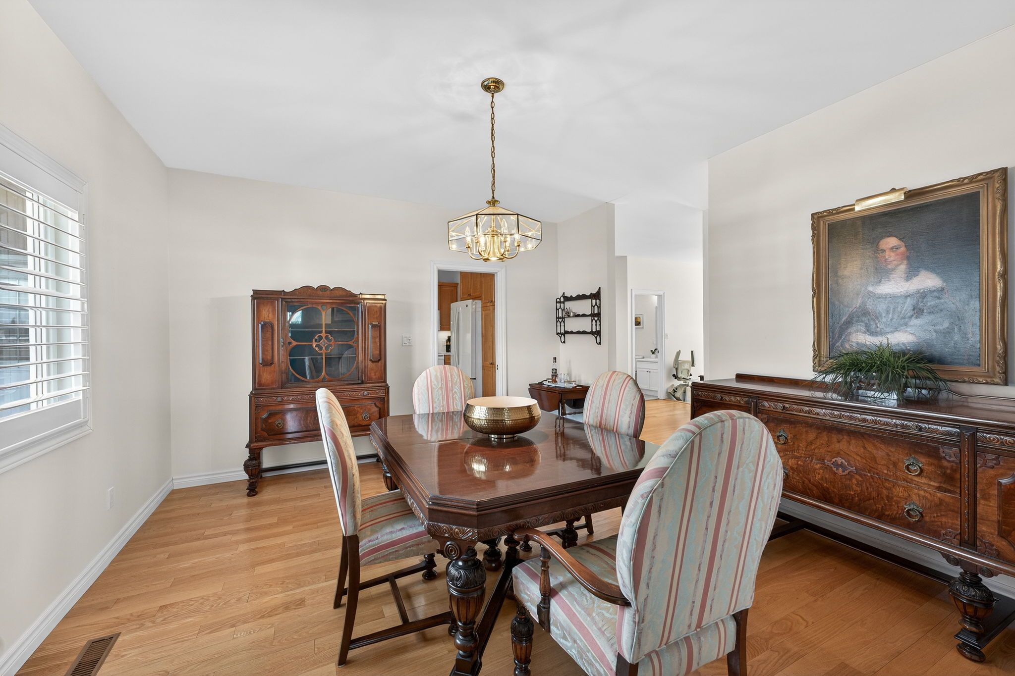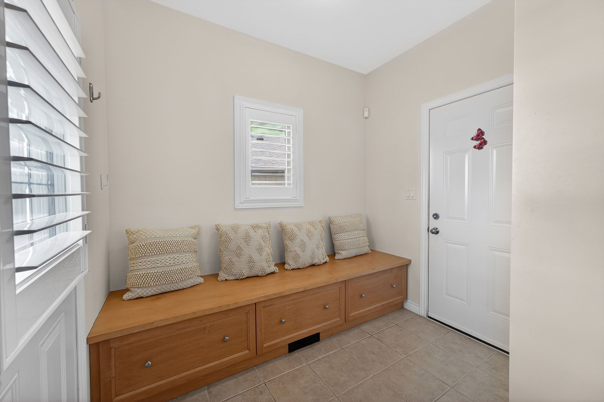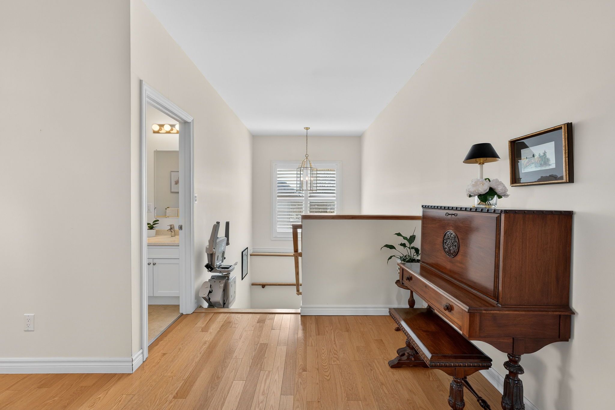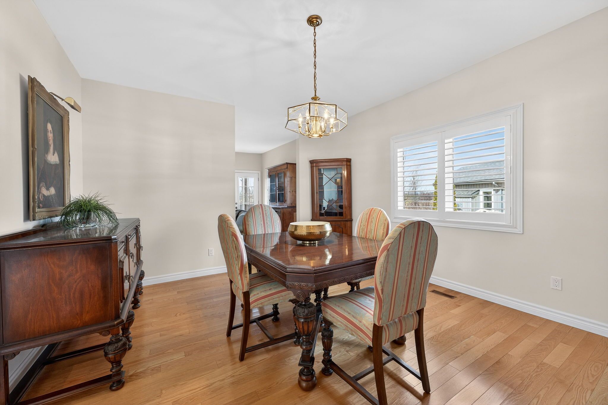 • Bright interior with hardwood floors and elegant California shutters.