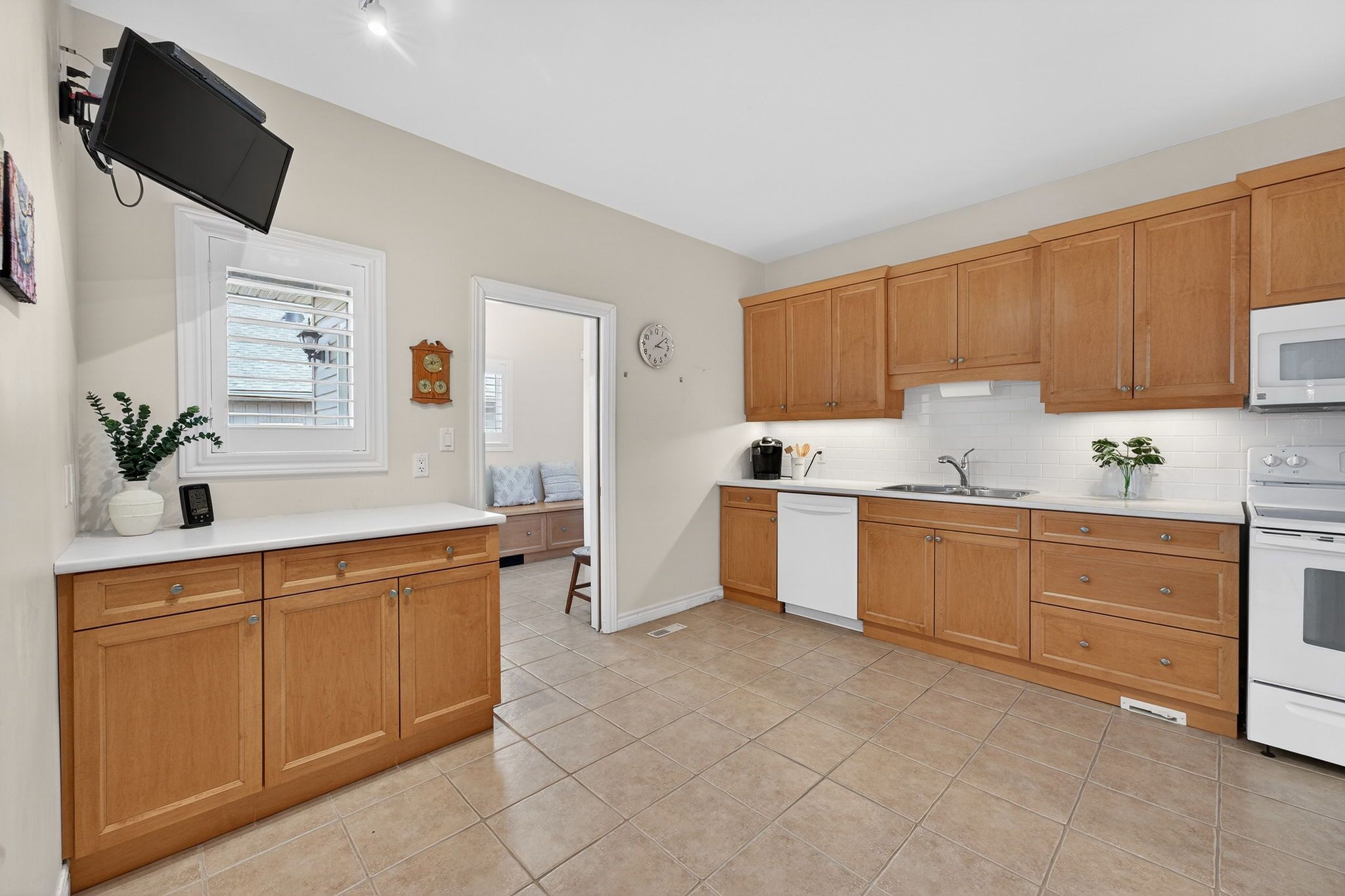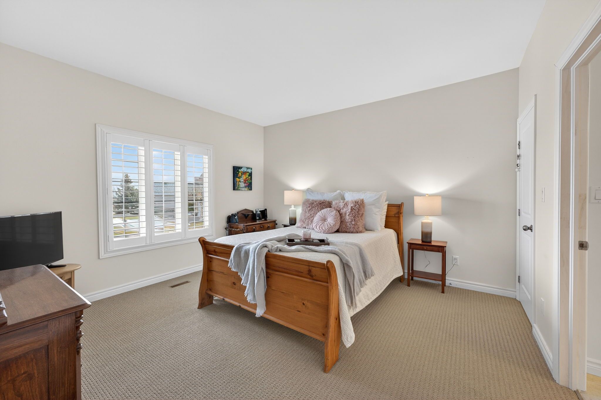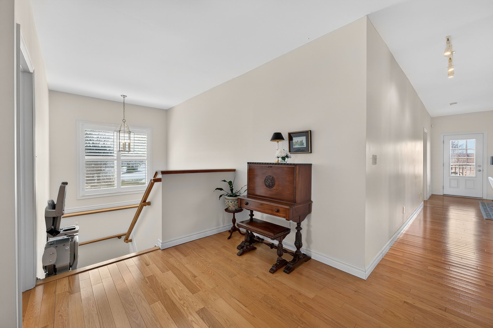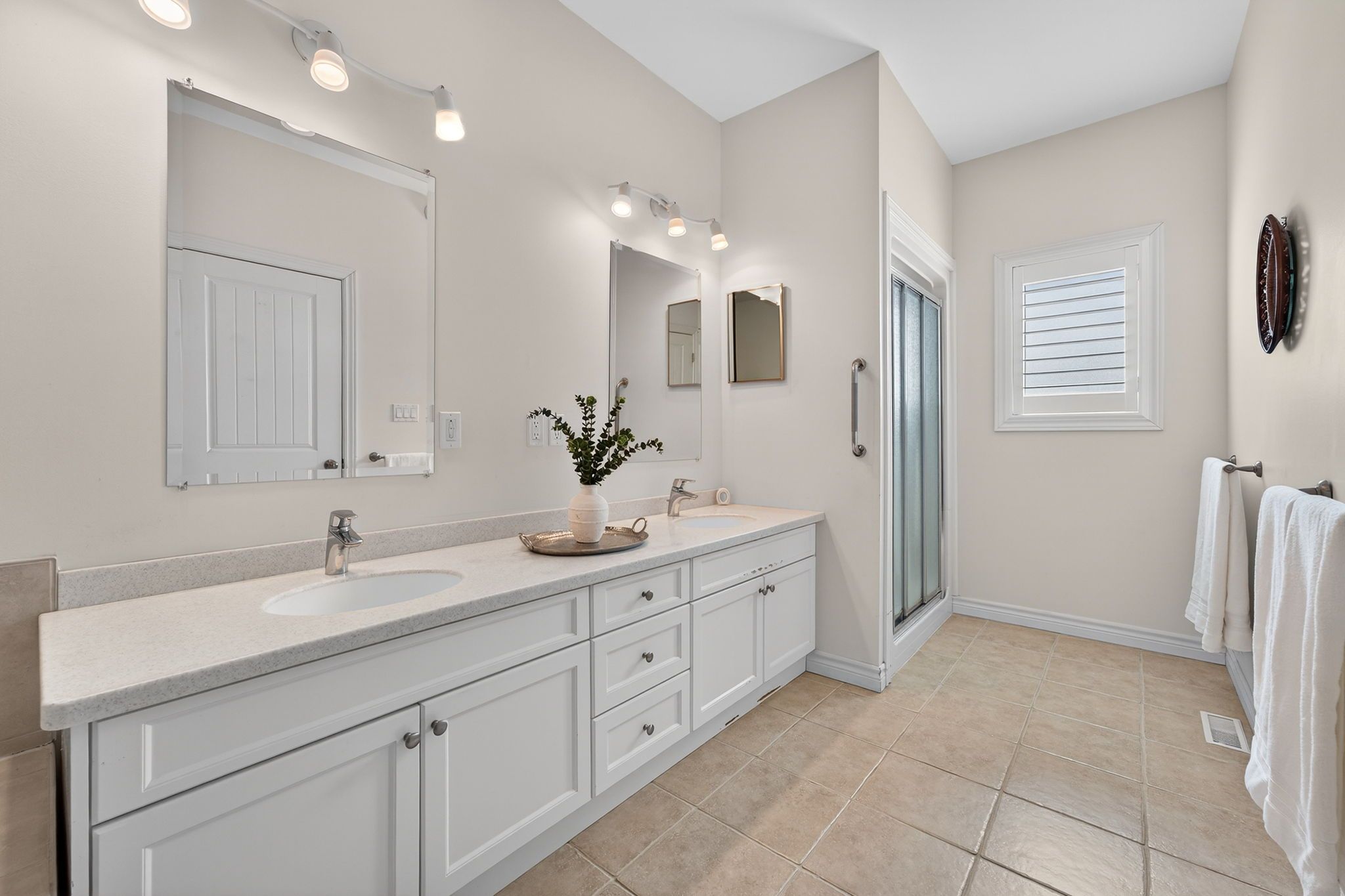 • Bright interior with hardwood floors and elegant California shutters.
