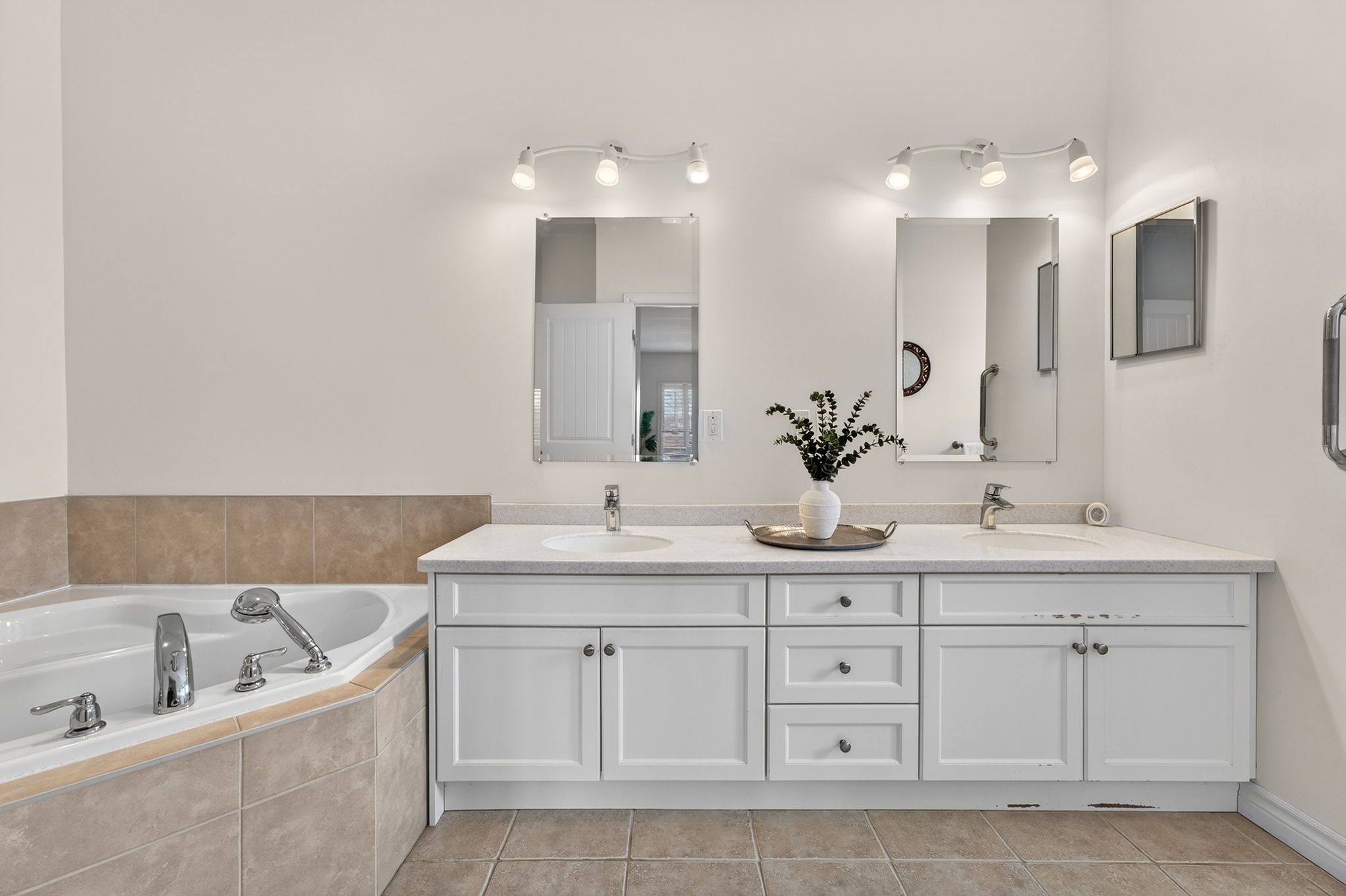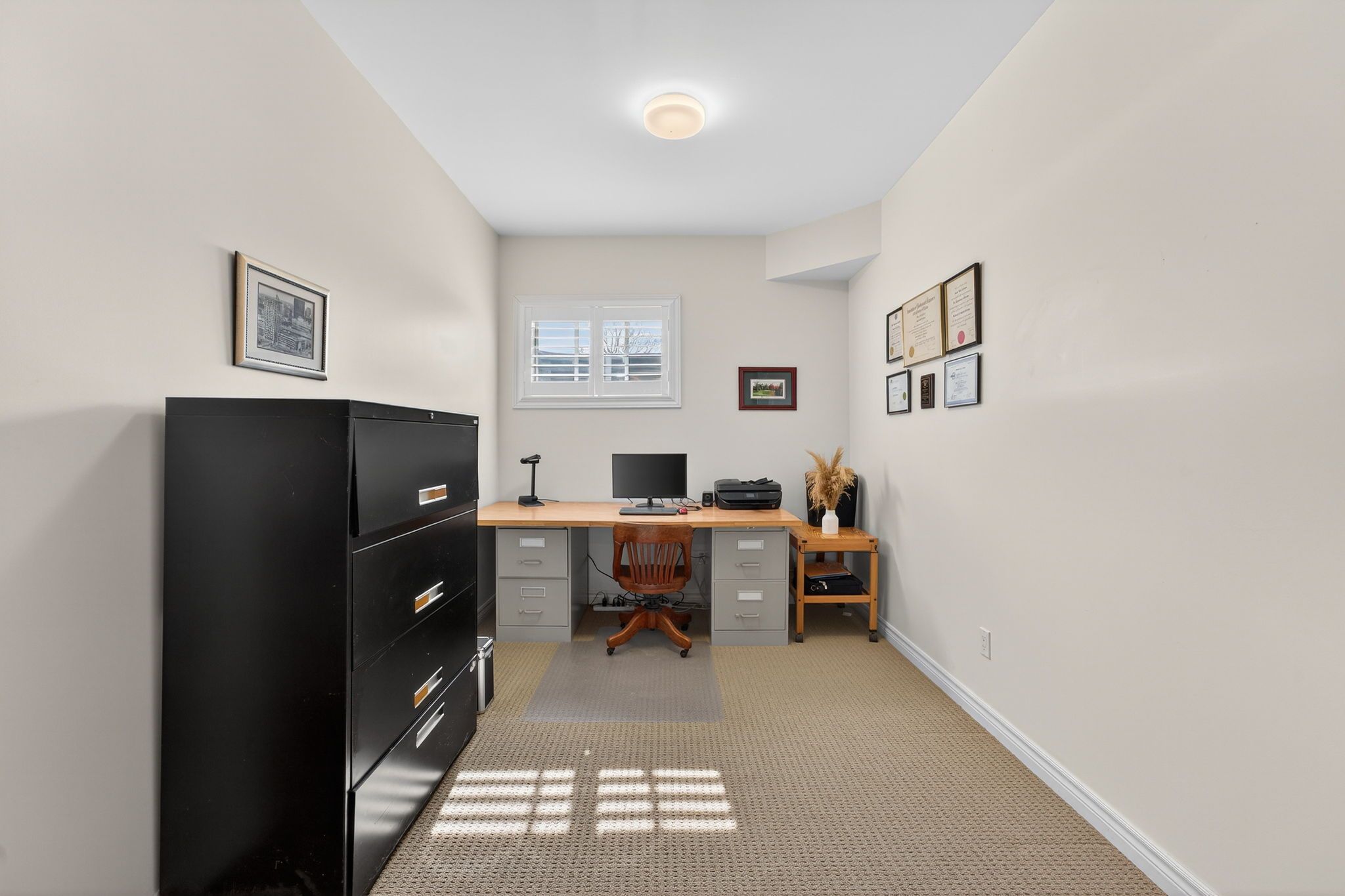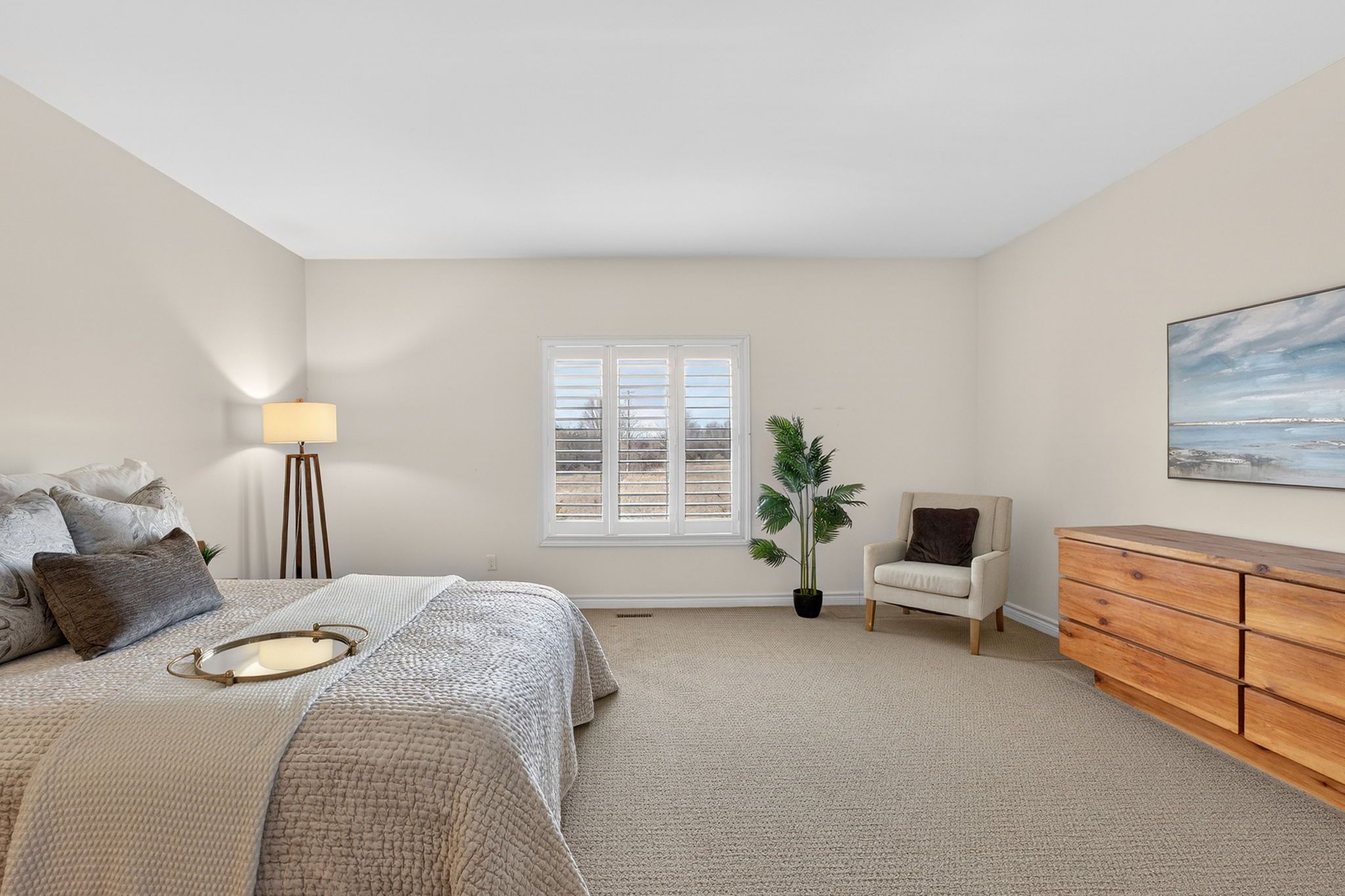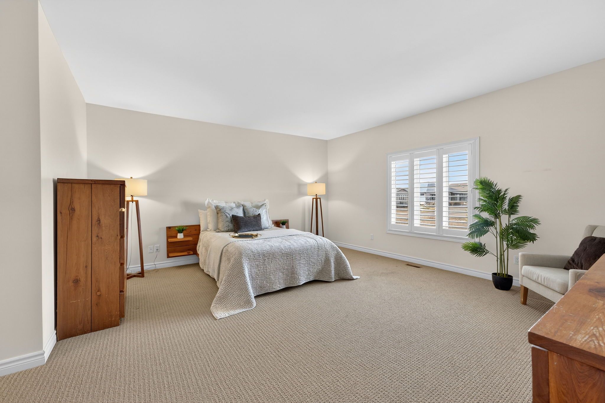 • Bright interior with hardwood floors and elegant California shutters.