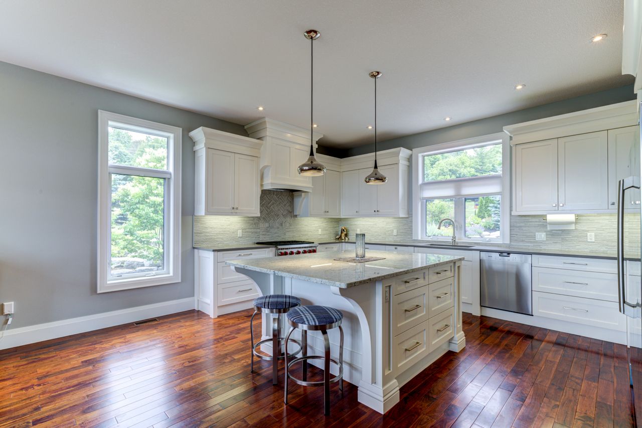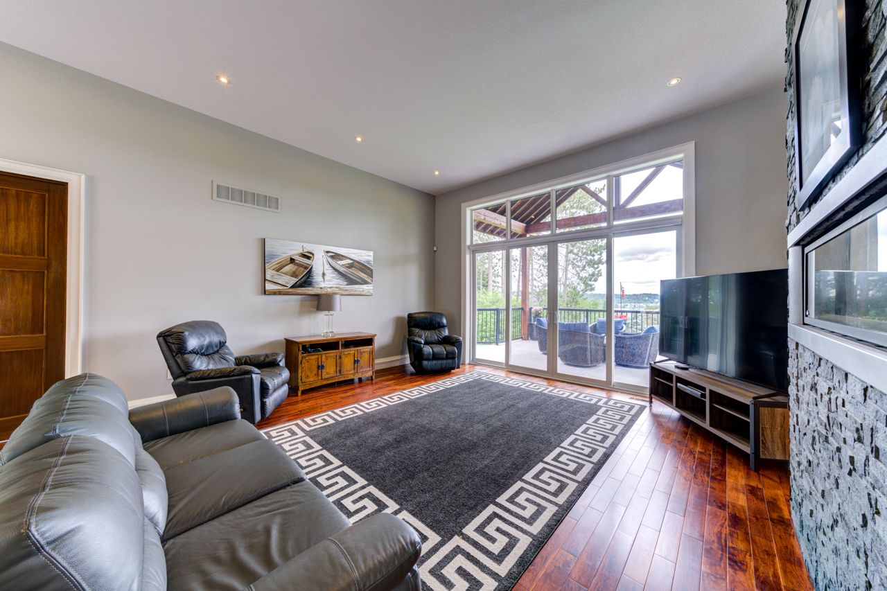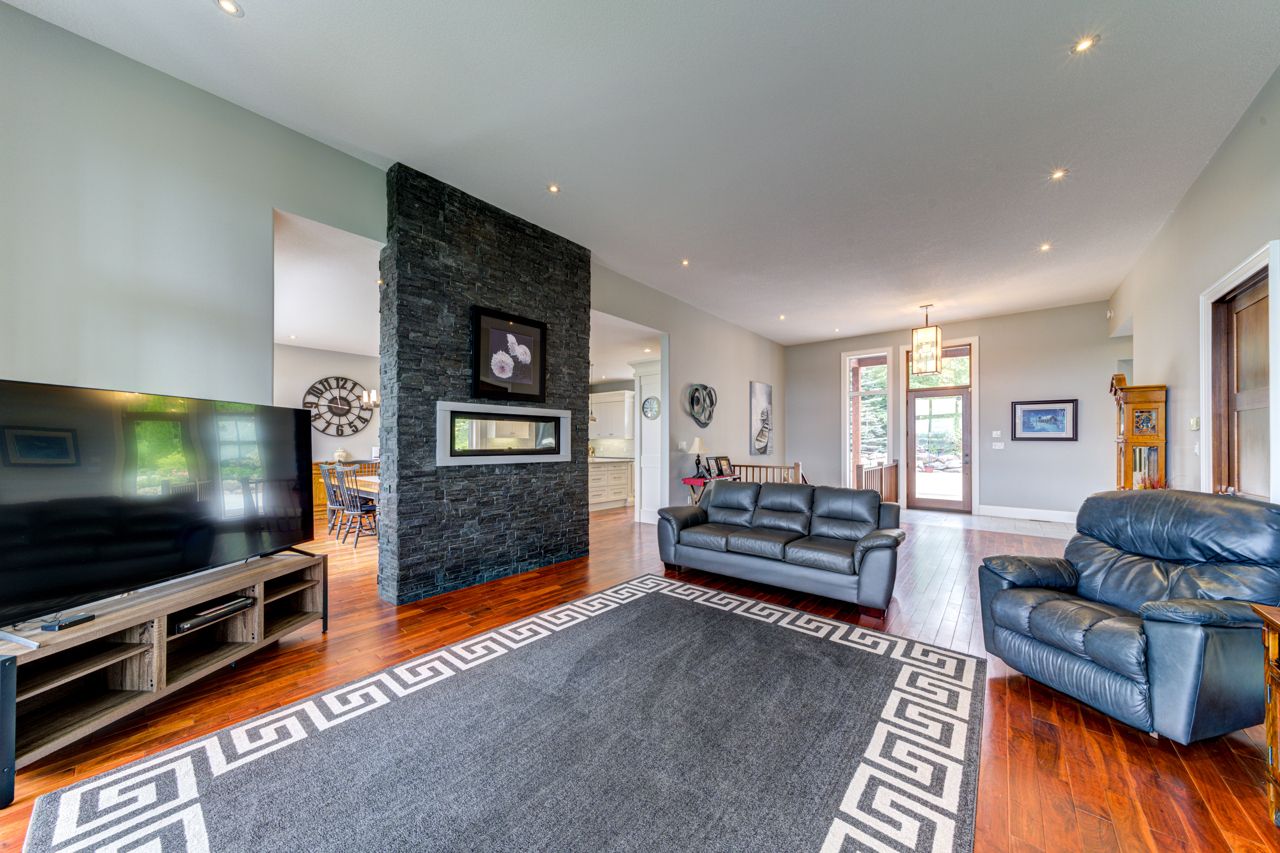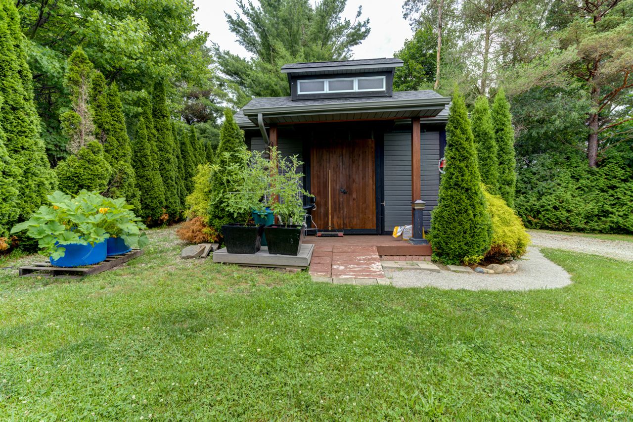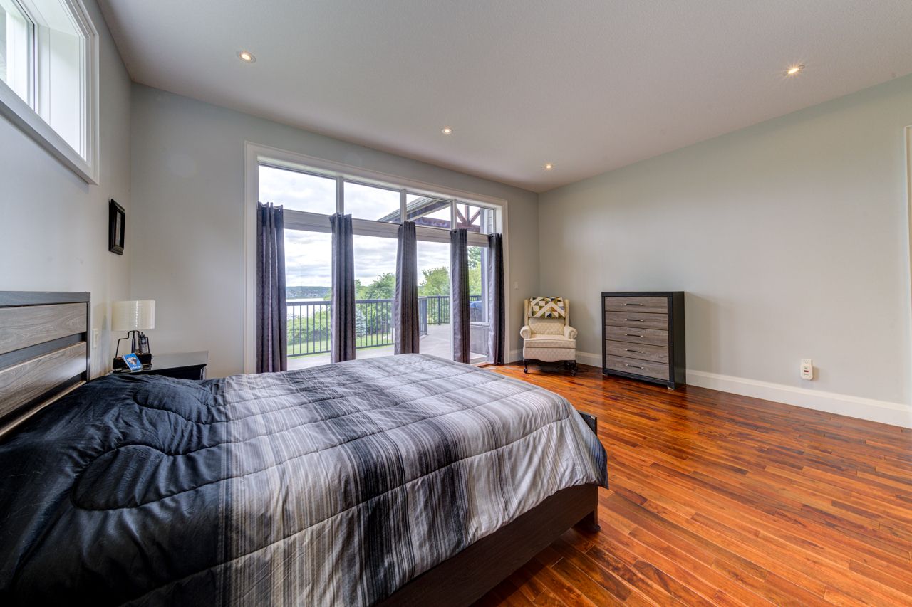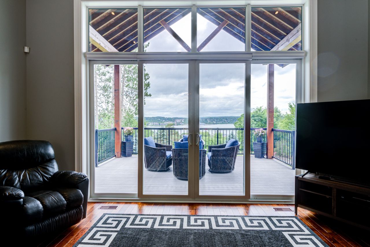 This stunning custom-built luxury home offers the ultimate in refined living with breathtaking views over the harbour in penetanguishene. Designed for comfort and style, the home features a gourmet island kitchen with high-end appliances, perfect for entertaining, and opens into the elegant living and dining areas where a double-sided stone fireplace creates a dramatic feature wall. Step out to the covered composite deck and take in the views surrounded by professionally landscaped grounds. Rich mahogany wood floors flow throughout the main level, which also includes a spacious laundry room with a built-in feature closet wall and interior access to the oversized, heated, and insulated attached garage. The lower level is equally impressive with two generously sized bedrooms, a walk-in closet, ample storage, and a large rec room with patio doors leading to a private patio area. Outdoors, enjoy a charming shed/playhouse with electricity, a large firepit gathering area, and beautifully designed gardens all perfectly positioned to capture the serene harbour views. For added peace of mind, the home also features a generac generator that automatically activates in the event of a power outage. A truly exceptional property that combines luxury, function, and unmatched setting.