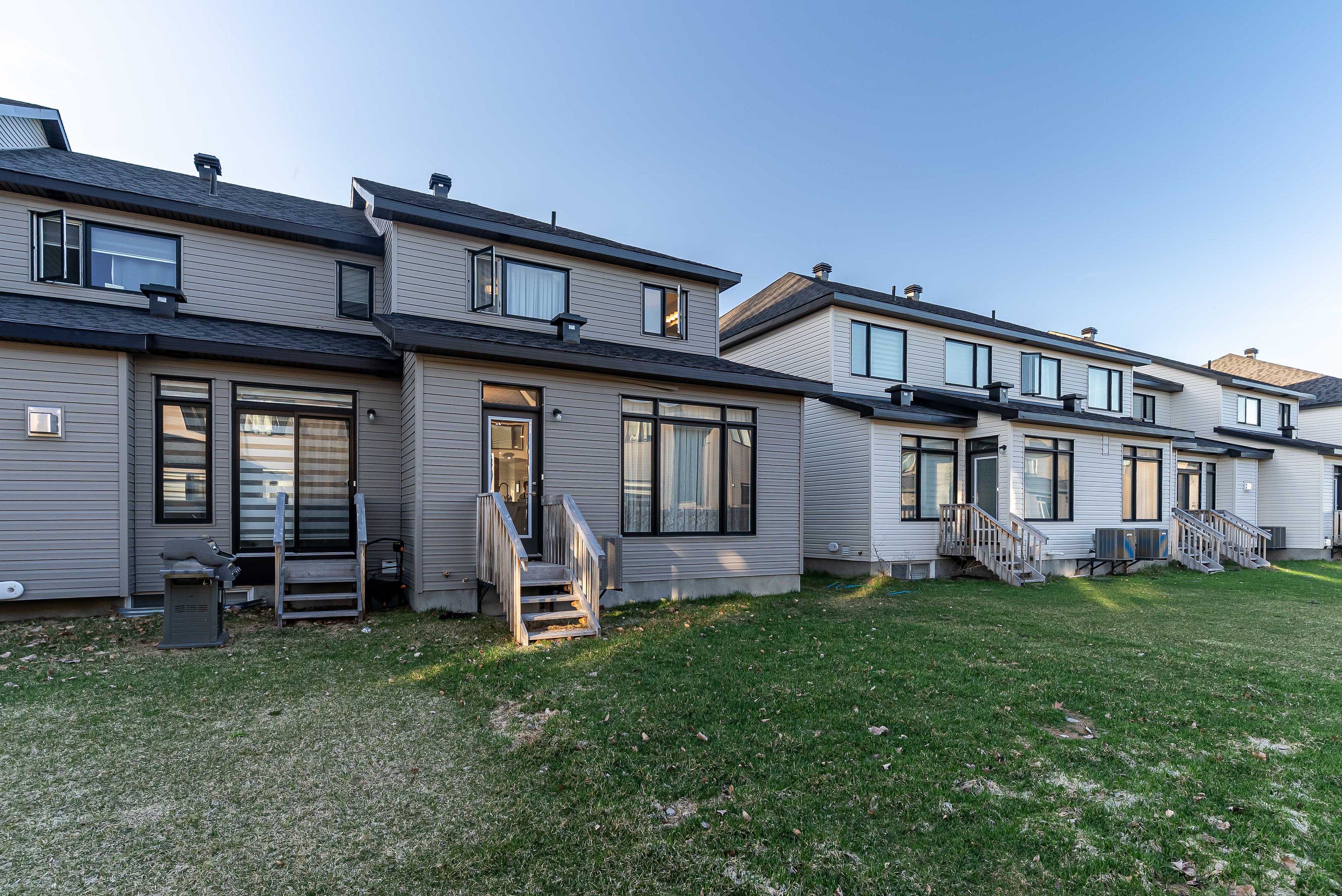 This modern gregoire end townhome offers the premium feel of a brand-new build with the benefit of immediate potential. As a claridge-built end-unit, this property features 3 spacious bedrooms and 3 bathrooms, characterized by an airy, open-concept layout that maximizes the extra natural light provided by its corner position. The gourmet kitchen serves as the home's centerpiece, boasting 3/4" quartz countertops, sleek 36" upper cabinetry with soft-close hardware, and stylish ceramic flooring. The second floor hosts a private primary retreat featuring a walk-in closet and a contemporary ensuite with a large glass-enclosed shower. Added versatility is found in the fully finished basement recreation room, anchored by a warm gas fireplace with an oak beam mantle. Ideally located with easy access to public transit, schools, shopping, and everyday amenities, this home checks all the boxes for comfort, style, and neighborhood convenience.
