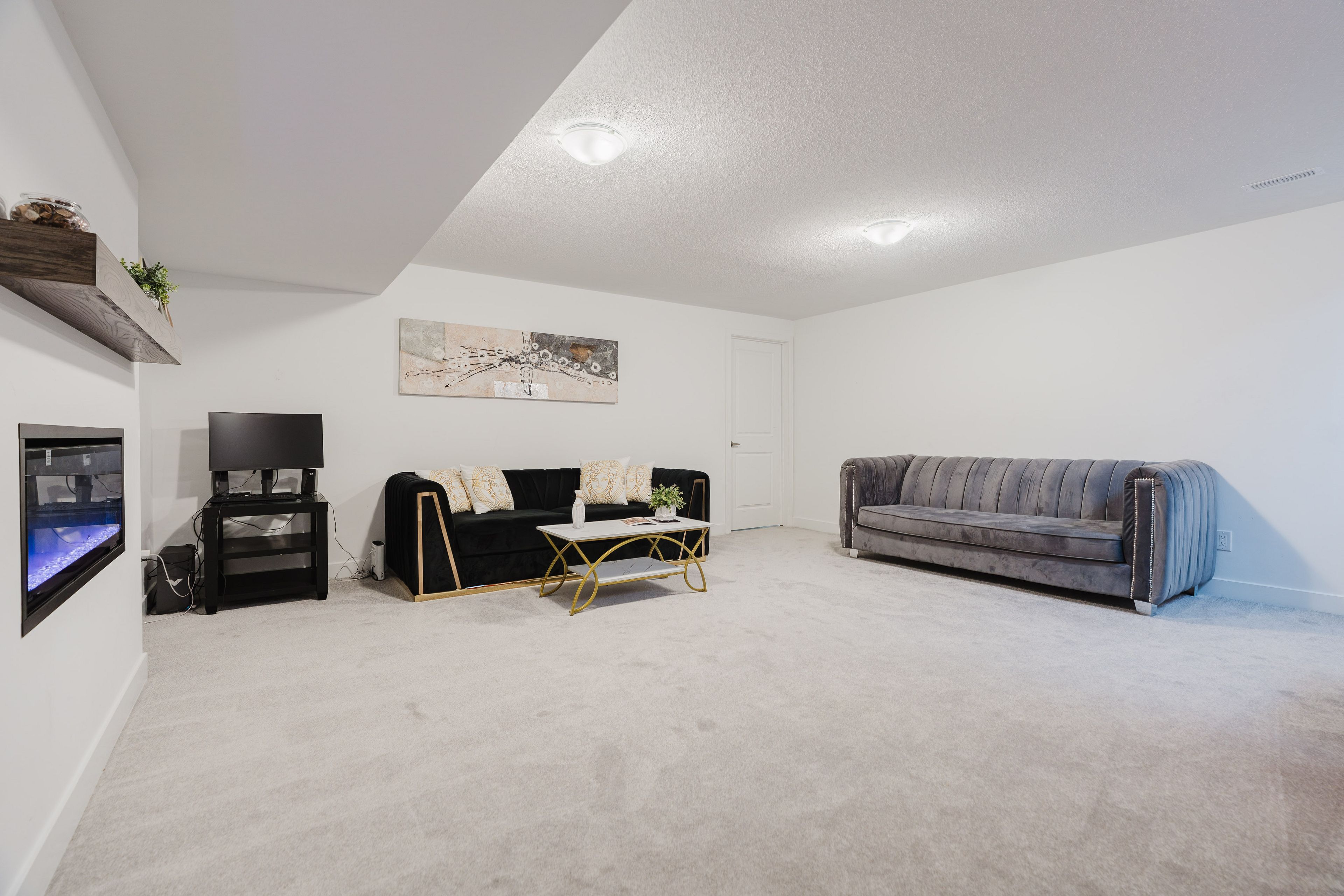 • Fully finished basement with a cozy gas fireplace.
