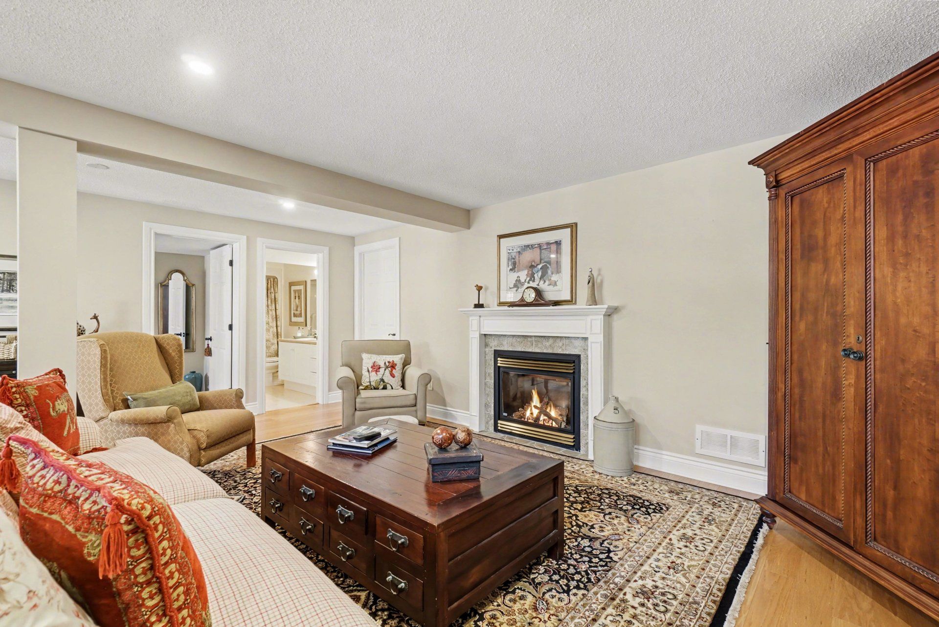 • Bright lower level with cozy gas fireplace and additional bedroom for guests.