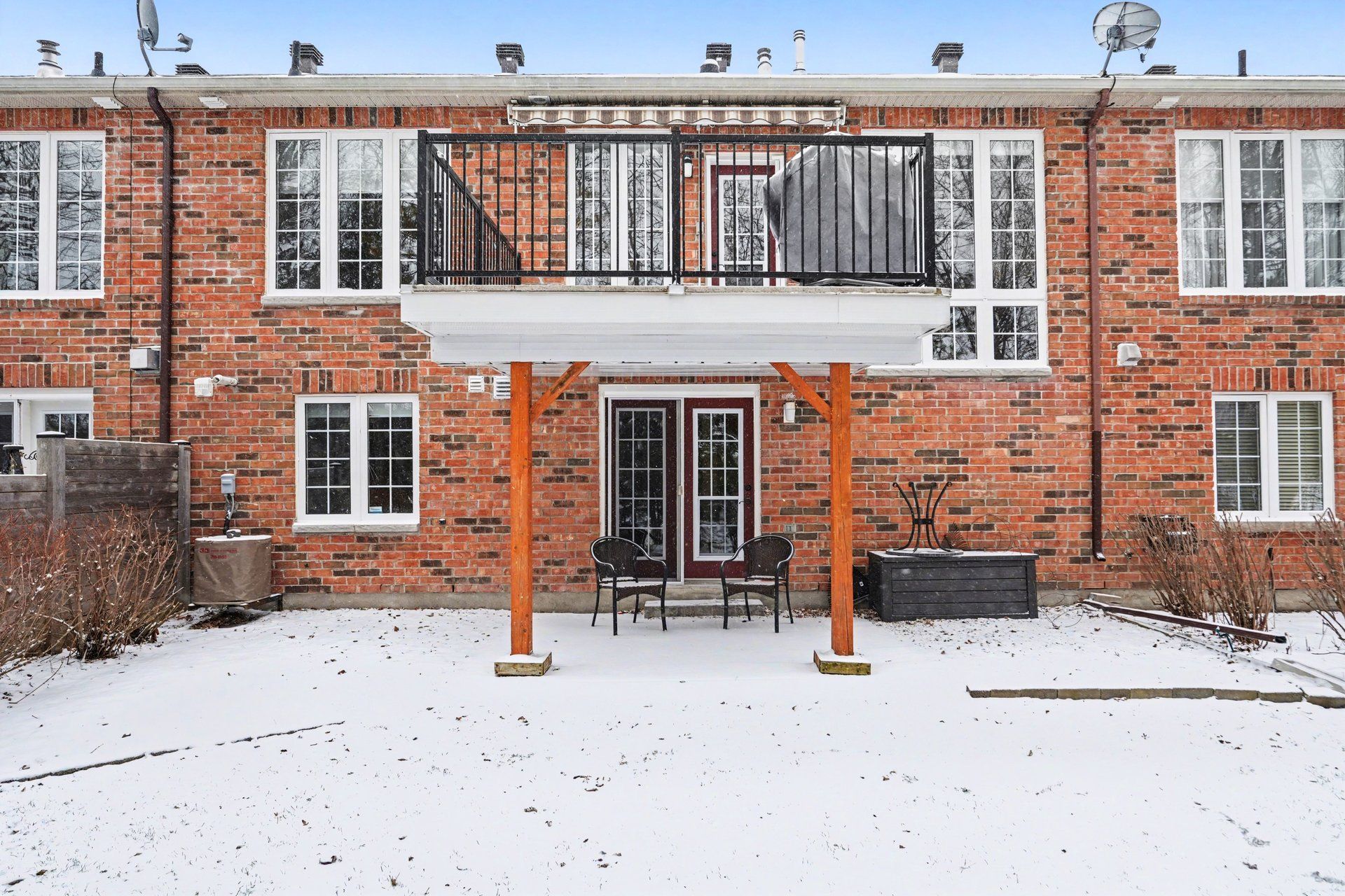 • Outdoor living space includes a deck with electric awning and private stone terrace.