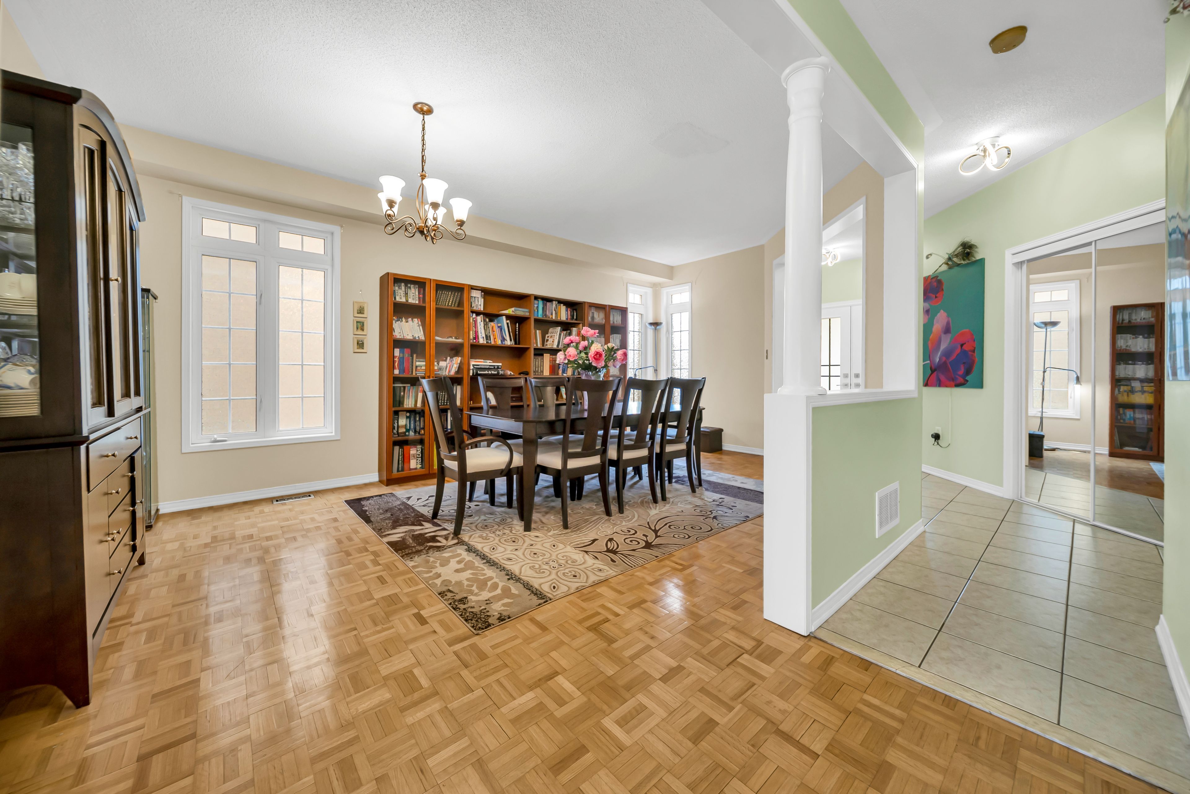 • Bright layout with family, living, and dining rooms for versatile living.
