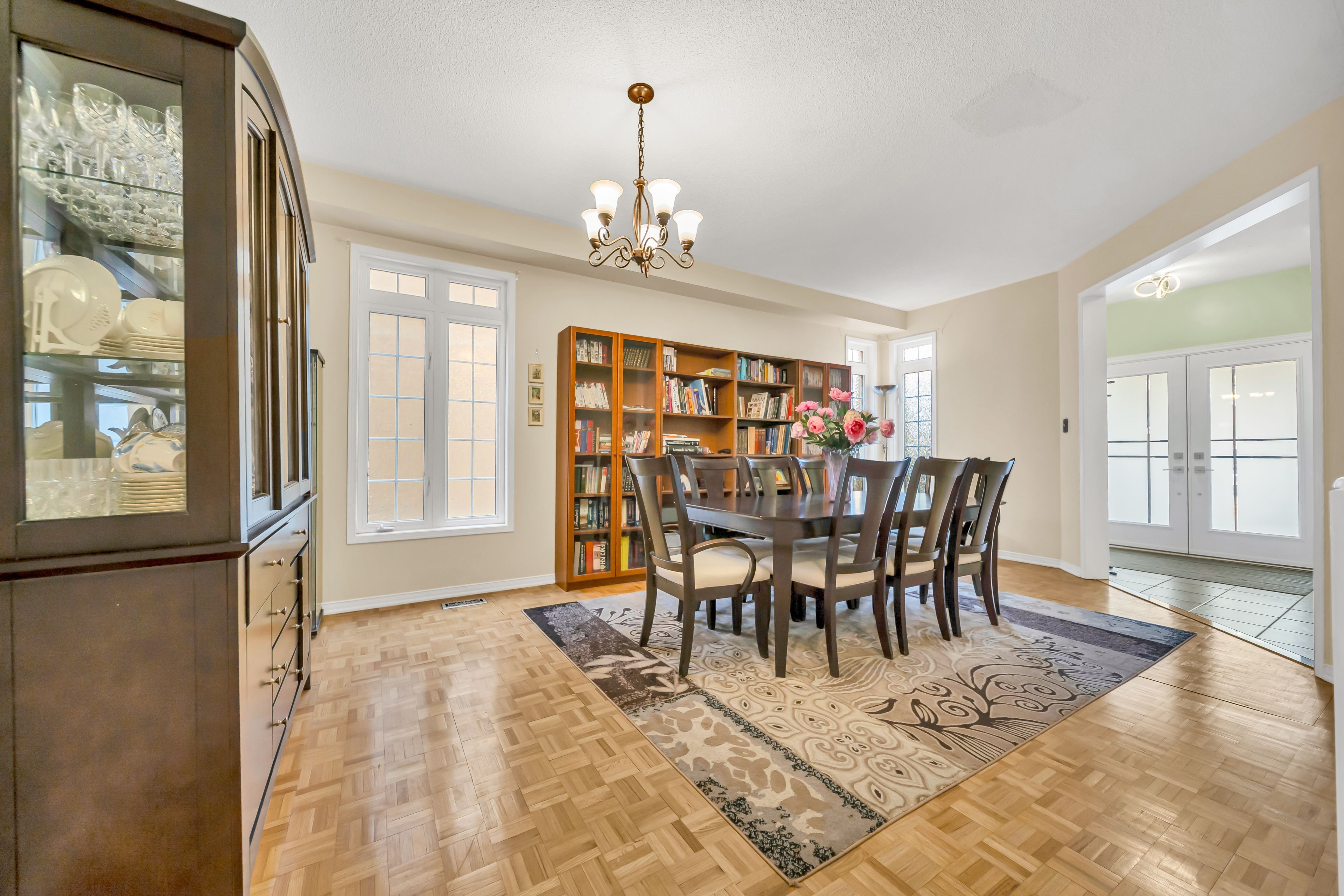 Welcome to 45 naughton drive, a beautifully maintained 2,338-square-foot residence offering the perfect blend of space, comfort, and functionality for the modern family. This bright and inviting home features five spacious bedrooms and a thoughtfully designed layout that includes separate family, living, and dining rooms, making it ideal for both daily life and elegant entertaining. Showcasing true pride of ownership, the property has been exceptionally well-cared for and is flooded with natural light through large windows that create a warm, welcoming atmosphere. The open-concept kitchen is both stylish and practical, featuring premium quartz countertops that provide extensive workspace and ample storage. The home includes three full bathrooms on the second floor and a convenient powder room on the main level. Notable exterior updates include brand-new garage doors and a generously sized driveway that easily accommodates four vehicles, a rare and highly coveted feature in this prestigious neighborhood. Perfectly situated in one of richmond hill's most sought-after areas, this home offers unparalleled convenience with rapid access to highways 404 and 407 for a seamless commute to toronto and the surrounding gta. Residents will enjoy close proximity to premier recreation at richmond green sports centre and park, as well as access to top-rated schools within the york region district school board. With seneca college, york university, high-end shopping, and essential amenities all just minutes away, this property represents an incredible opportunity to live in a thriving, well-connected community.