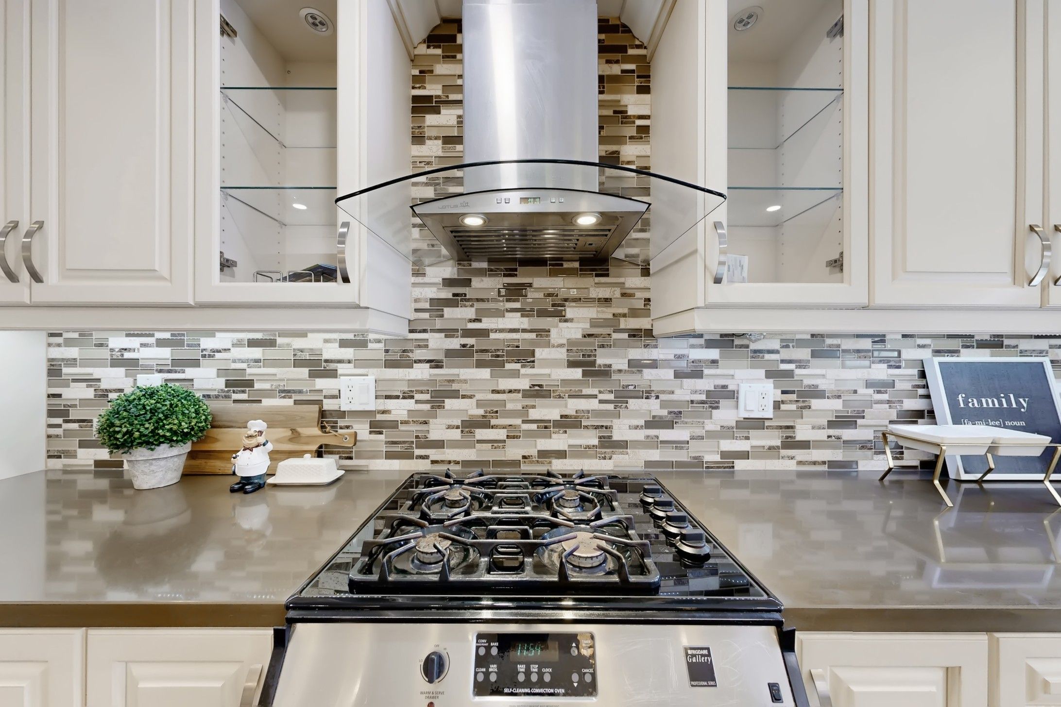 • Modern kitchen equipped with stainless steel appliances and granite countertops.