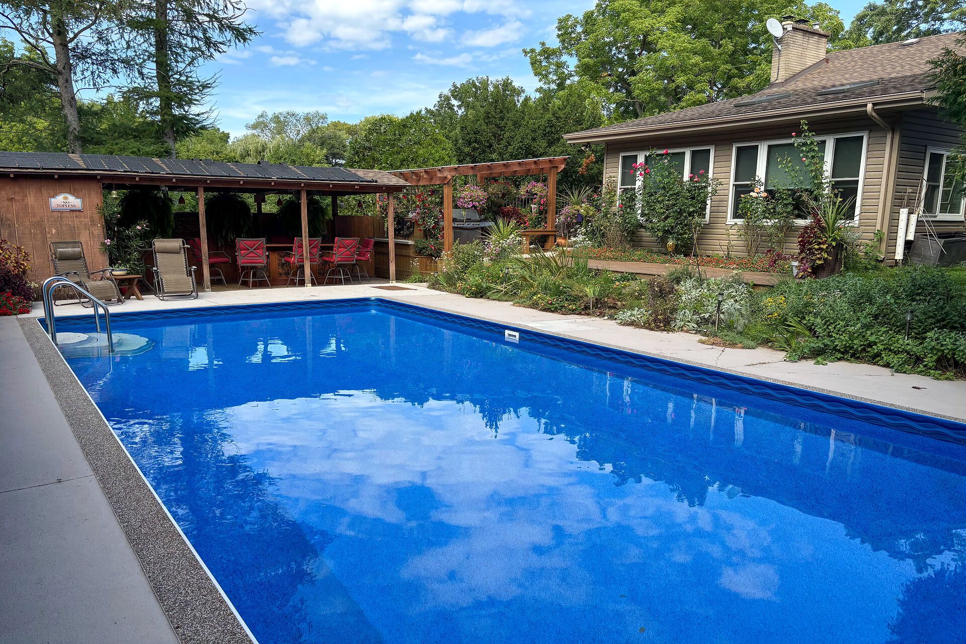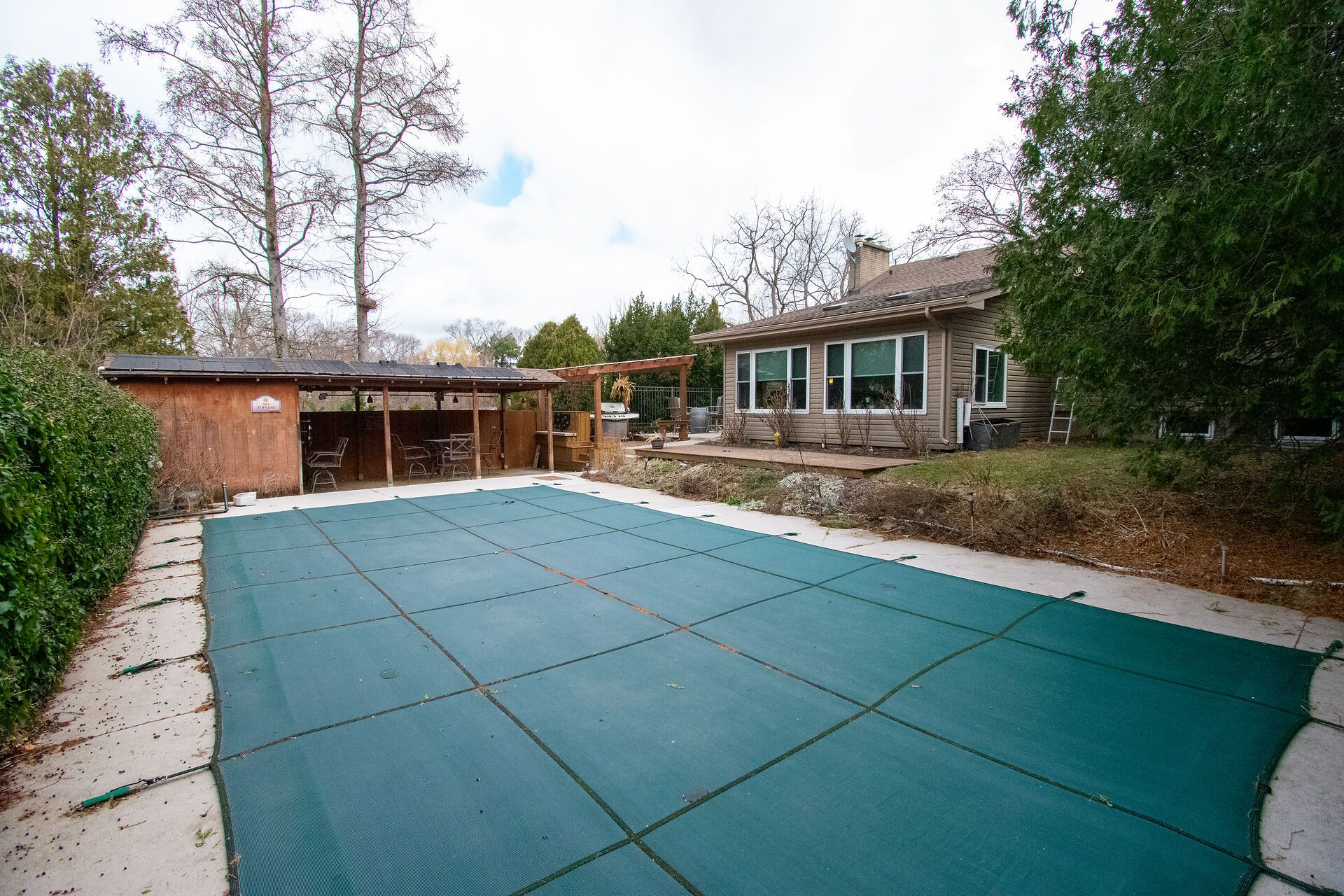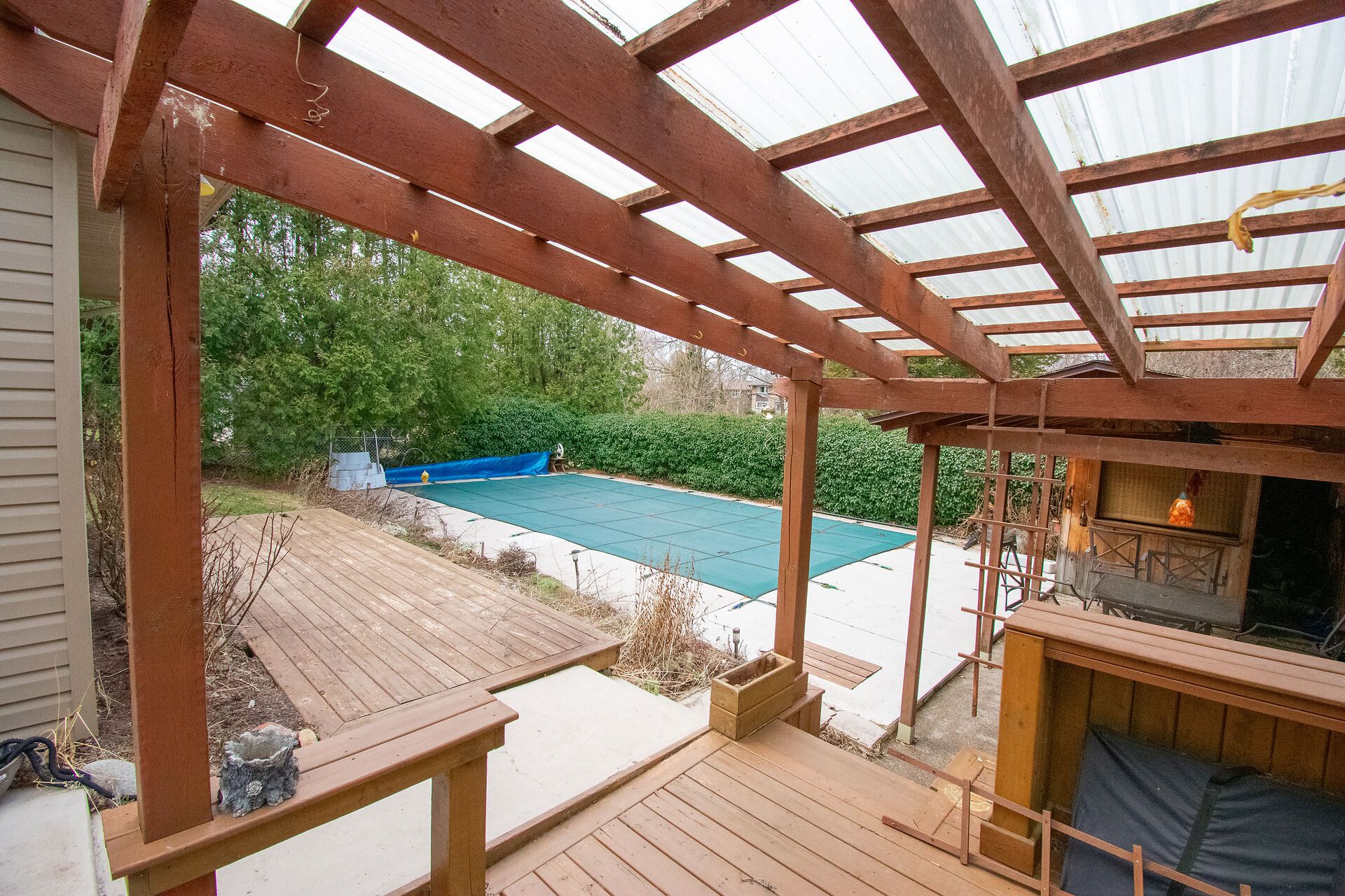 "stunning northend st. Catharines bungalow with 3+1 bedroom, 2 full bath, in-law potential, carport (easily converted to garage) fence back yard with inground solar heated pool & patio, no rear neighbours and & large open green space to the eastside, beautiful updated open concept kitchen/dining rm overlooking large family room with gas fireplace & mostly finished basement & approx 2000 sq ft of living area, is a must see" welcome to 45 nickerson drive, st. Catharines, as you approach you notice the immediate curb appeal with large aggregate double drive & carport & beautifully landscaped. Enter inside and you are met with a spacious dining room & stunning updated custom kitchen with vaulted ceilings, pot lighting and loads of cabinet & granite counter space with large island & b/i appliances great for entertaining. Off the kitchen, you overlook a well appointed generous sized family room with skylights, gas fireplace overlooking the oasis backyard in summer. Off the living room you head down the hallway and notice 3 good sized bedrooms & 3pc bath. After completing the main level go to the mud room (rough-in for laundry behind cabinets) to go downstairs and you have another updated 3 pc bath, bedroom & large recroom area, laundry & workshop & storage areas which could easily house an in-law set up. Outside you have a very private oasis back yard with inground (solar heated pool with patio & deck area and no rear neighbours. This home offers so much potential and won't disappoint. Note - (furnace & central air -2017, roof -2015, pool liner-2021, pump & lines 2023, kitchen 2016, addition updated 2019)