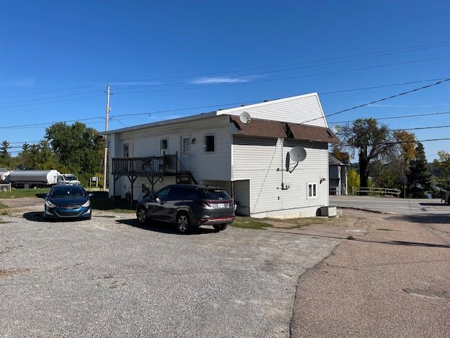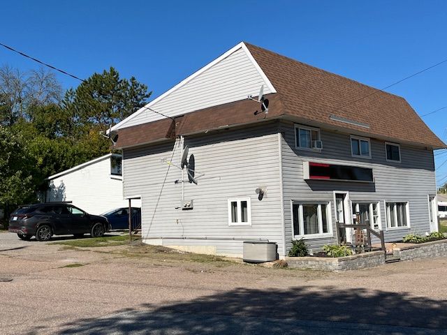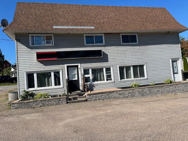 Rarely available up and down 2 unit building. Main floor unit has natural gas fireplace and bb electric heat and upper unit has 2024 forced air natural gas furnace. Each unit has there own access, their own laundry hookups. Each unit has 1 full bathroom. Slanted roof installed 8-10 yrs ago, 100 amp panel in each unit. Both hot water tanks are owned. Tenants pay hydro & heat. Units have town water and sewer. Plenty of parking area. 2024 expenses of $8,886 (taxes $3061, water/sewer $5125, insurance $700). Walk to tim hortons, subway and other fine shops.