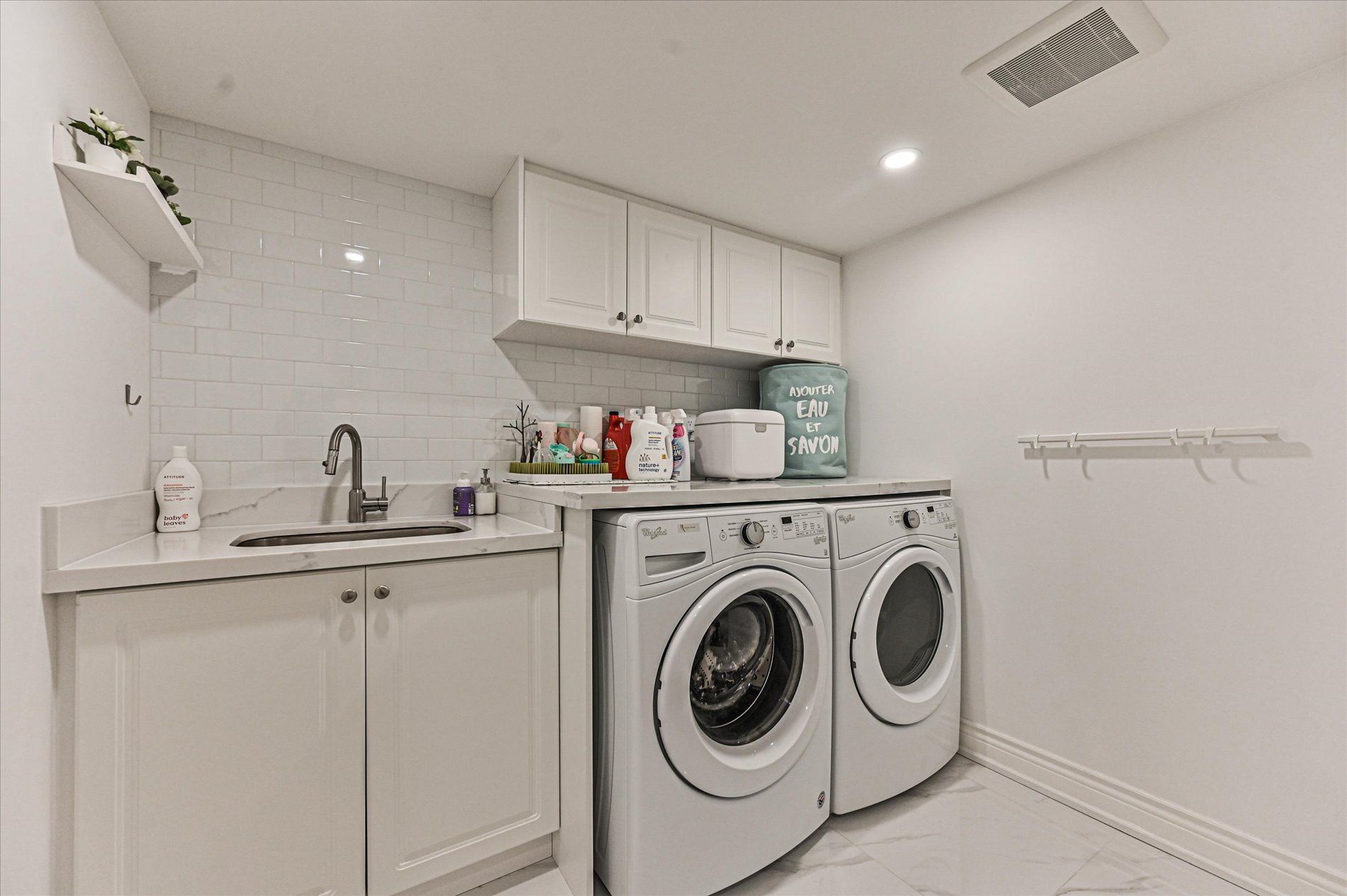 • Spacious kitchen with quartz countertop and stainless-steel appliances.