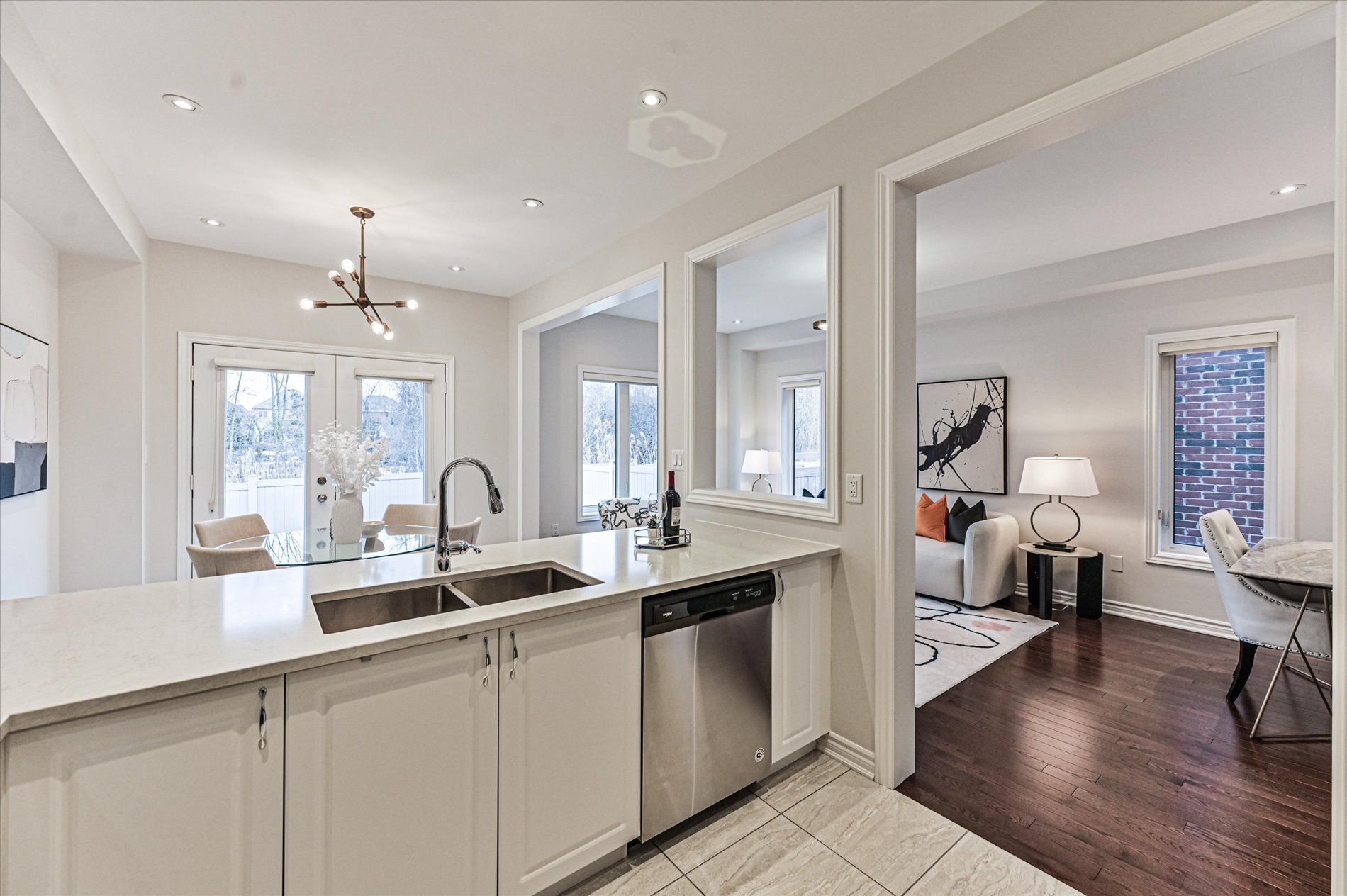 Welcome to 45 portage ave, a beautiful semi-detached home nestled in the highly sought-after oak ridges community. Featuring fresh paint, brand-new light fixtures, hardwood flooring throughout, and 9' ceilings on the main floor, this home perfectly blends style and comfort. Enjoy enhanced curb appeal with an interlock driveway and backyard. Step into a bright, open-concept living and dining area - ideal for entertaining family and friends. The modern kitchen is equipped with a full set of stainless-steel appliances, an oversized quartz countertop that doubles as a breakfast bar, and ample cabinetry for storage. It seamlessly connects to a sun-filled breakfast area with a walk-out to a south-facing backyard backing onto a tranquil ravine, offering both privacy and scenic views. The second floor features four spacious bedrooms and three bathrooms, each with large windows and generous closet space. The primary suite boasts a 9' ceiling, a walk-in closet, and a luxurious 5-piece spa-like ensuite. The third bedroom includes its own 4-piece ensuite for added convenience and privacy, while the second and fourth bedrooms share a well-appointed 4-piece bathroom. The finished basement extends the living space with a large recreation room, pot lights, laminate flooring, above-grade windows, and a dedicated laundry area - perfect for both relaxation and functionality. Conveniently located close to top-rated schools, parks, trails, golf courses, restaurants, grocery stores, and the oak ridges community centre. Just minutes to gormley go station, highway 404, and highway 400 for easy commuting.