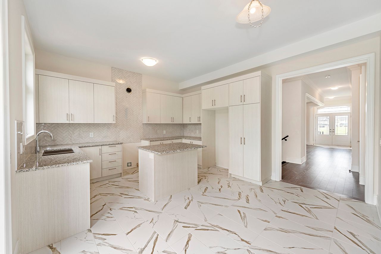 • Modern kitchen featuring quartz countertops and upgraded backsplash.