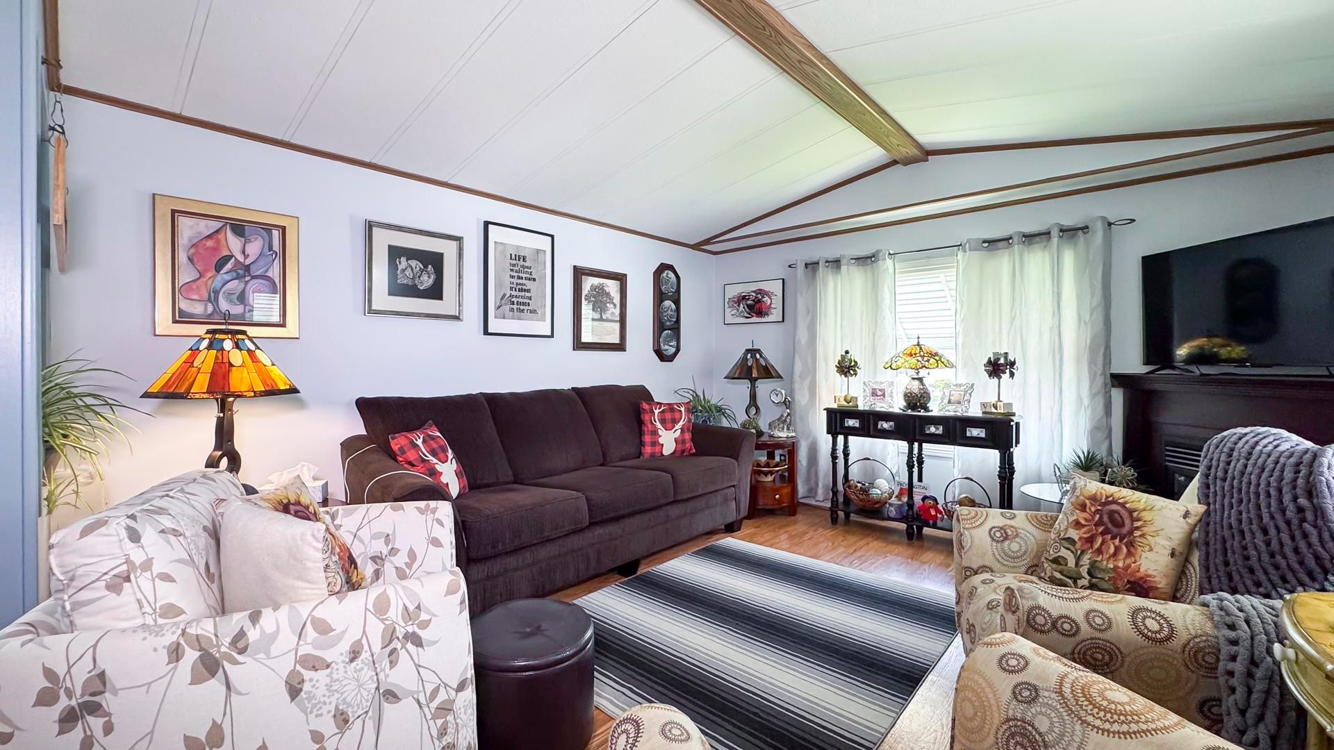 Welcome to your next chapter in the sought-after riverview estates, a welcoming community where lifestyle and comfort go hand in hand! Step inside to discover a bright and cheerful layout. The gas fireplace adds cozy warmth to the living area, while the primary bedroom features double closets for ample storage. The enclosed porch with removable panels offers the ideal spot to enjoy your morning coffee or unwind in the evening rain or shine! Residents of riverview estates enjoy access to a vibrant community hub that includes a recreational hall with kitchen, pool table, shuffleboard, darts and a fitness room. Located in a town with everything you need hospital, healthcare services, restaurants, golf, shopping, and more this is carefree living done right. Don't miss your chance to own this delightful home in a fantastic community. Book your private showing today!