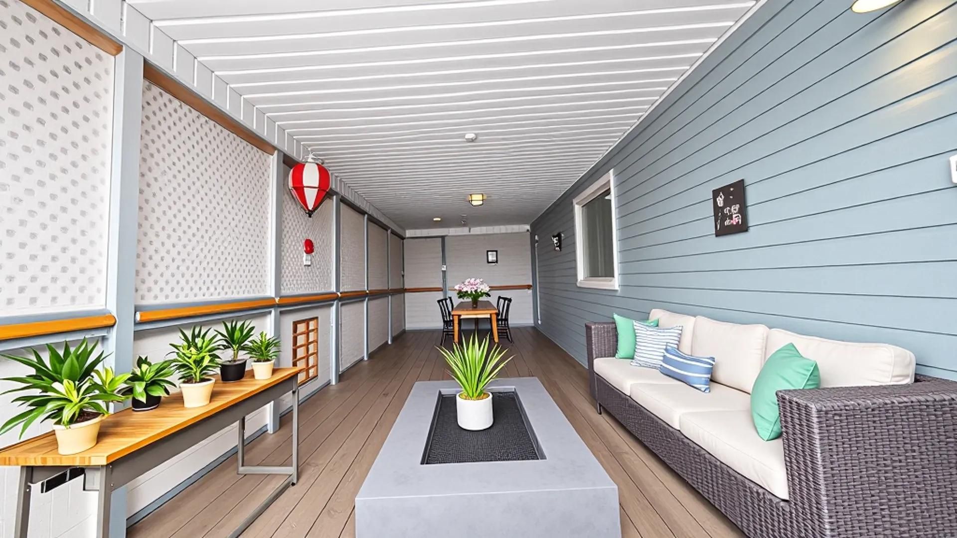 • Enclosed porch with removable panels for year-round enjoyment.