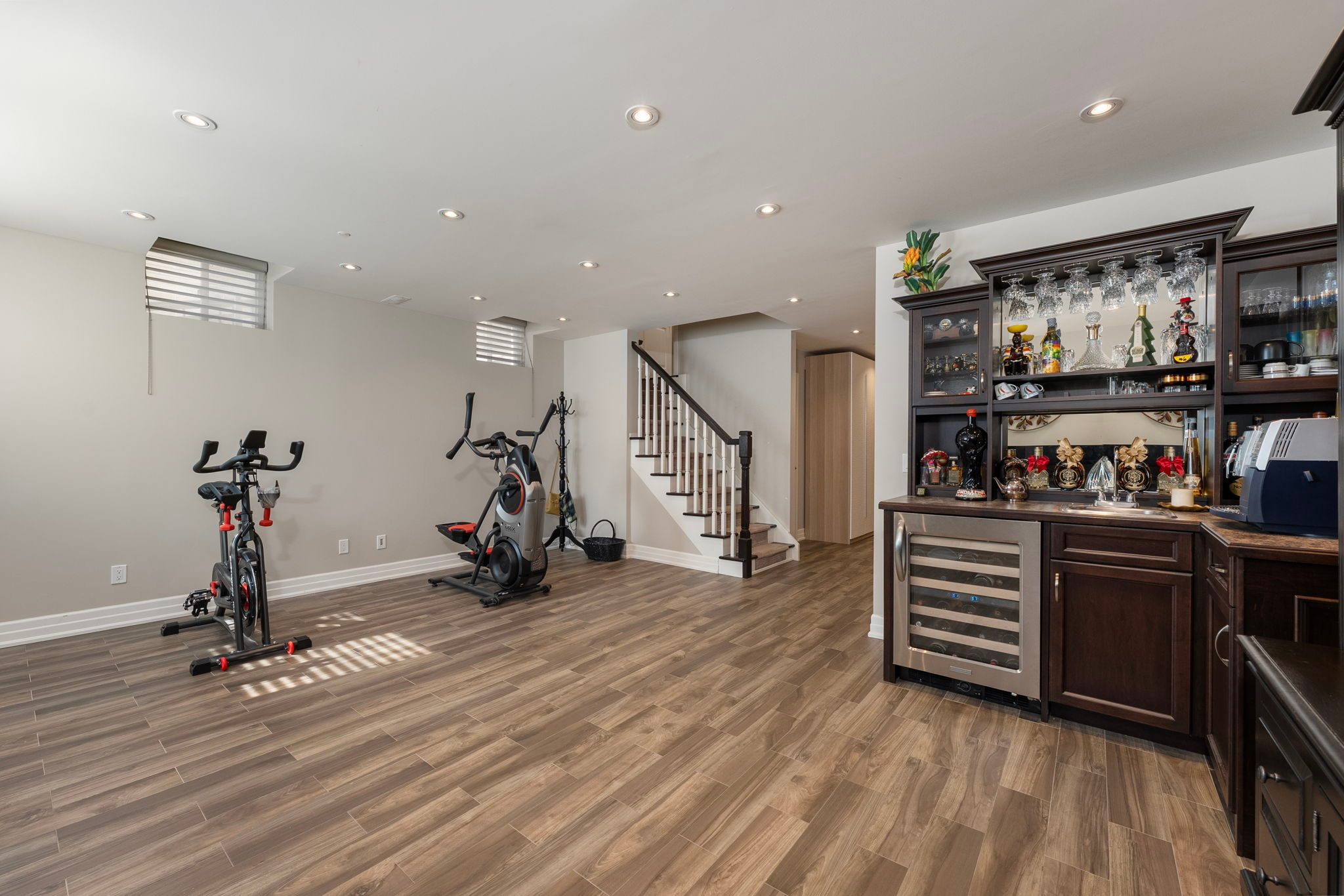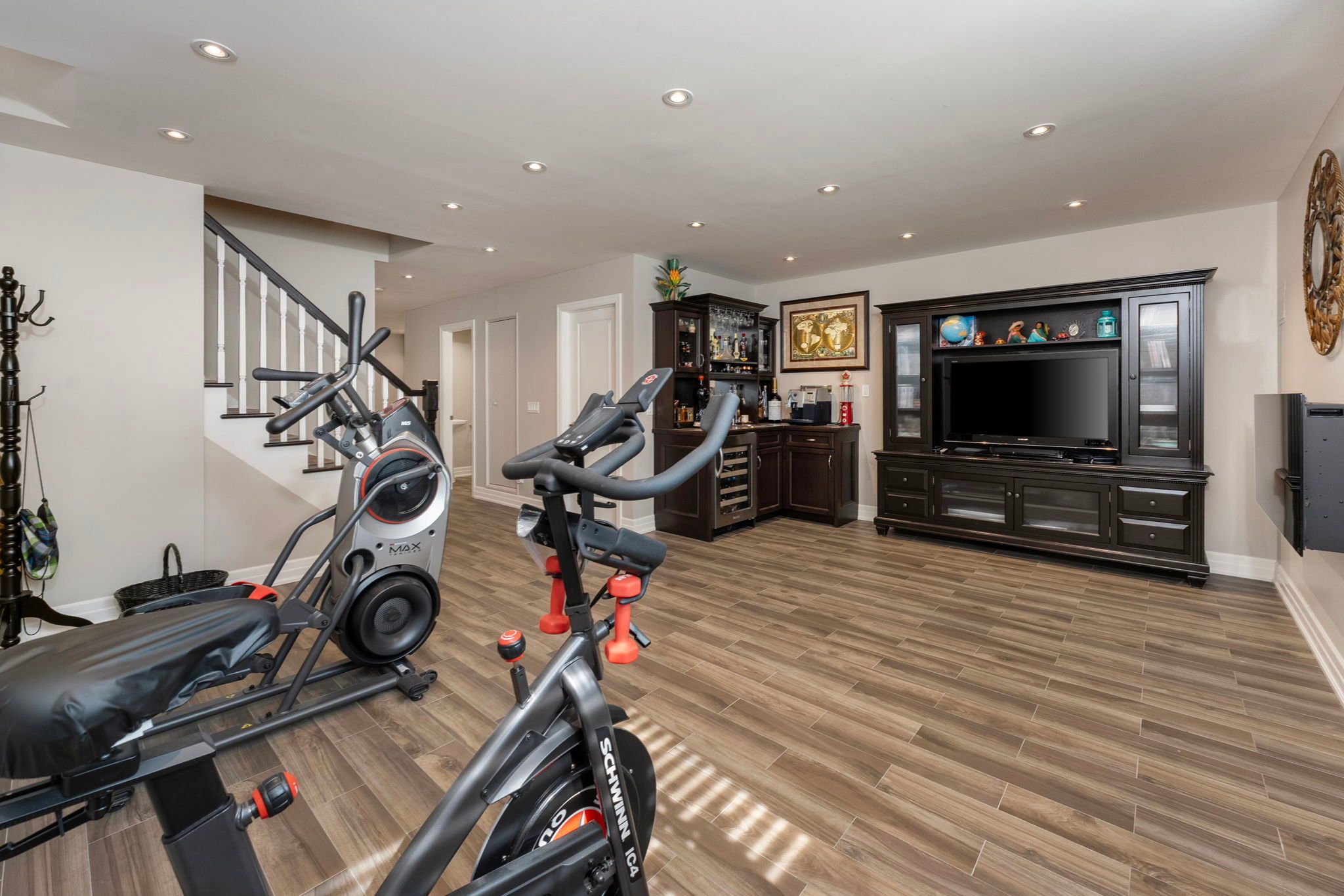 • Professionally finished walkout basement with a recreation space and electric fireplace.