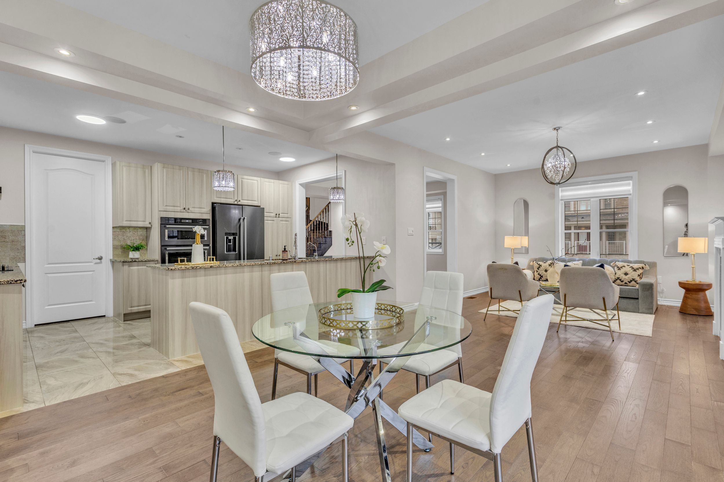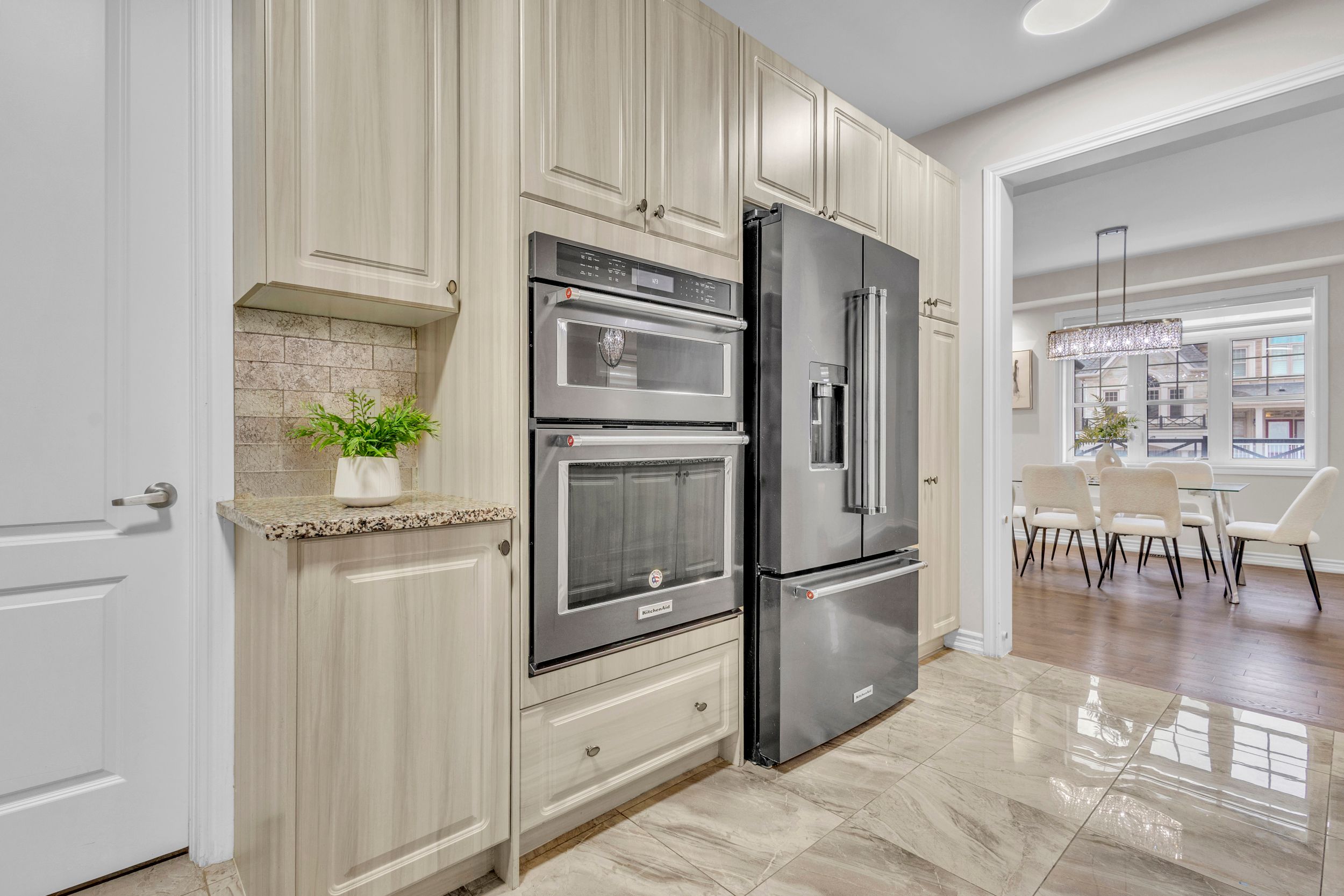 • Bright breakfast area overlooking a serene backyard for relaxing mornings.