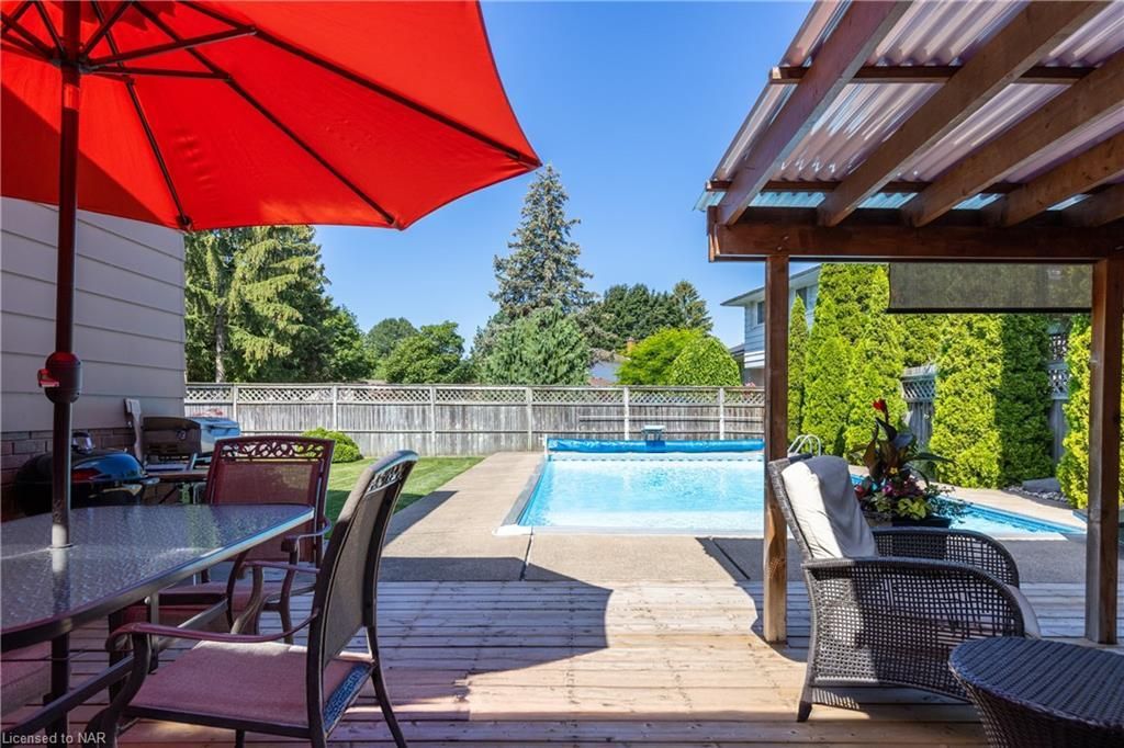 Big corner lot with big " swimming pool ", welcome to your stunning (( fully renovated )) carpet free new home at 45 royal oak drive. Nestled on a beautiful tree-lined street, in the highly sought after quit neighborhood of royal henley estates, this is a lovely raised bungalow with so much to offer. 5 bedrooms, 2 bathrooms, total living space of 1890 sqft and a backyard that was made for entertaining! Enter the home with a large foyer with vaulted ceilings and a spanish style archway leading upstairs. You also have garage access into the home to park 2 cars. The main floor provides beautiful hardwood flooring, neutral color schemes and bright windows allowing for plenty of natural light. The updated kitchen boasts plenty of upgraded counter and cupboard space, stylish backsplash tile, quality appliances and a convenient breakfast bar for the family to gather around. Down the hall you have 3 generous sized bedrooms and a large primary bathroom. Making your way downstairs, you have a sizeable rec room to enjoy! Showcasing a cozy wood burning fireplace, across the hall is a large 4th bedroom or 5th bedroom, you can convert one bedroom in your office ((work from home)) an excellent place to relax, play games with friends/family. Also located downstairs is a good size 3-piece bathroom and spacious laundry/utility room. Sitting on a corner lot with extra storage, lined with mature trees and cedars, you have maximum privacy throughout the inside/outside of the home. Enjoy those hot summer days lounging by the "swimming pool" and entertaining guests in your backyard deck, patio, barbecue, . Quick and easy qew access for commuters and just a short walk to martindale pond, jaycee park and port dalhousie. Properties like this don't last long! Must see today........