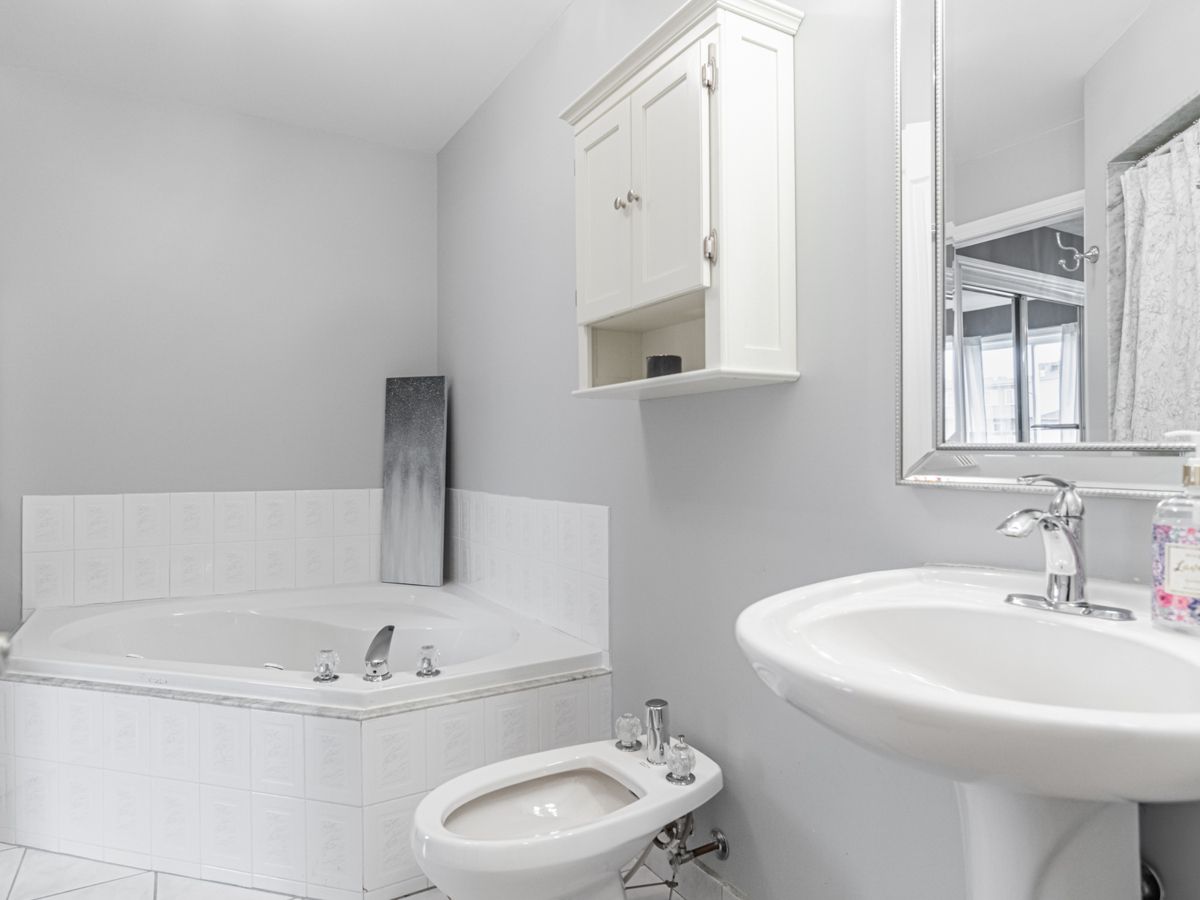 • Spacious primary bedroom featuring a jetted Jacuzzi and large closets.