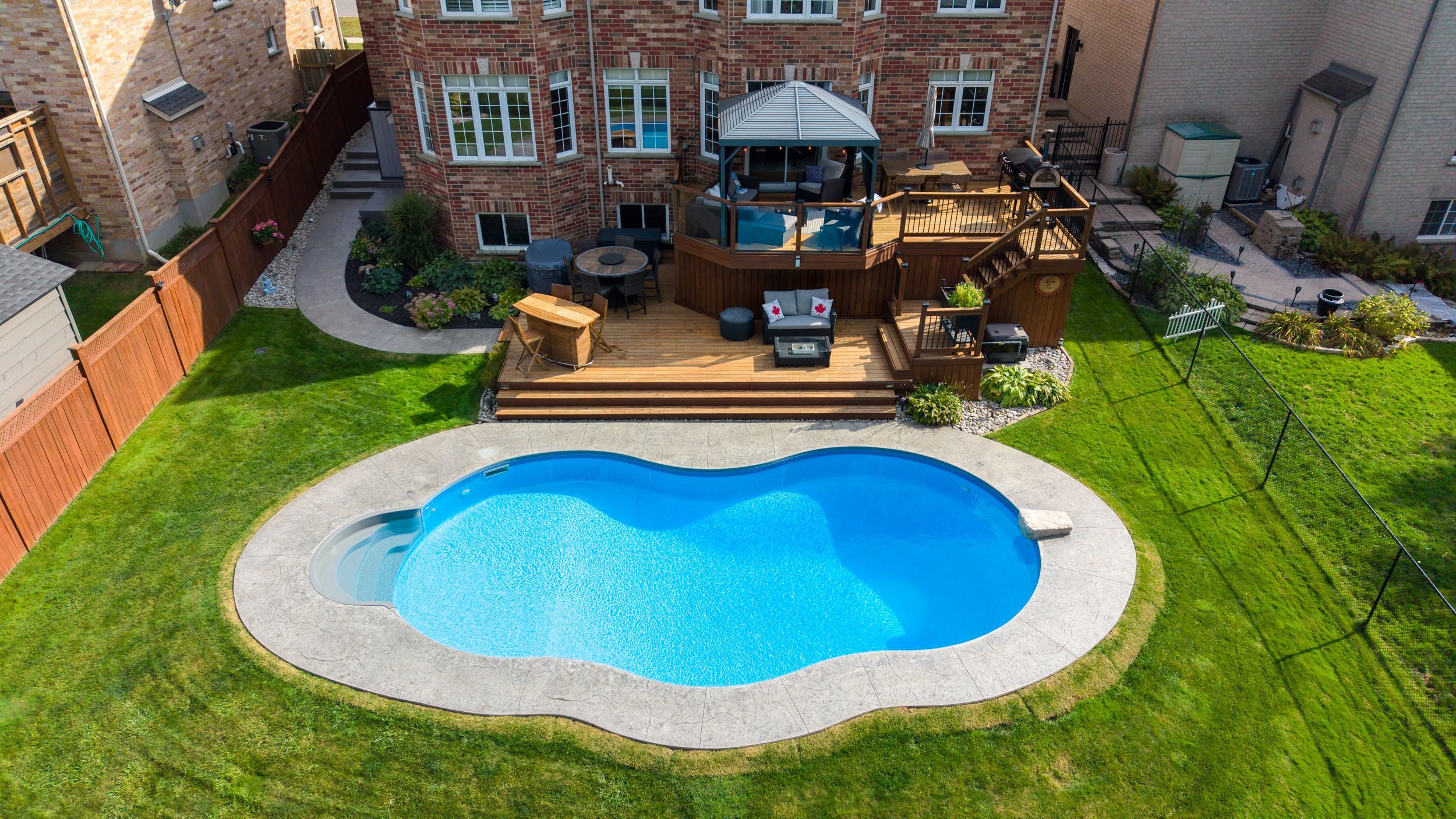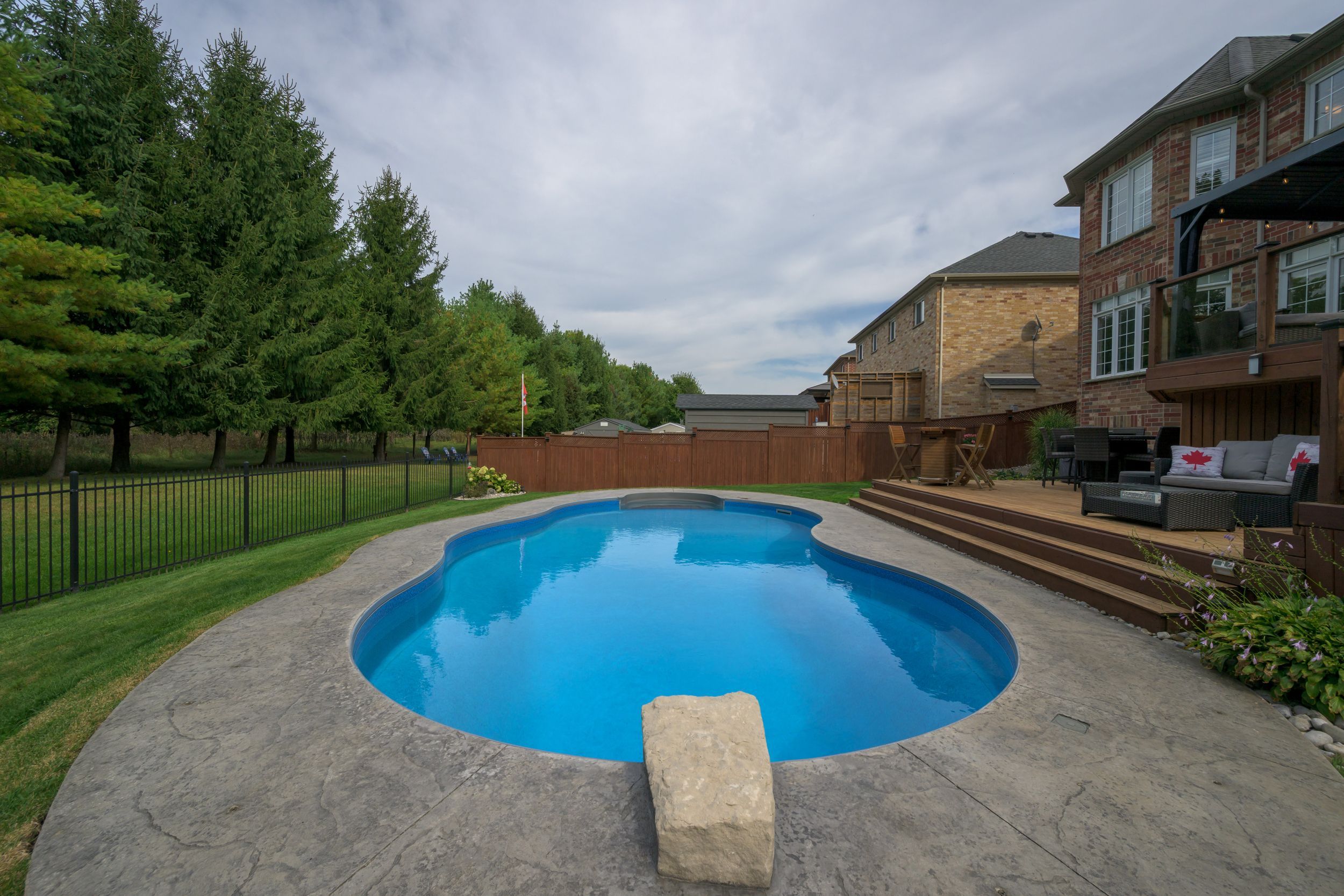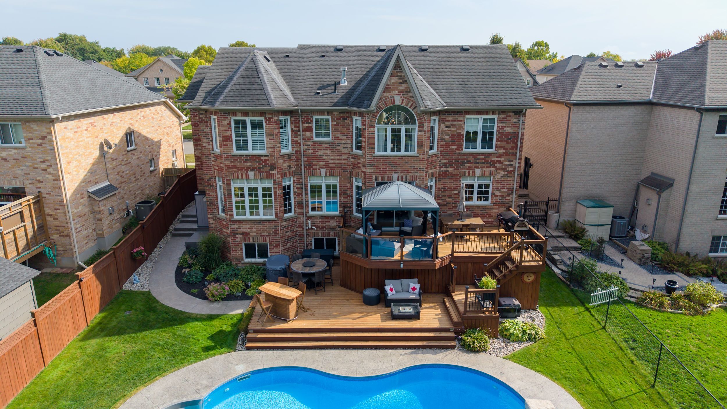 • Gorgeous backyard oasis with a saltwater pool and two-tier deck.